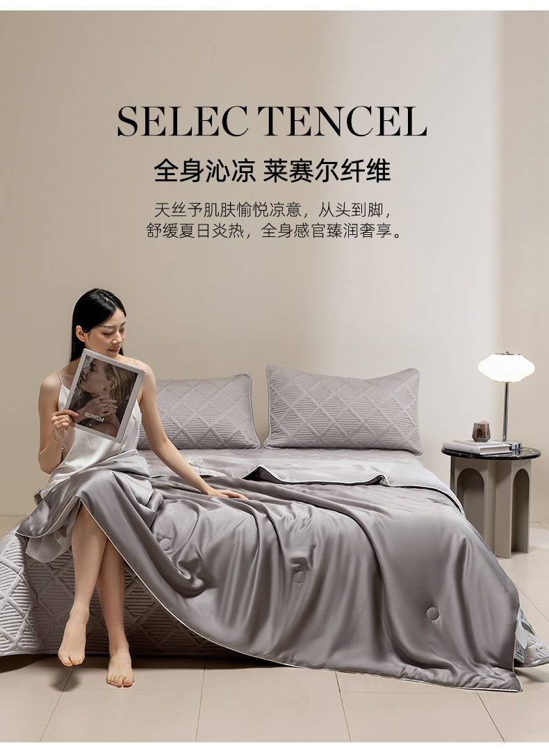 • 91家纺网 家纺一手货源 找家纺 吾秀家居 2026春夏新款双拼色莱赛尔天丝夏被夏凉被空调被-天纯系列 天丝-深浅灰