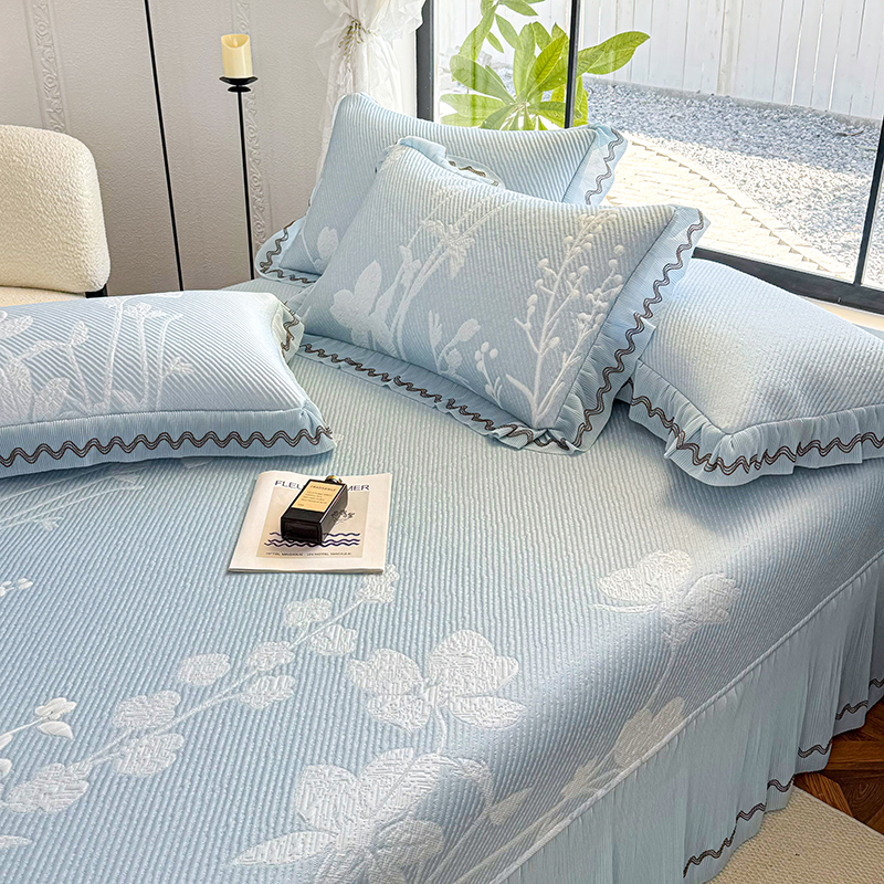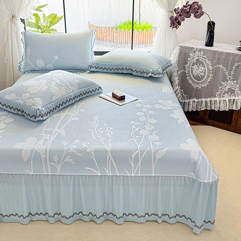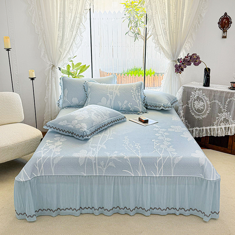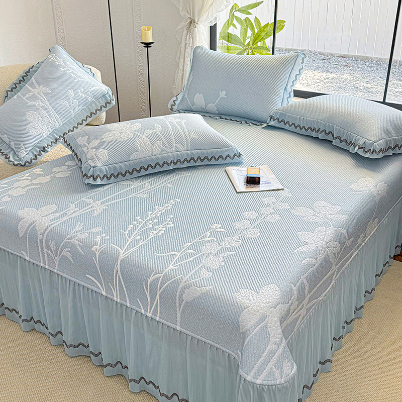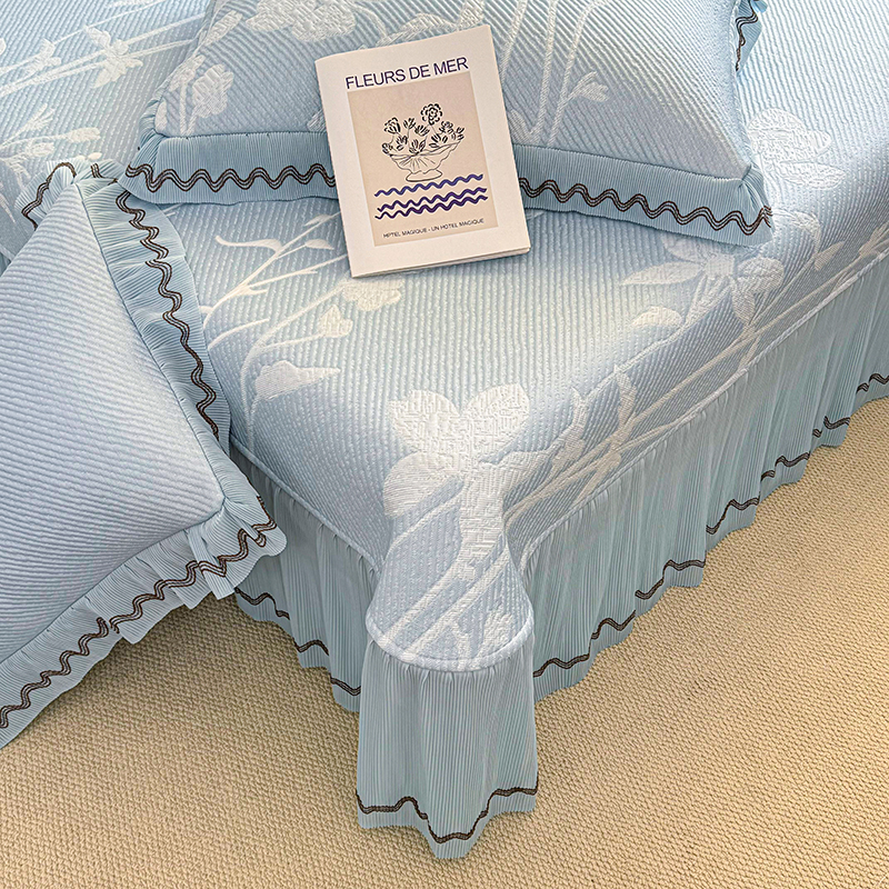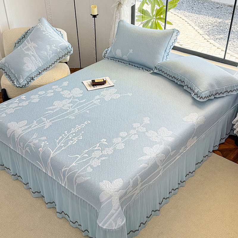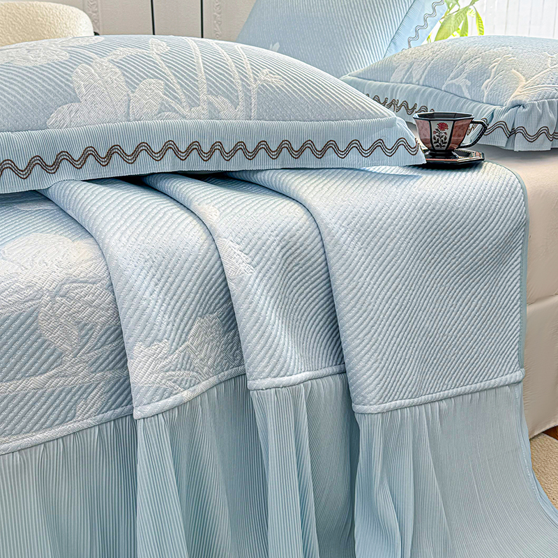当前位置: 91家纺网 > 商品网购 > 床上用品 > 凉席 > 其他凉席 > 红夫人 2026新款凉豆豆PE高分子凉感凉席双色提花床裙款三件套--兰芝(风琴花边+三明治复合+精美手提包) 兰芝蓝色
