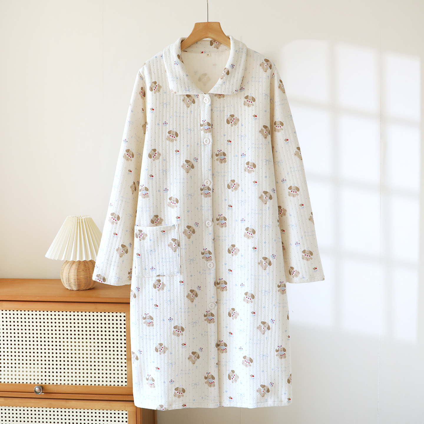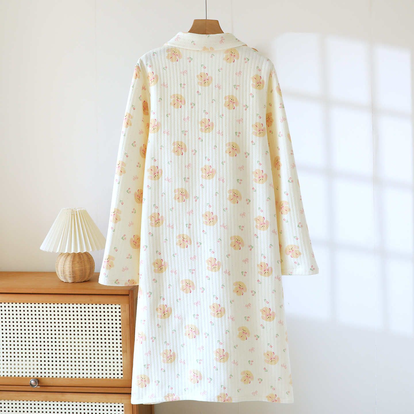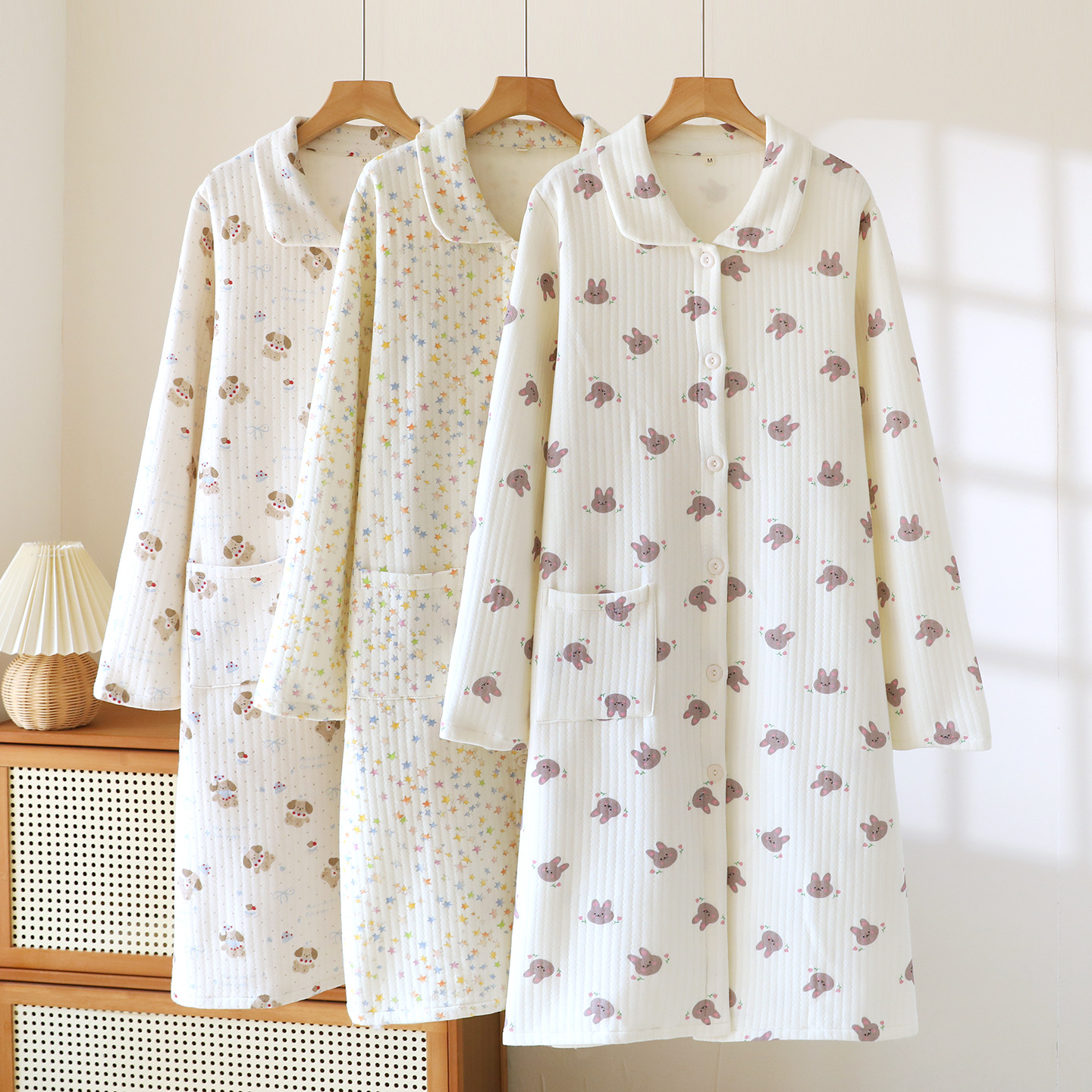 (总)洛兰沙家居馆 秋冬季新款睡裙女长袖空气棉夹棉保暖宽松大码浴衣纯棉浴袍可外穿