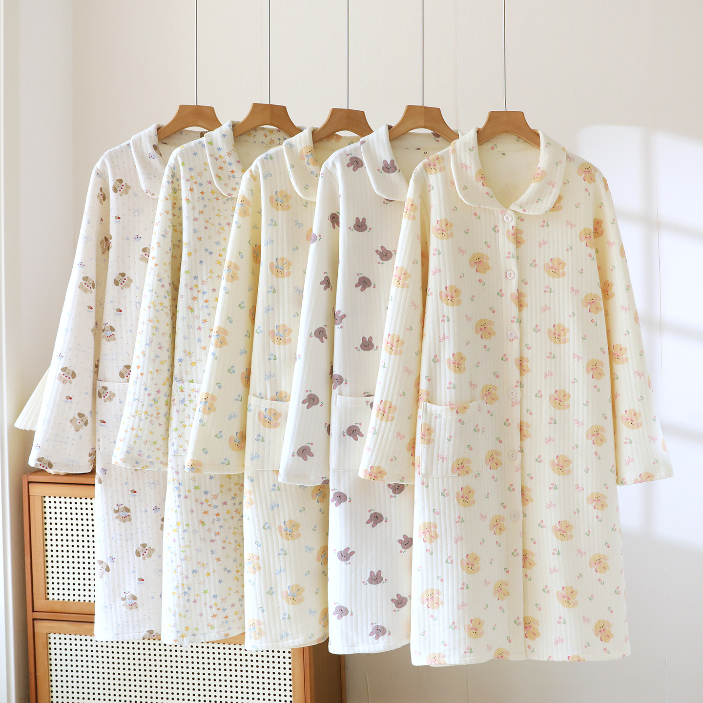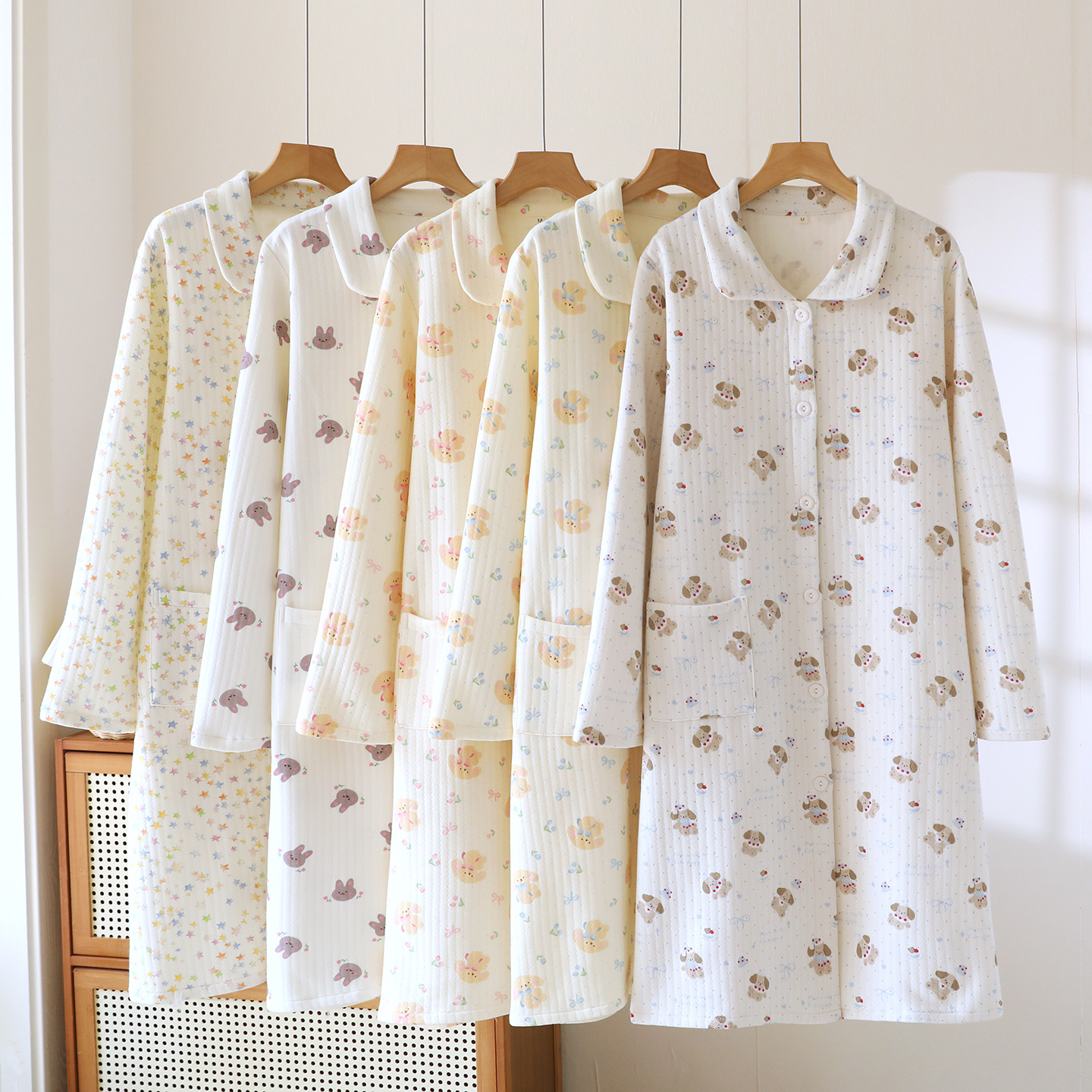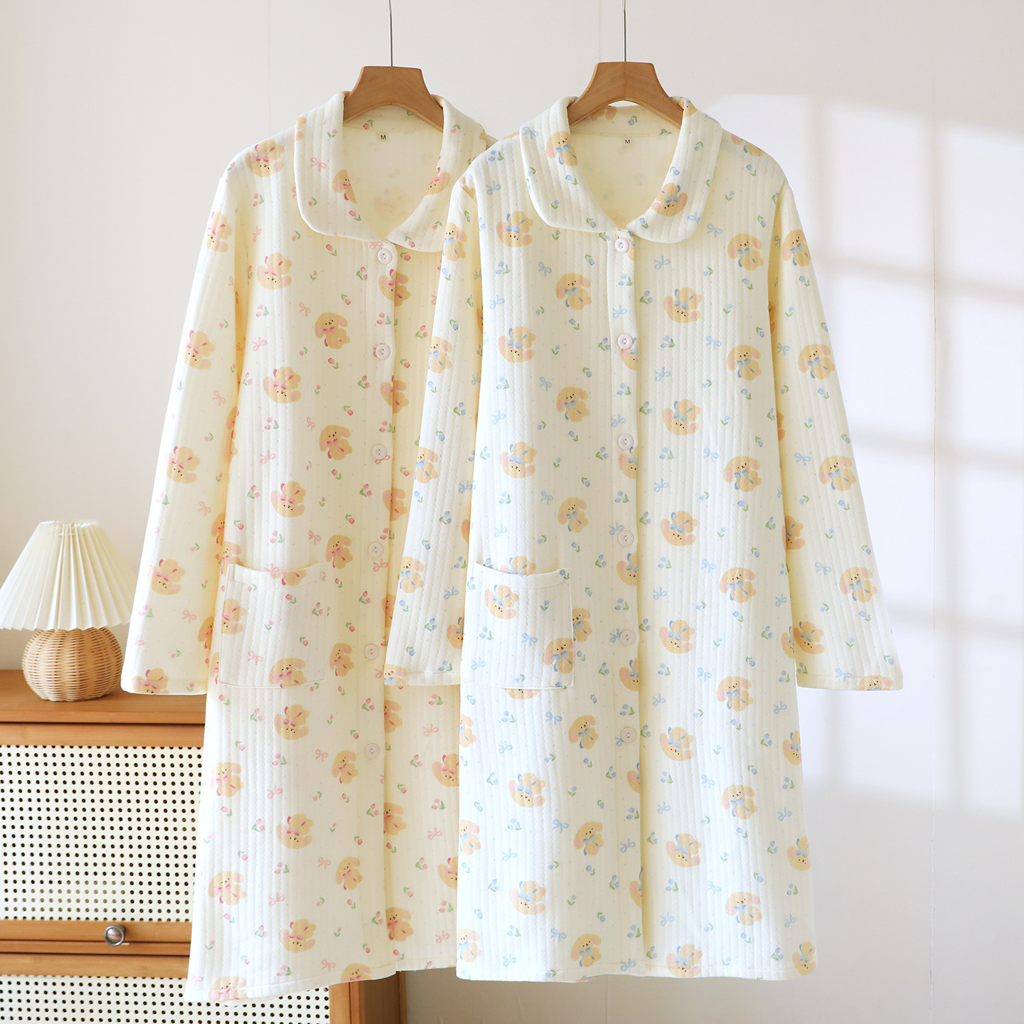 (总)洛兰沙家居馆 秋冬季新款睡裙女长袖空气棉夹棉保暖宽松大码浴衣纯棉浴袍可外穿