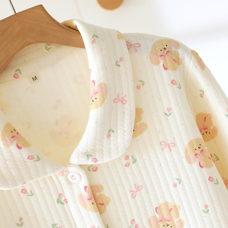 (总)洛兰沙家居馆 棉质秋冬空气棉厚款印花女款睡衣家居服舒适三层夹棉居家,花色1