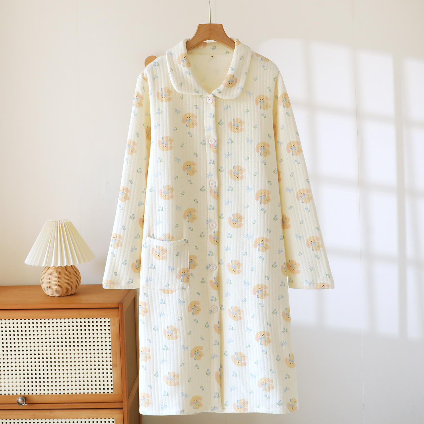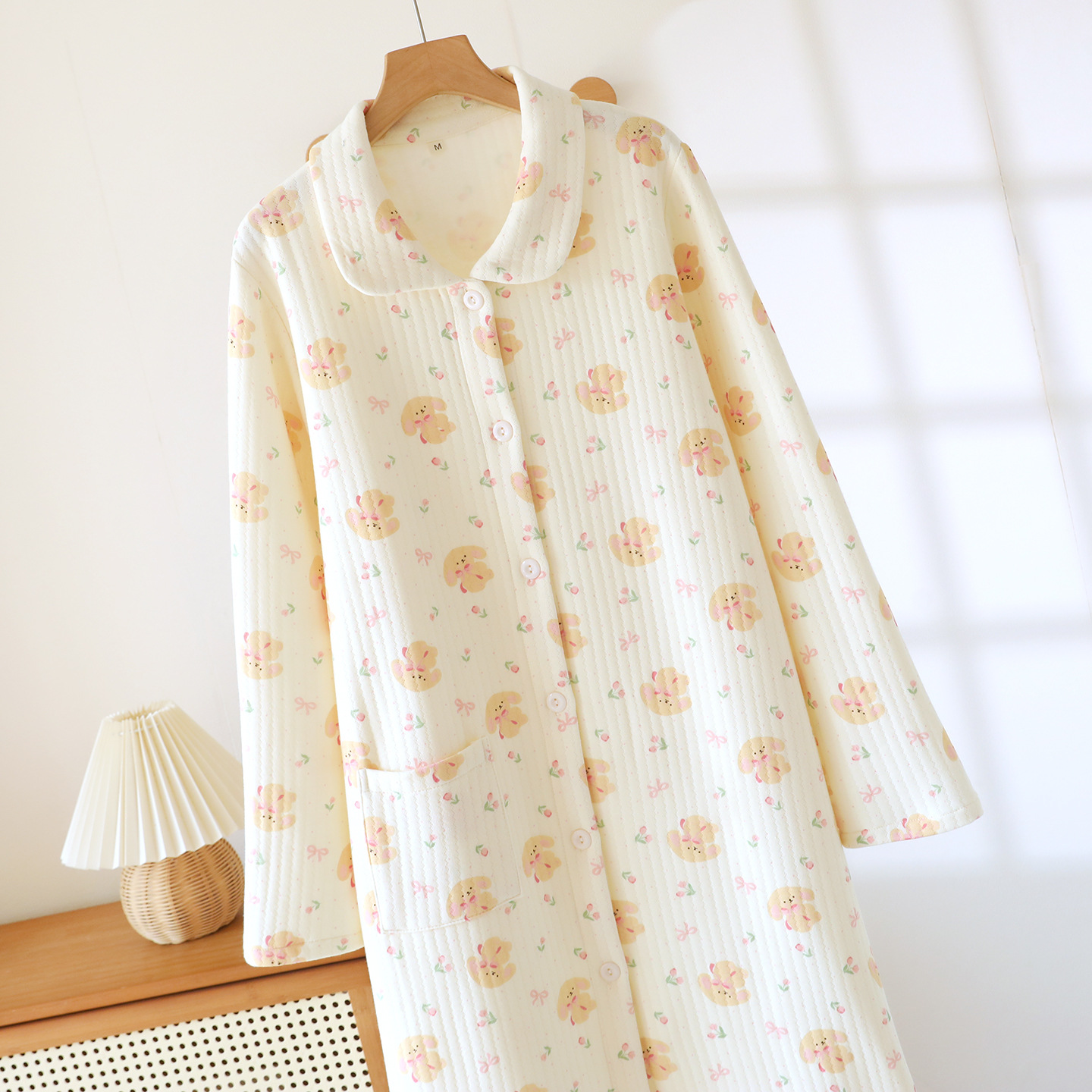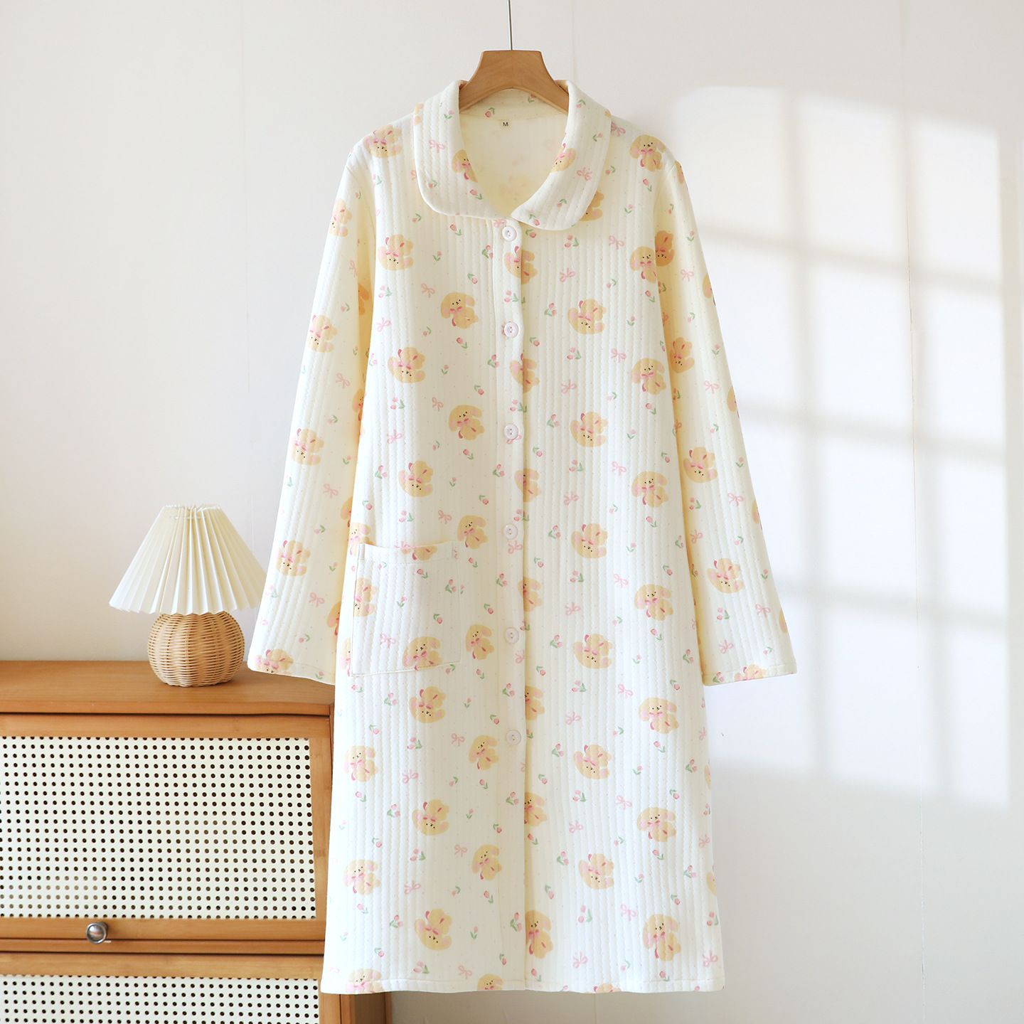 商品名称:(总)洛兰沙家居馆 秋冬季新款睡裙女长袖空气棉夹棉保暖宽松大码浴衣纯棉浴袍可外穿