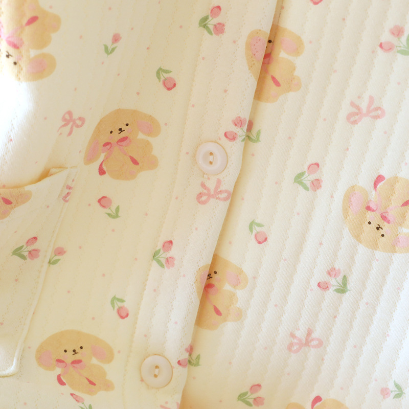 (总)洛兰沙家居馆 2024秋冬新款清新睡衣女三层夹棉玉兔绒加厚保暖两件套女士可外穿加绒家居服,粉色,黄色
