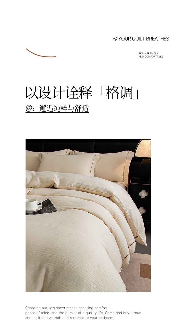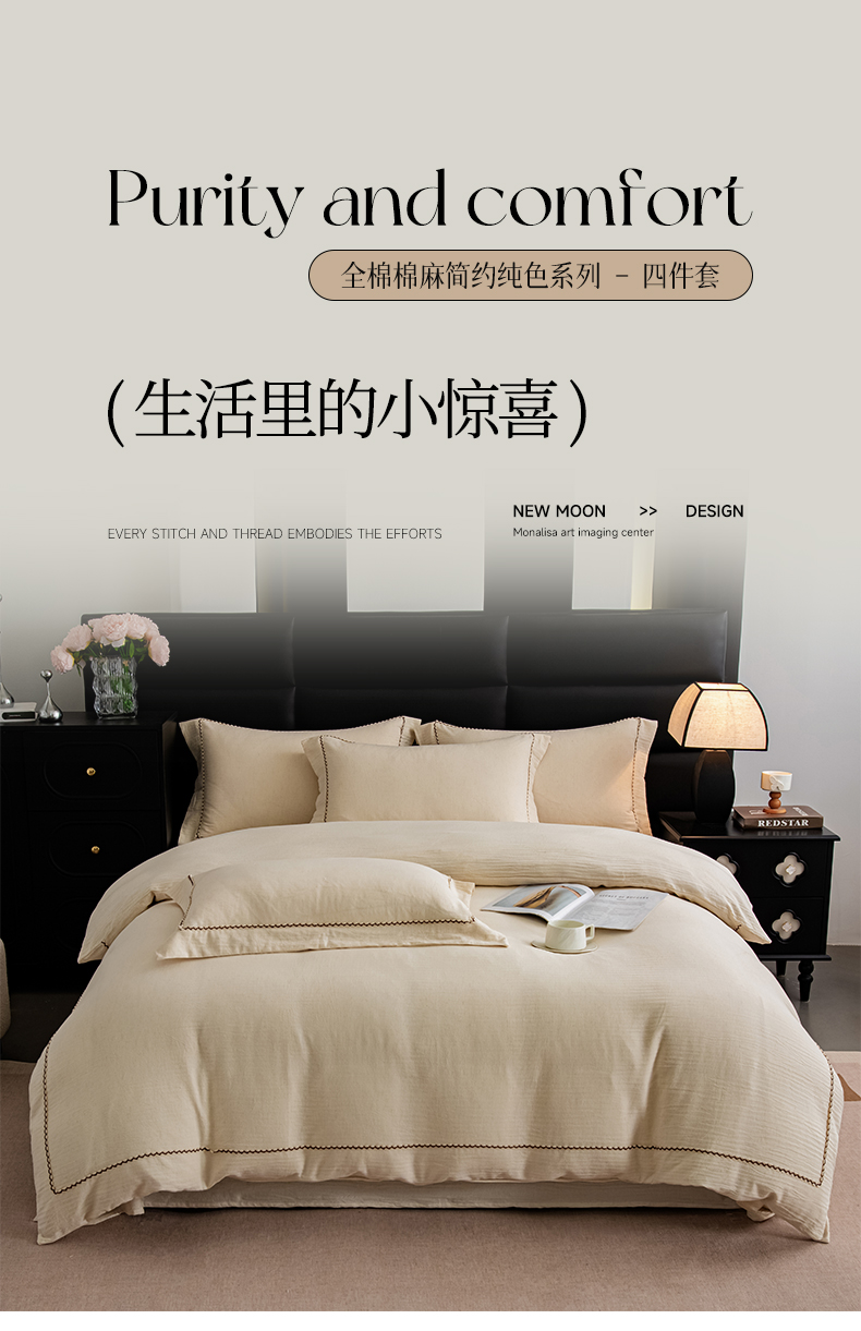 当前位置: 91家纺网 > 商品网购 > 床品套件 > 四件套 > 其它四件套 > 慕梵家居 2026春夏新款全棉棉麻简约纯色系列四件套-棉麻 棉麻-卡其