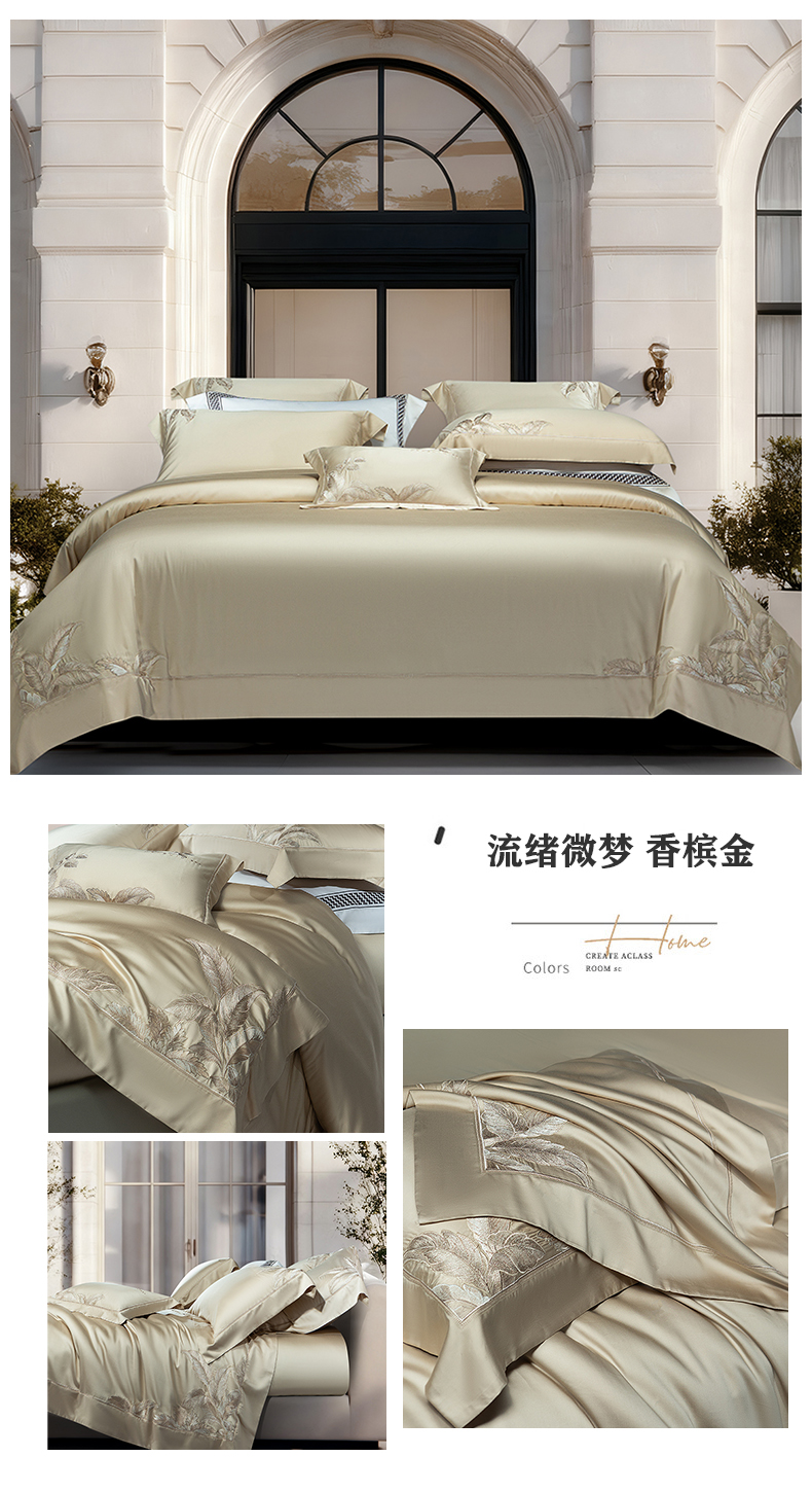(总)诗黛尔 2026春夏新款长绒棉刺绣四件套黎境系列,黎境-香槟金,黎境-极光蓝,黎境-卡其色,黎境-落樱粉,黎境-绅士灰