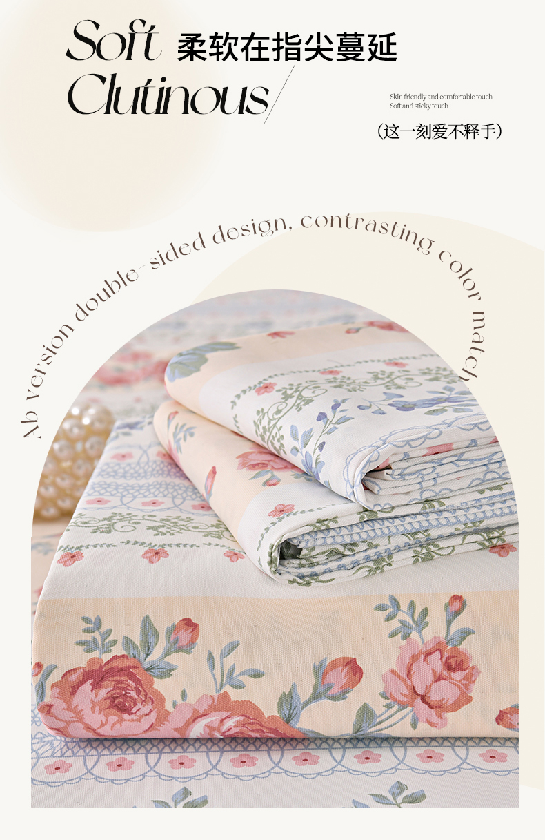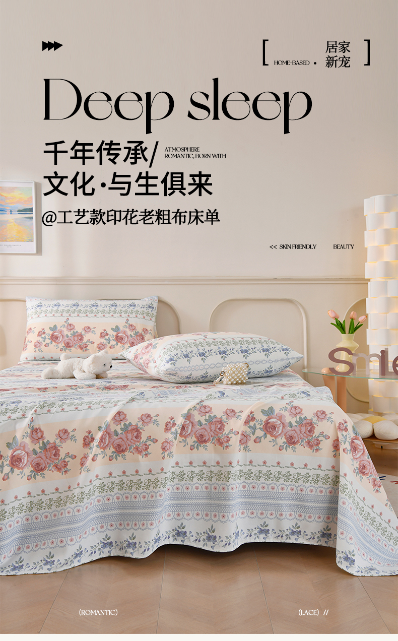 • 91家纺网 家纺一手货源 找家纺 悠米悠家 2026新款工艺款印花老粗布床单单品床单床单单件凉席席子 莫奈玫瑰园