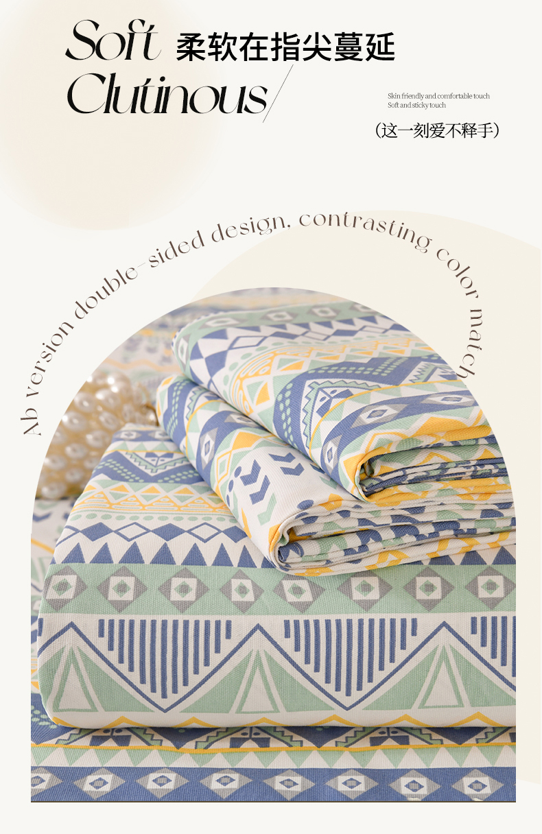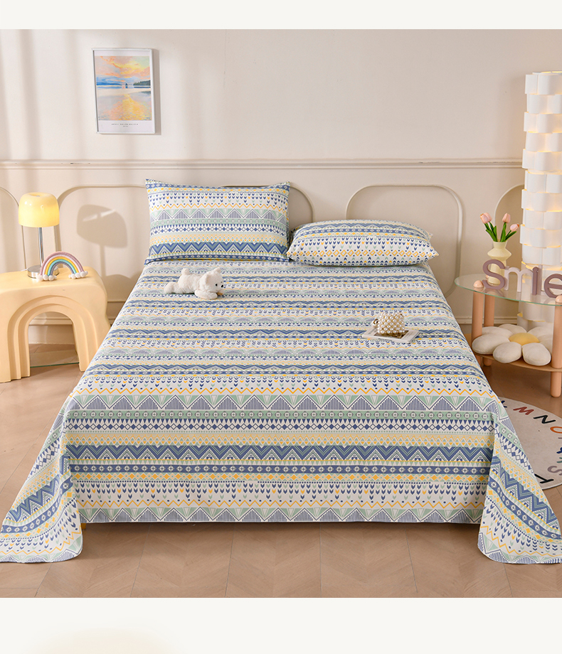 • 91家纺网 家纺一手货源 找家纺 悠米悠家 2026新款工艺款印花老粗布床单单品床单床单单件凉席席子 青柠波西纹