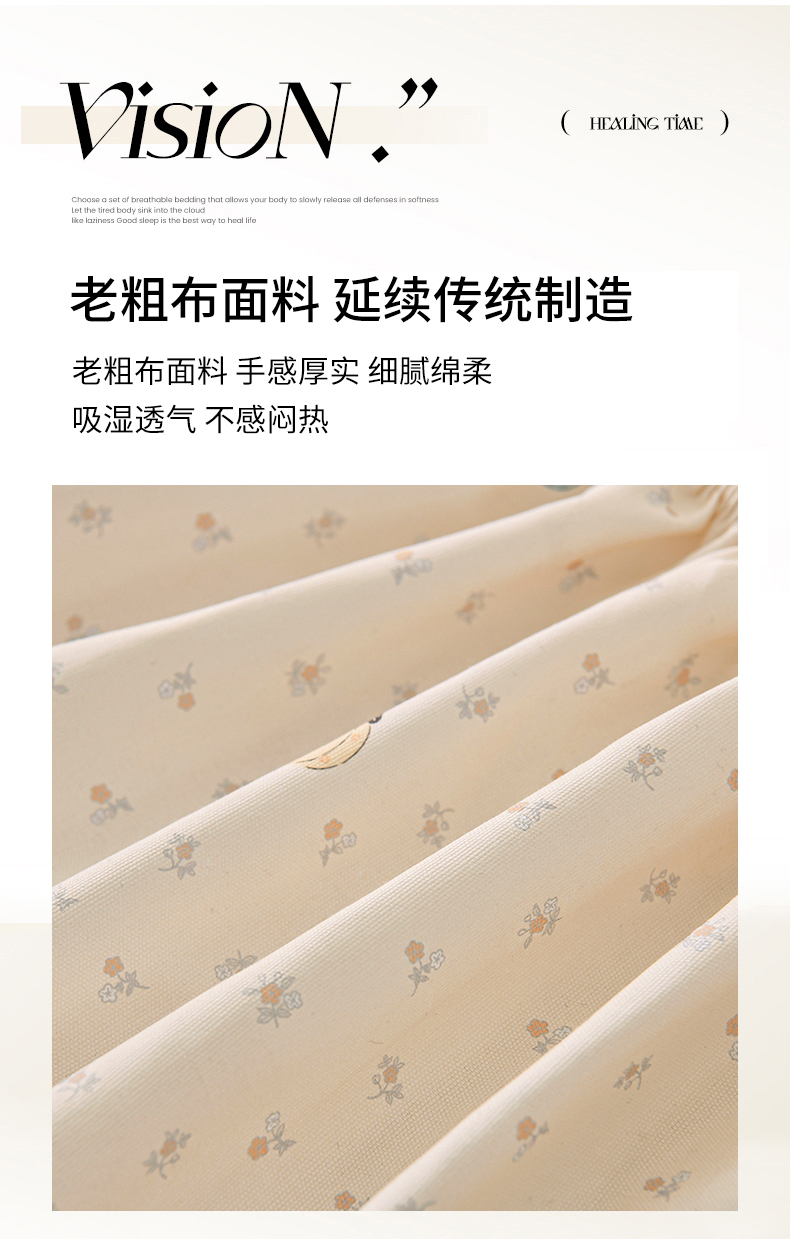 • 91家纺网 家纺一手货源 找家纺 悠米悠家 2026新款工艺款印花老粗布床笠单品床笠床笠单件凉席席子 浅禾南瓜记