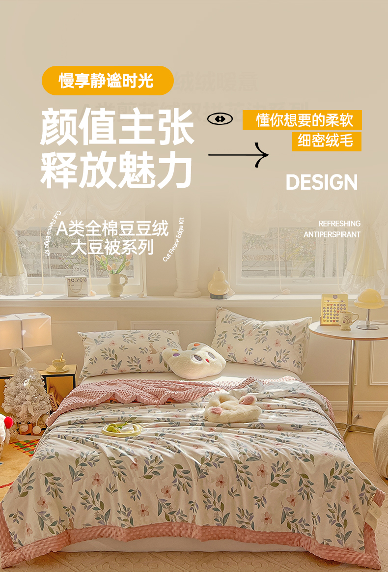 • 91家纺网 家纺一手货源 找家纺 梦依依 2026新款柔软舒适A类全棉豆豆被夏被春秋被子被芯 轻纱漫舞