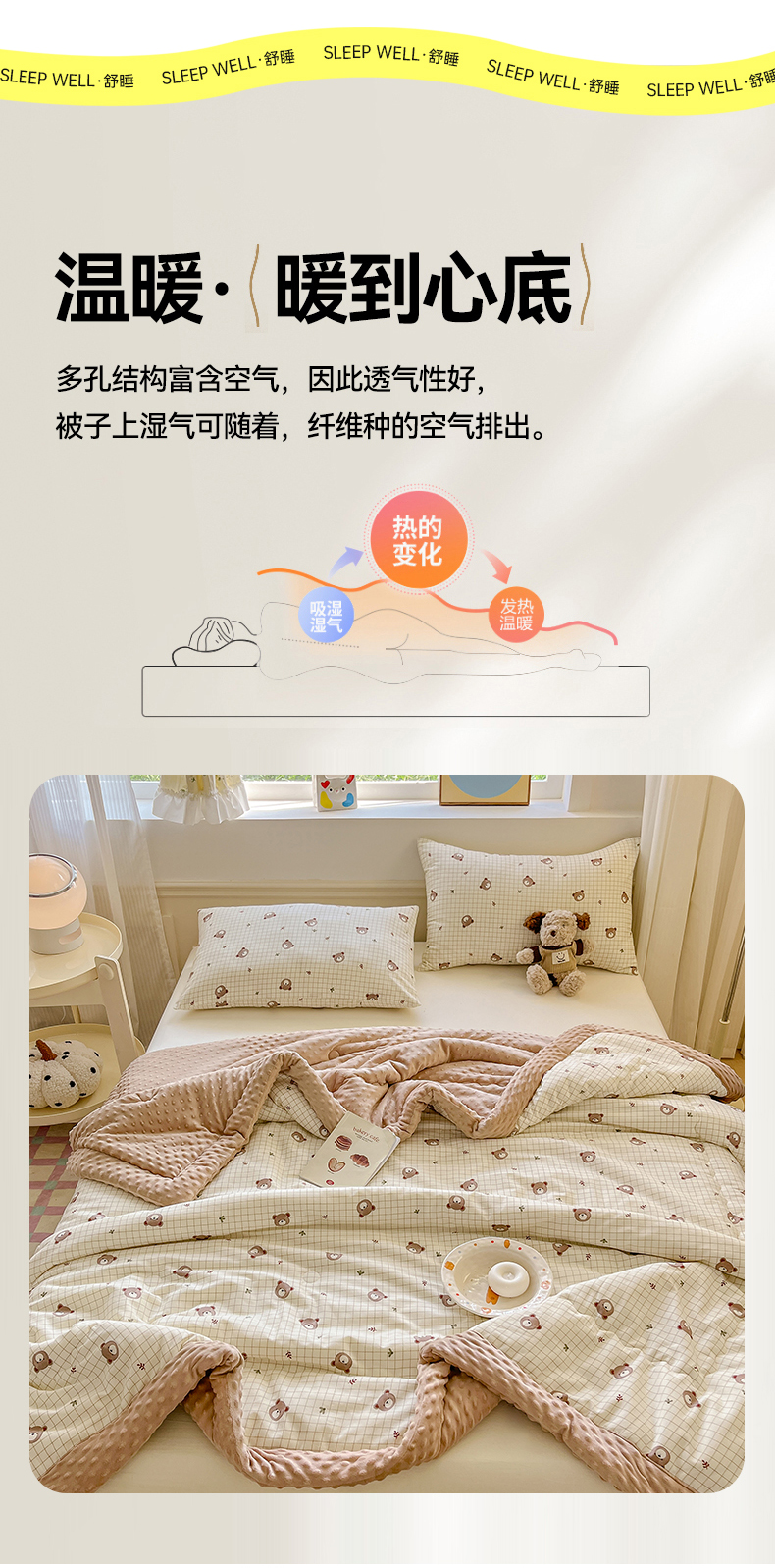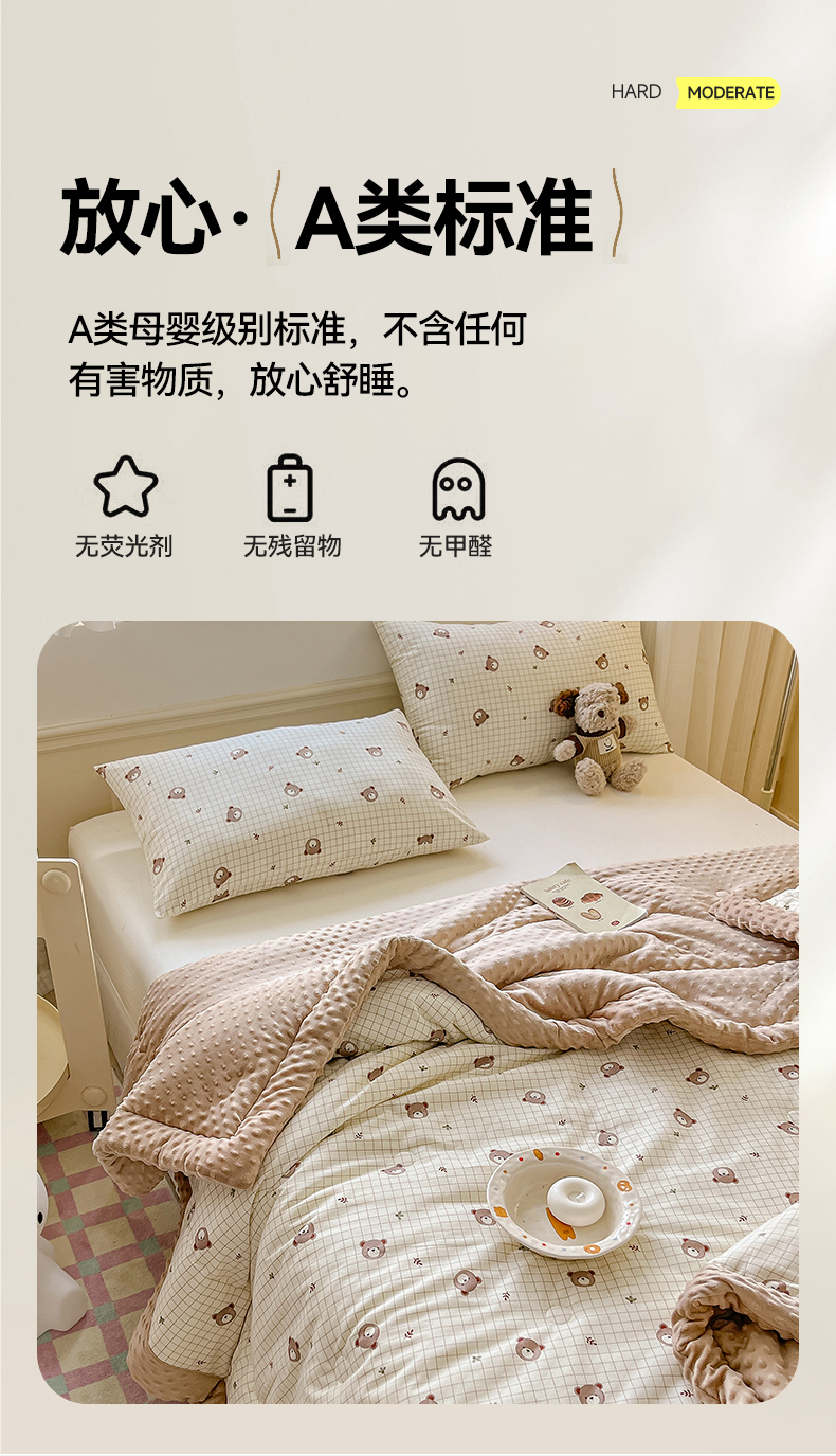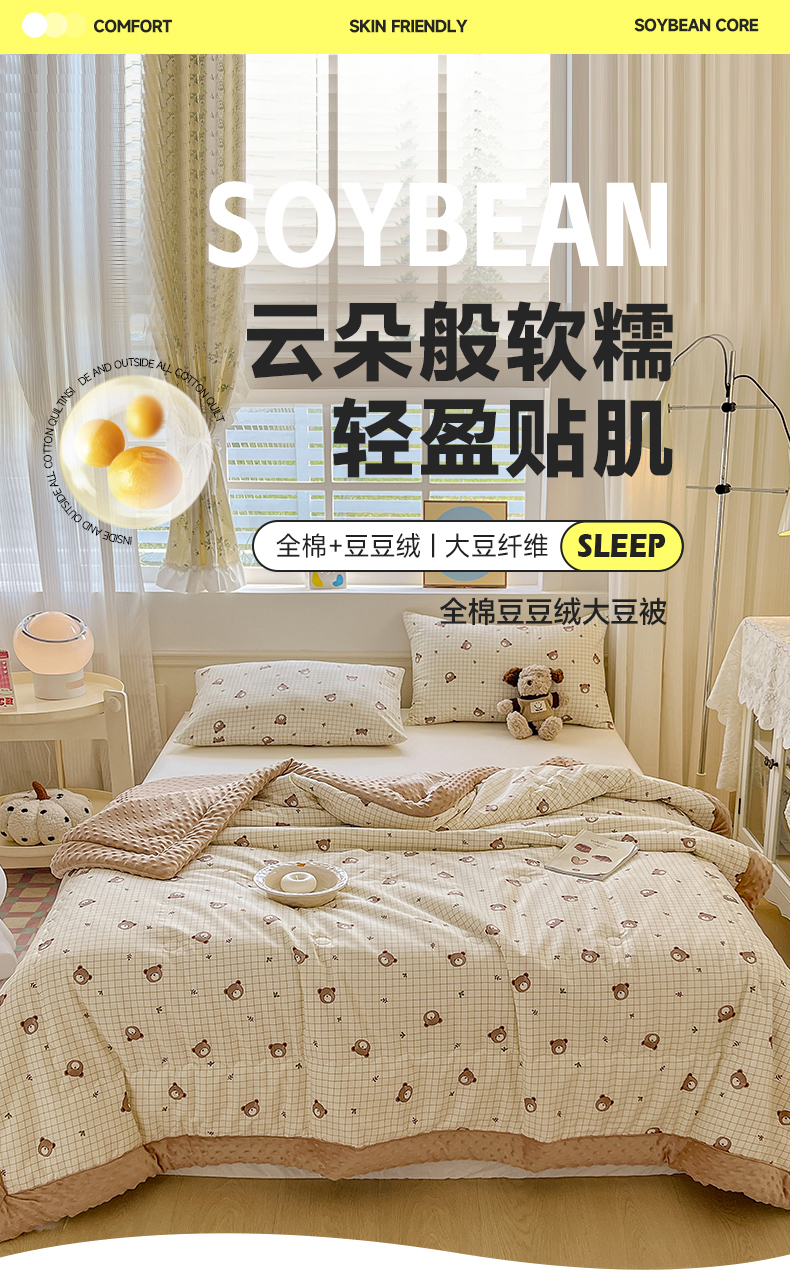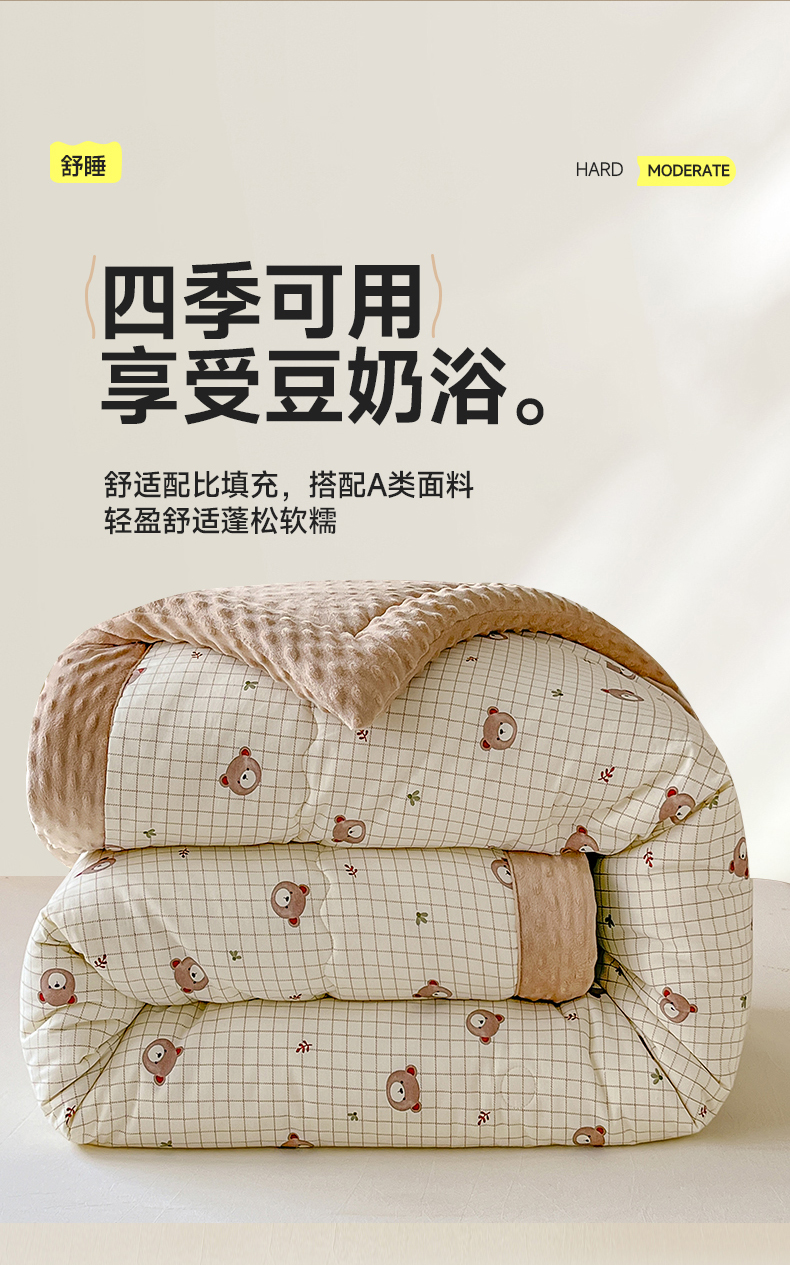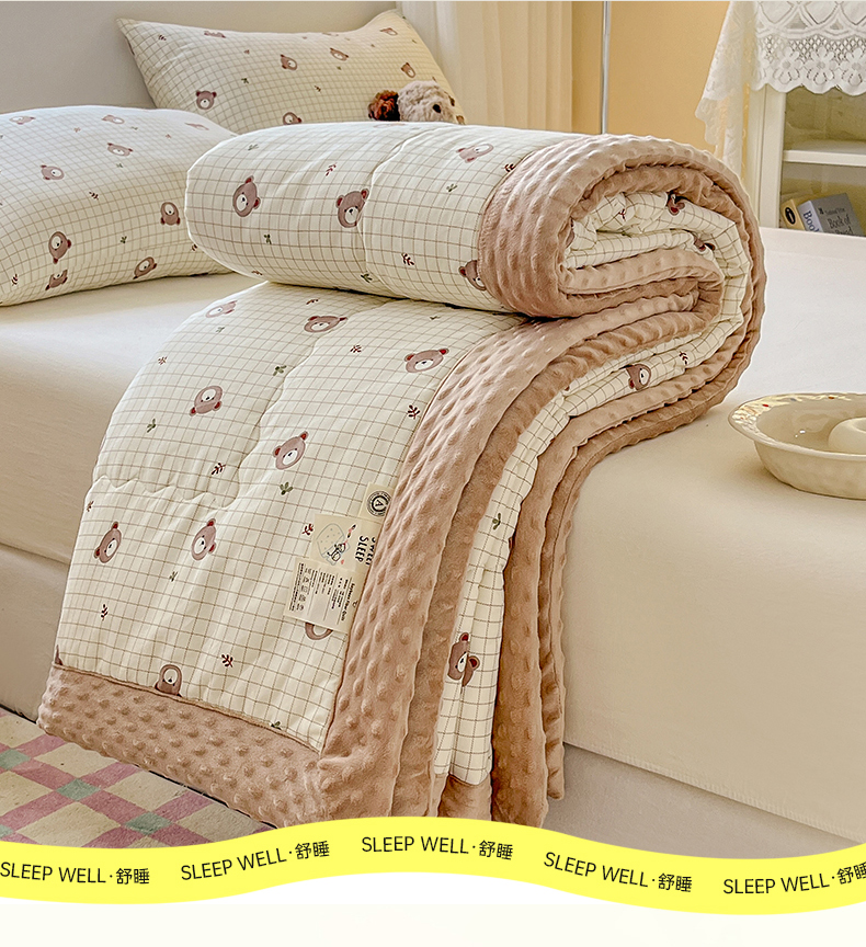 • 91家纺网 家纺一手货源 找家纺 梦依依 2026新款柔软舒适A类全棉豆豆被夏被春秋被子被芯 熊仔