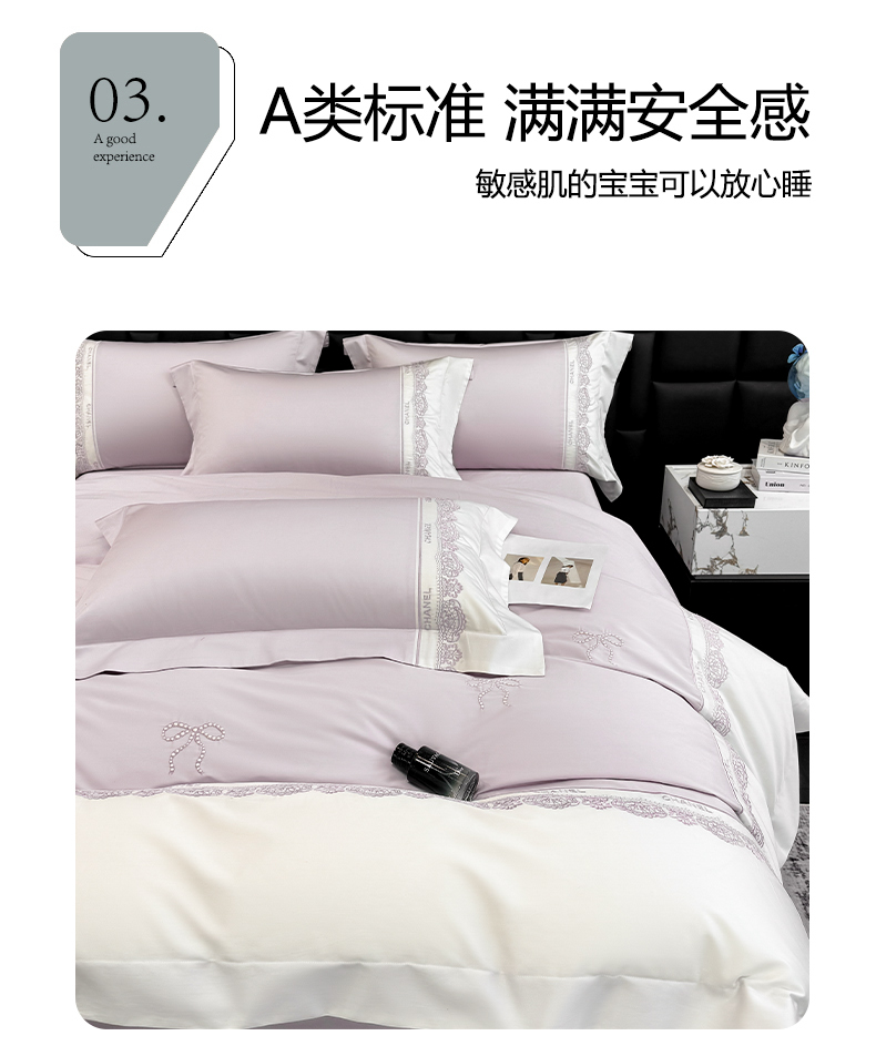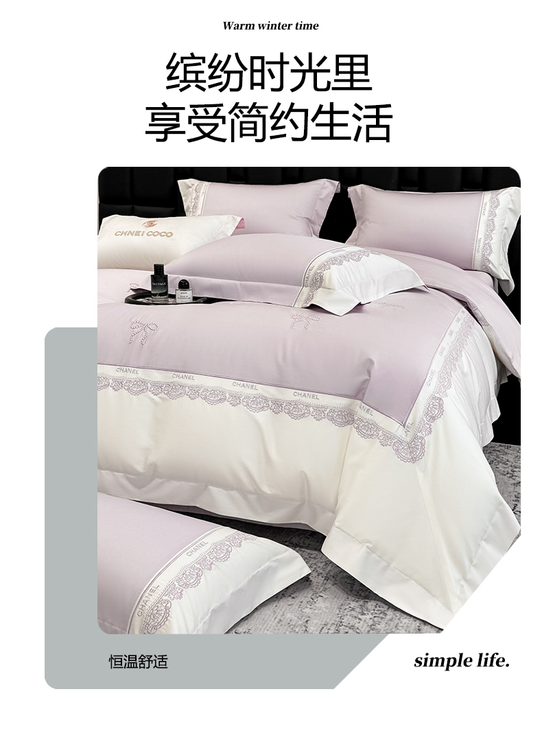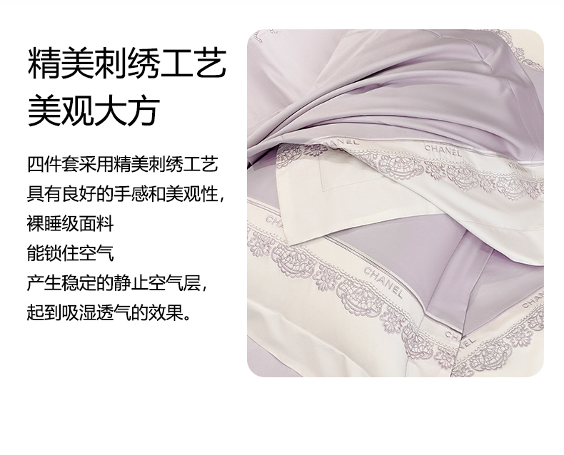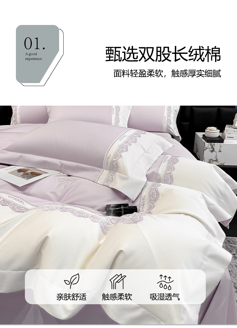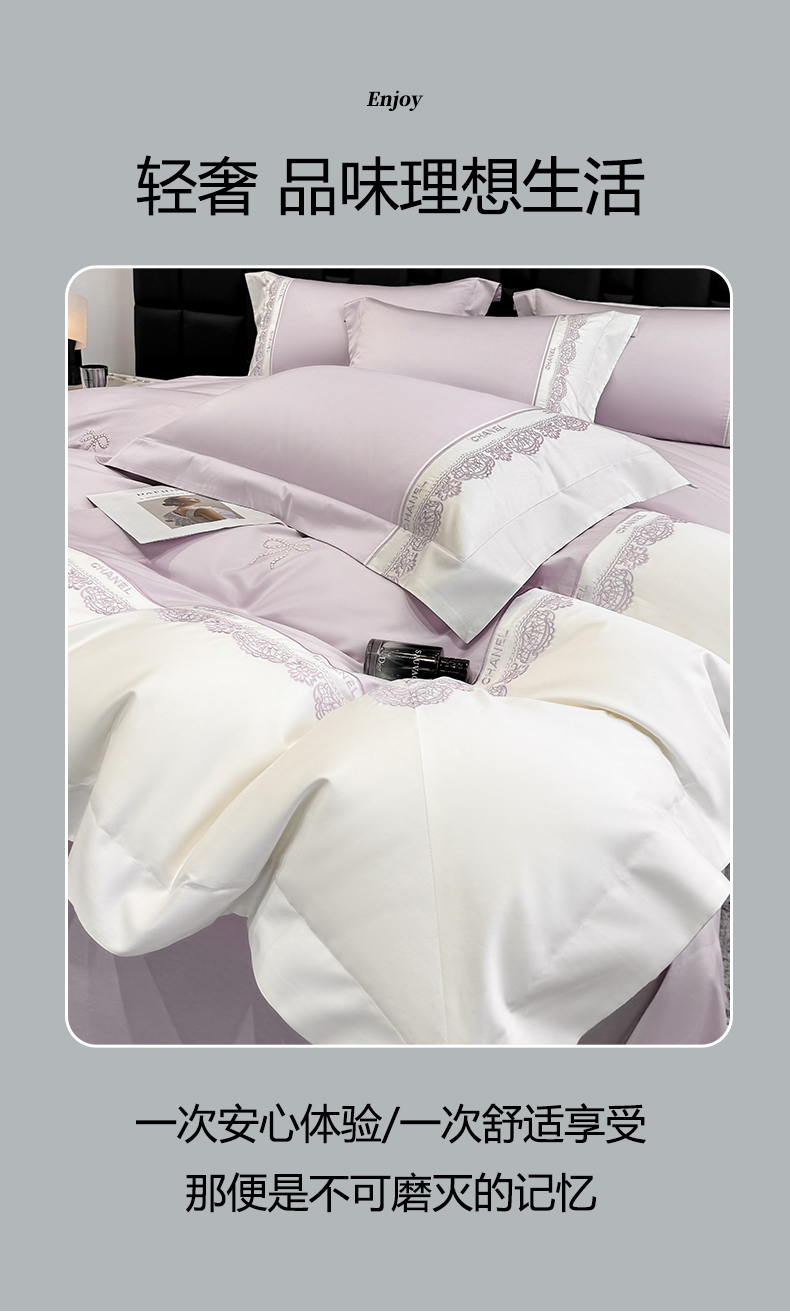 当前位置: 91家纺网 > 商品网购 > 床品套件 > 四件套 > 长绒棉四件套 > 丞音家纺 2026新款A类少女公主风双股100支贡缎长绒棉四件套刺绣被套绣花床笠高档礼盒装 露熙-香芋紫