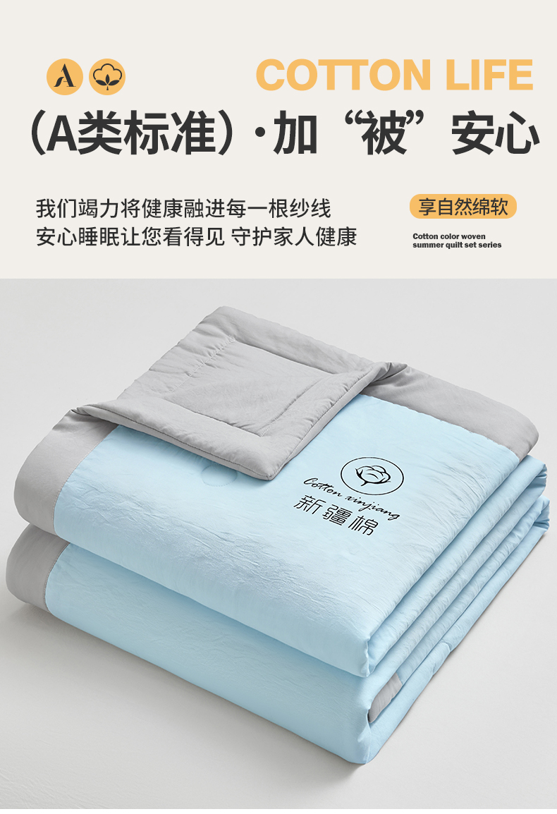 (总)晓时候 2026A类云感双层纱夏被四件套新疆棉花被无染夏凉被空调被,云朵白+青竹绿,冰川灰,青春蓝,青春蓝+柠檬黄,青竹绿,樱花粉,樱花粉+柠檬黄,云朵白,云朵白+冰川灰,云朵白+柠檬黄,云朵白+青春蓝,云朵白+樱花粉