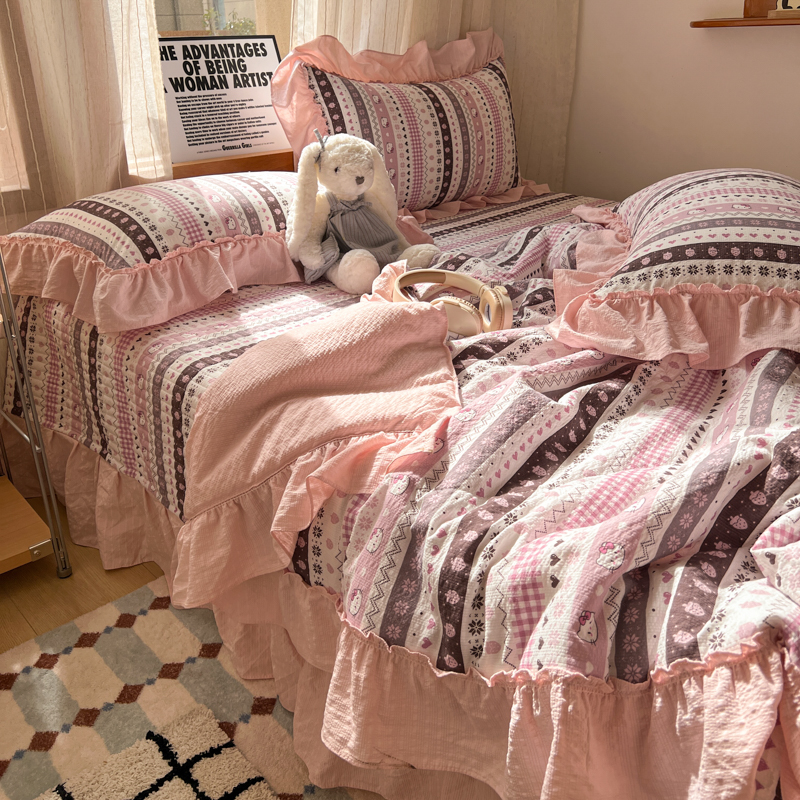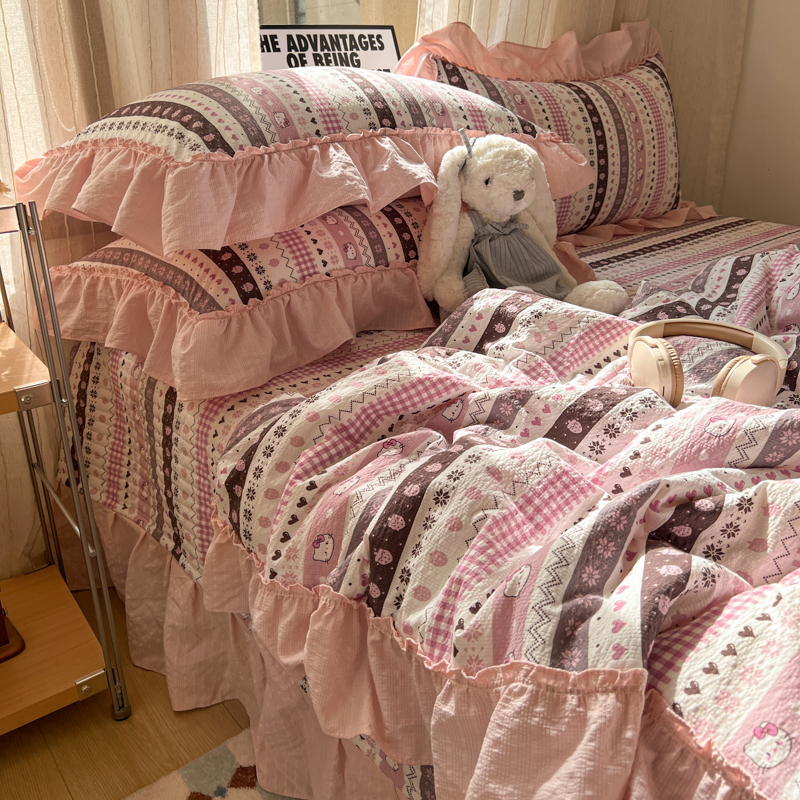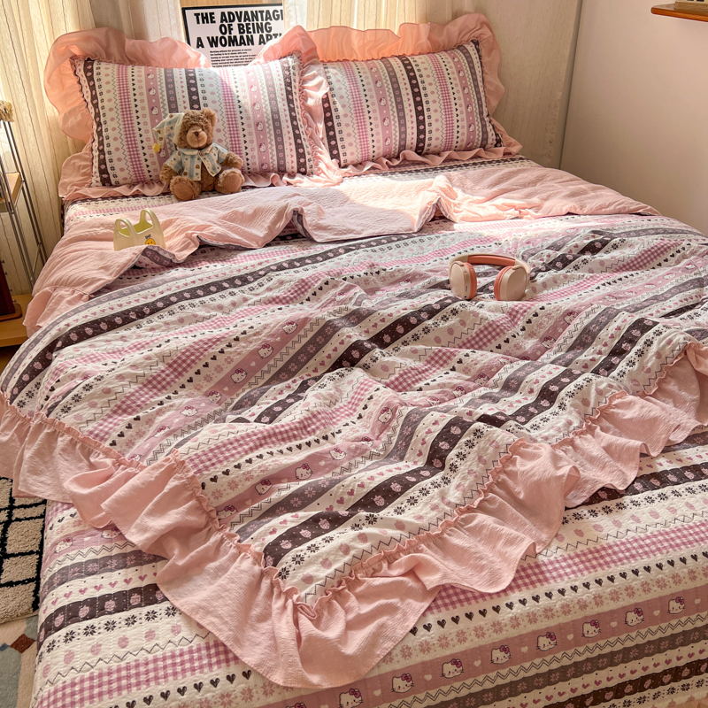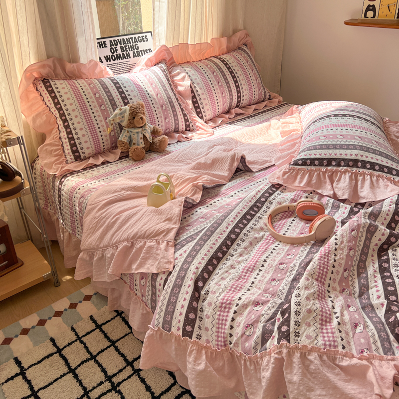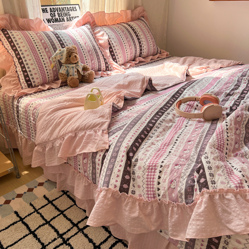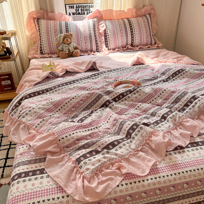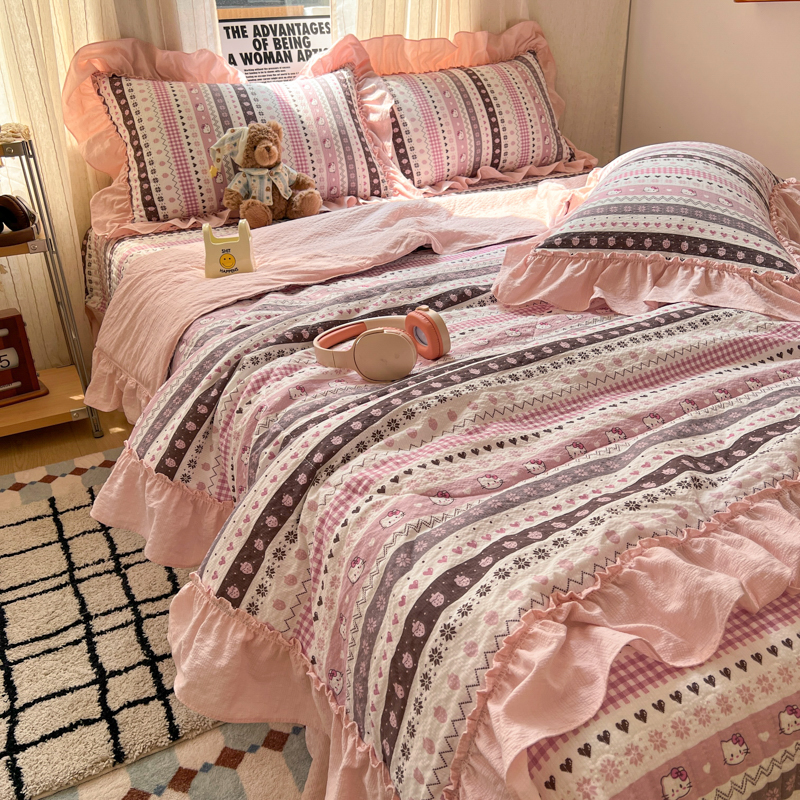 欧尚 2026新款床盖款花边夏被四件套 猫咪集