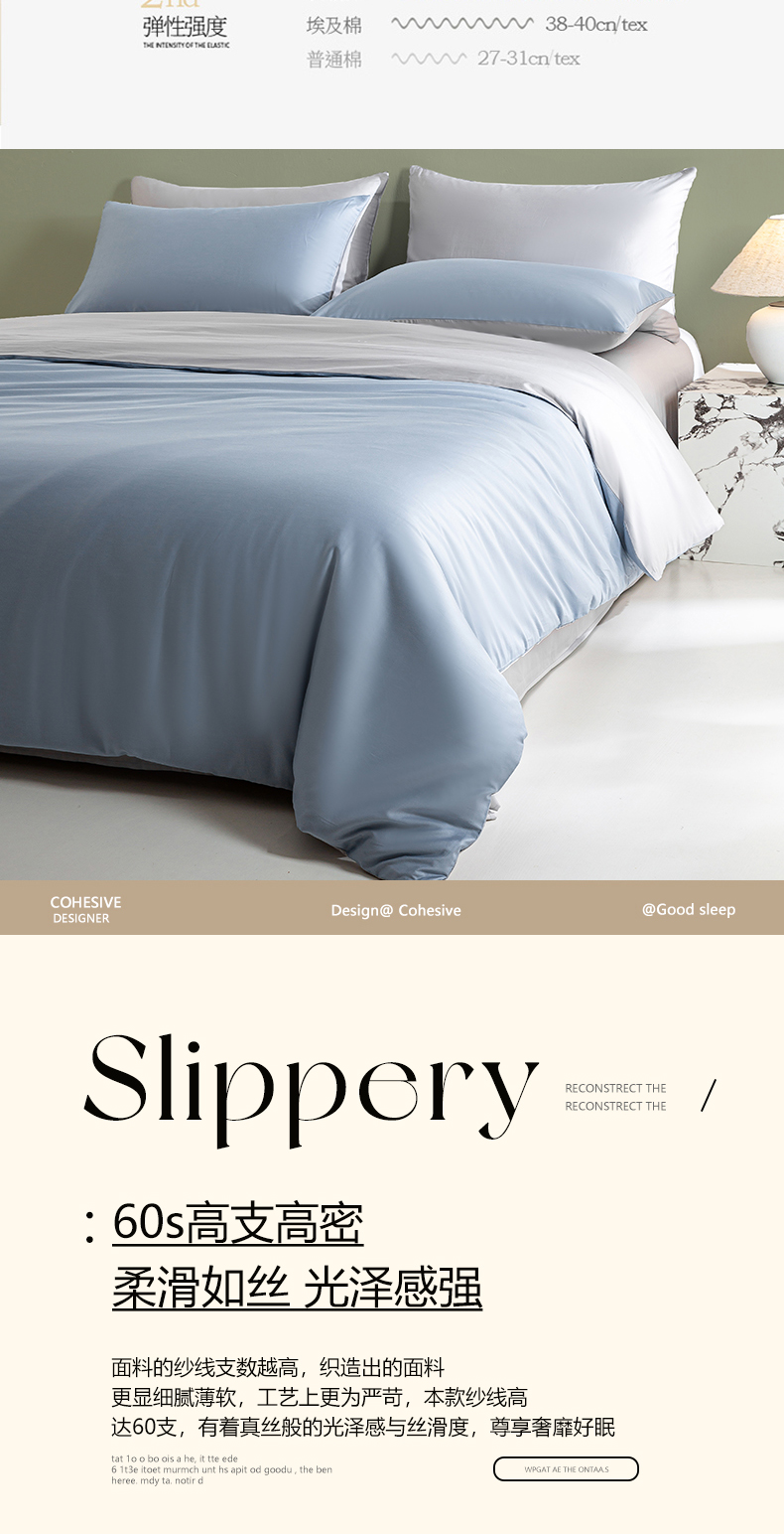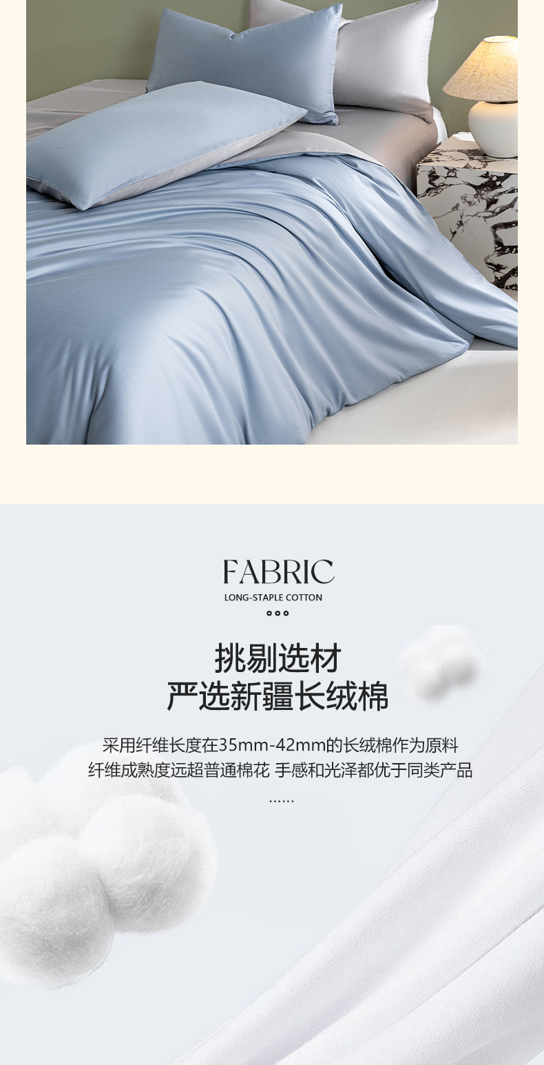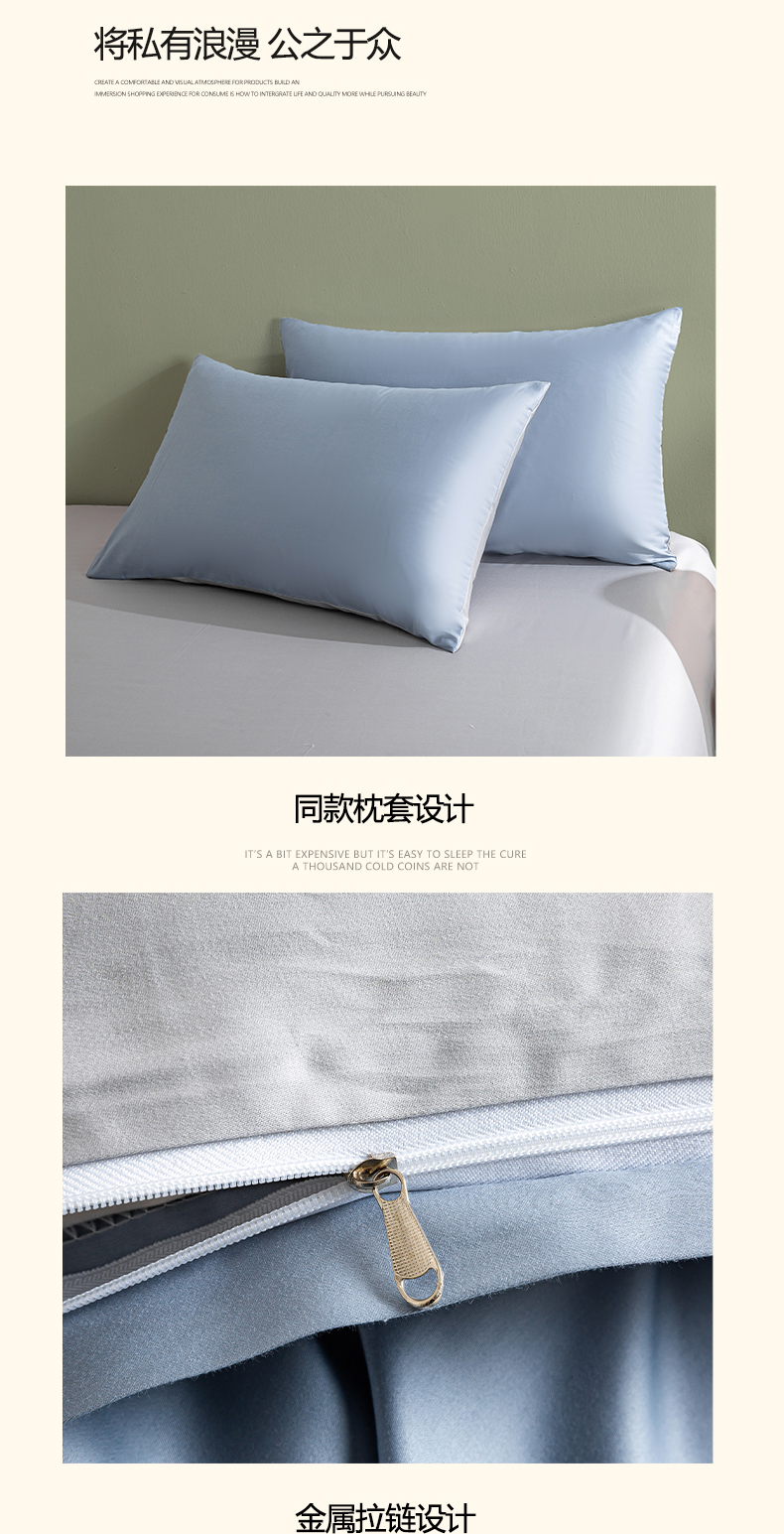 当前位置: 91家纺网 > 商品网购 > 床品套件 > 四件套 > 全棉普通四件套 > 憨豆家纺 2026新款全棉60s四件套纯色贡缎纯棉被套床笠款三件套长绒棉被套 蓝灰+冰川灰