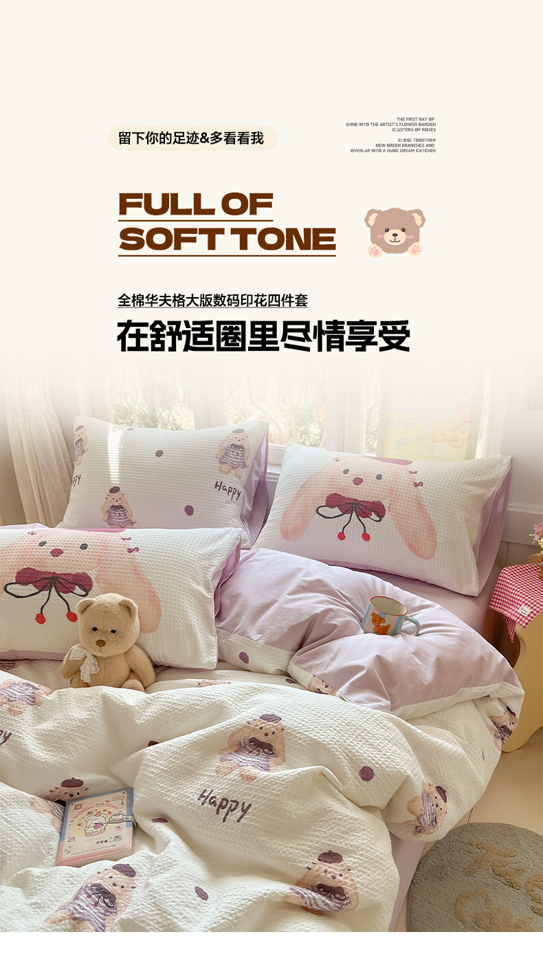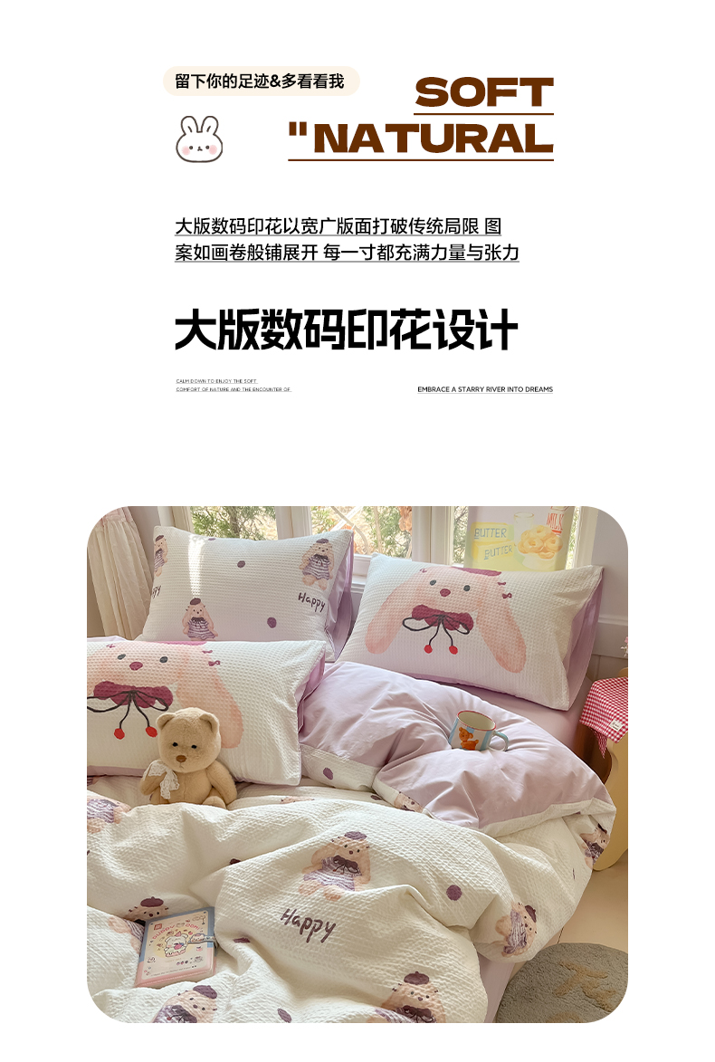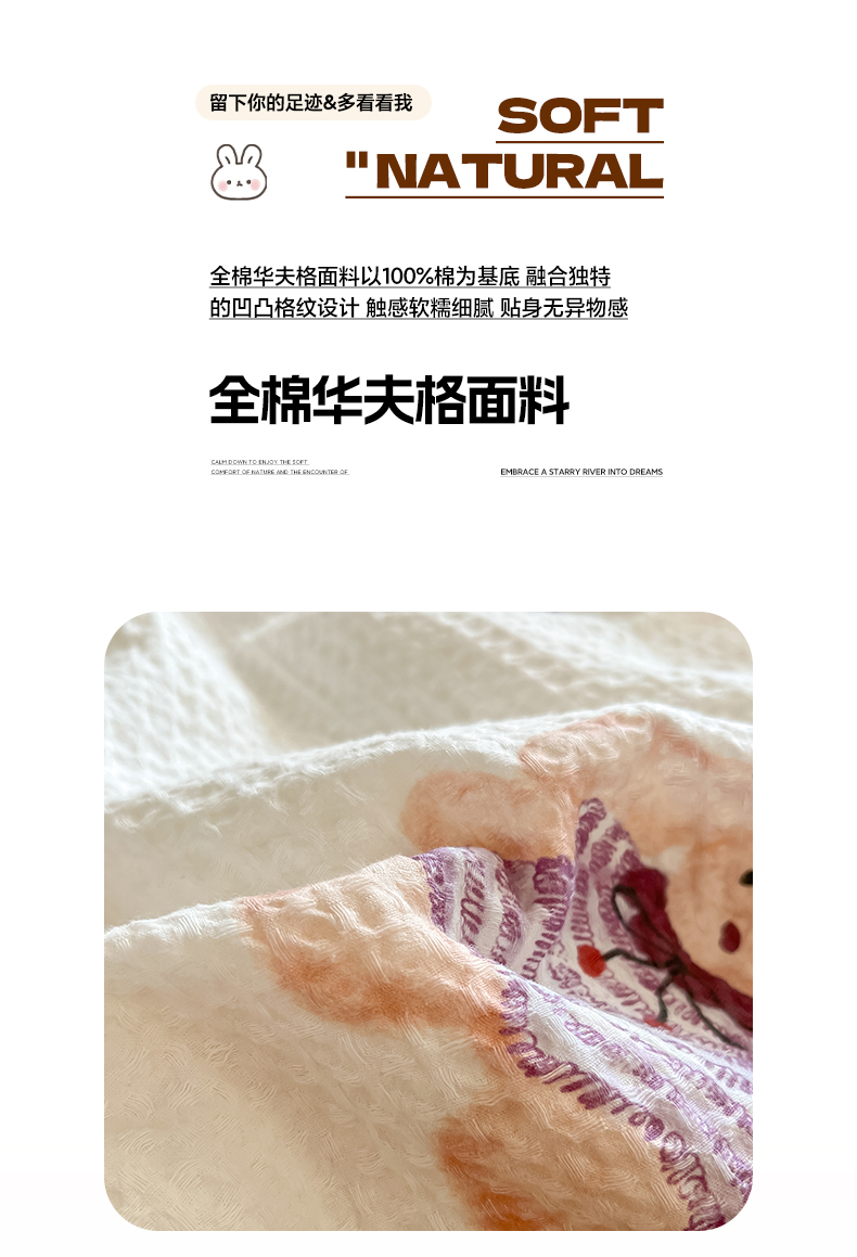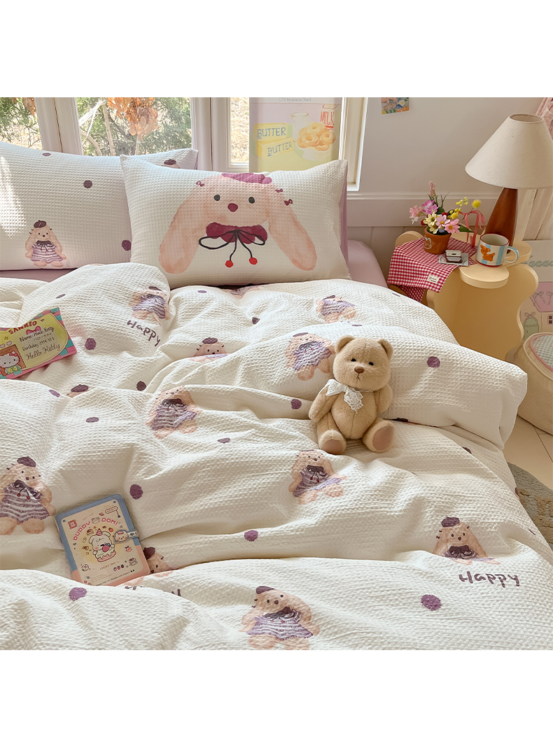 当前位置: 91家纺网 > 商品网购 > 床品套件 > 四件套 > 全棉普通四件套 > 如一 2026新款全棉纯棉华夫格大版数码印花四件套 长耳兔