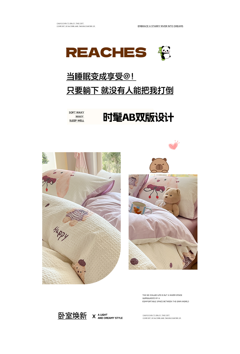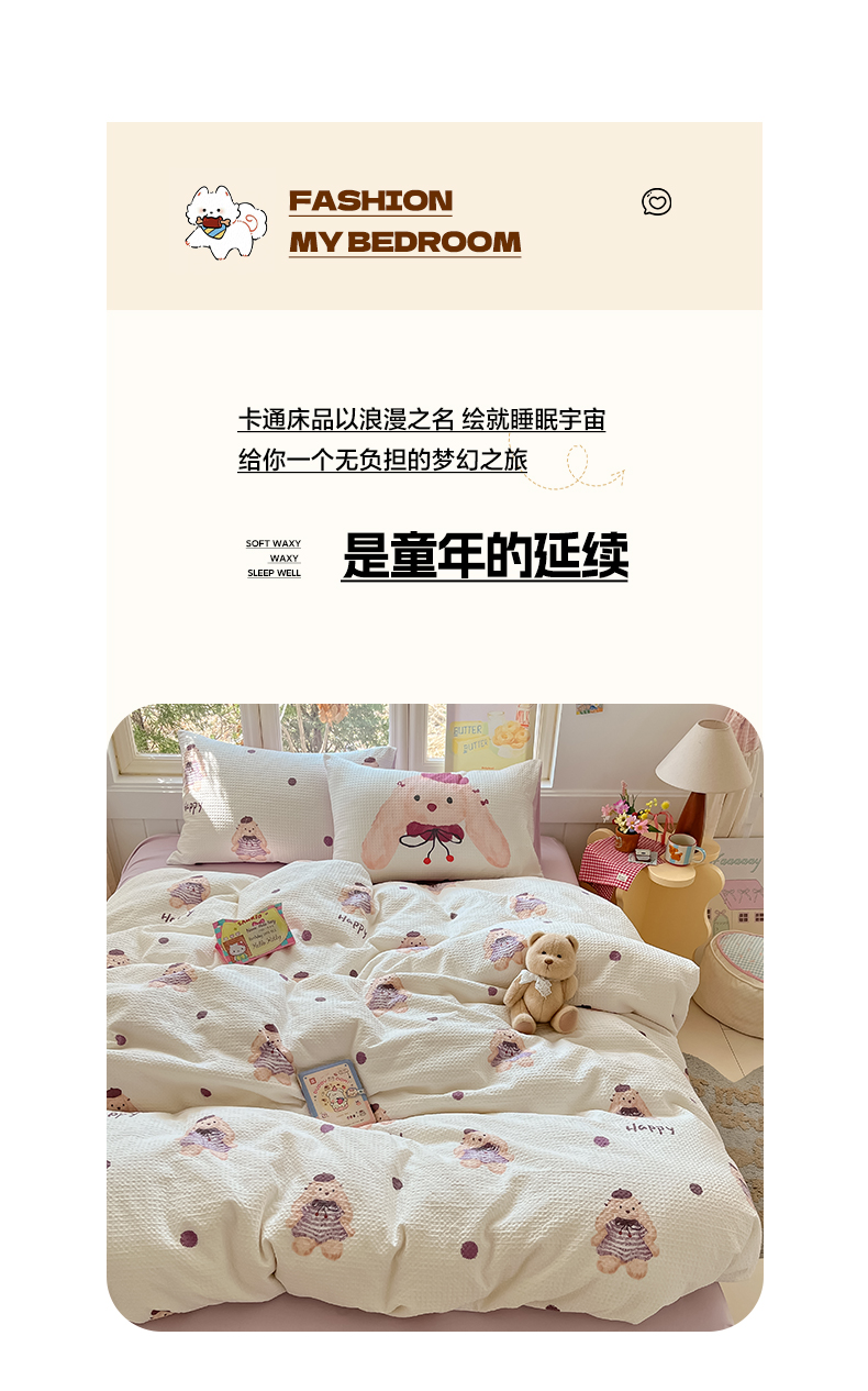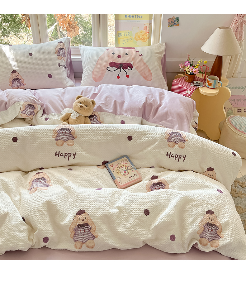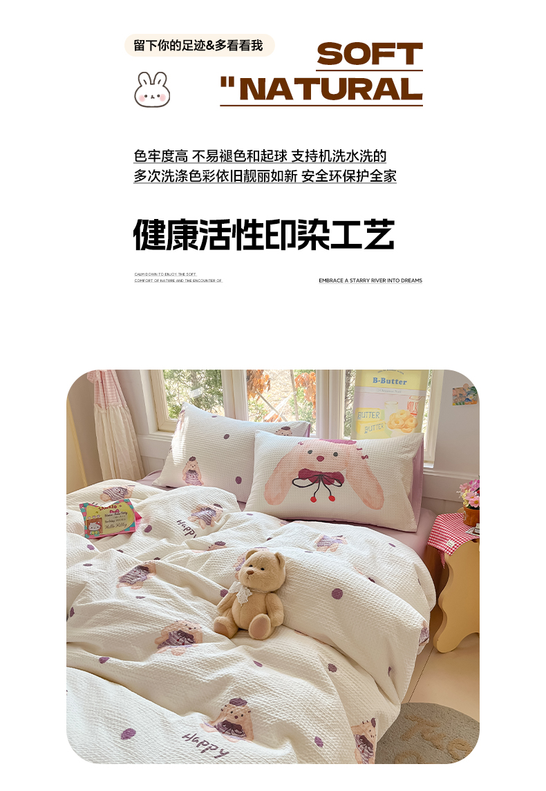 当前位置: 91家纺网 > 商品网购 > 床品套件 > 四件套 > 全棉普通四件套 > 如一 2026新款全棉纯棉华夫格大版数码印花四件套 长耳兔