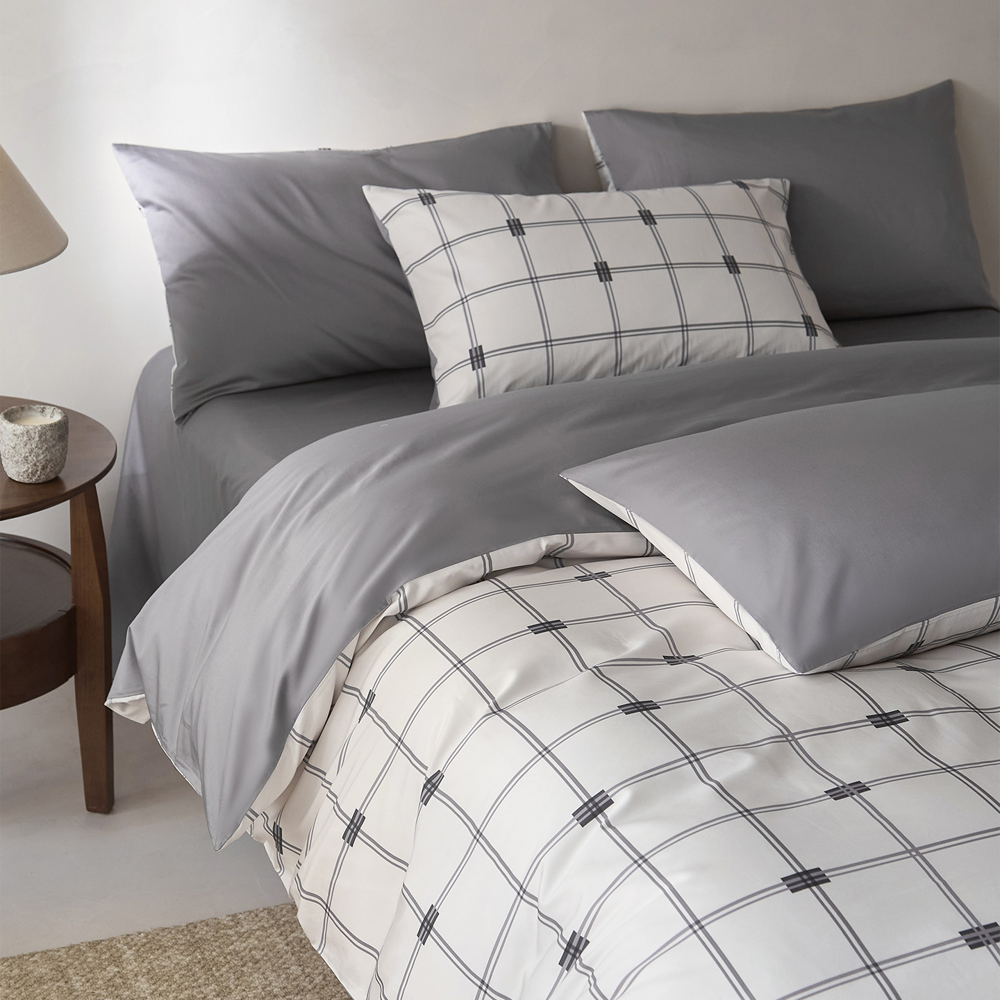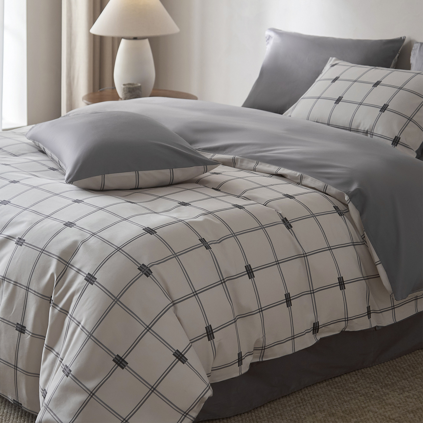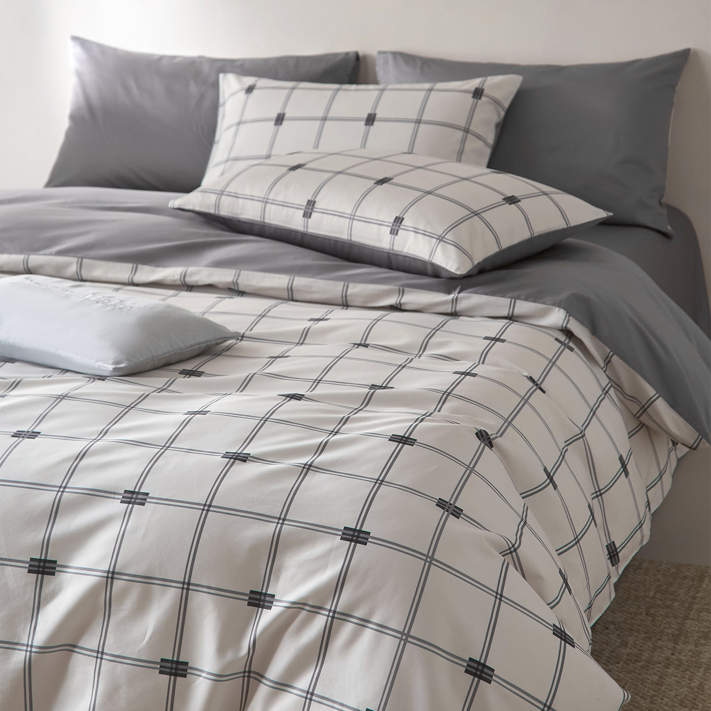当前位置: 91家纺网 > 商品网购 > 床品套件 > 四件套 > 全棉普通四件套 > (总)ONE TWO ONE 121 2026新款专版数码印花100s长绒棉纯棉全棉床上用品四件套-罗曼格纹灰