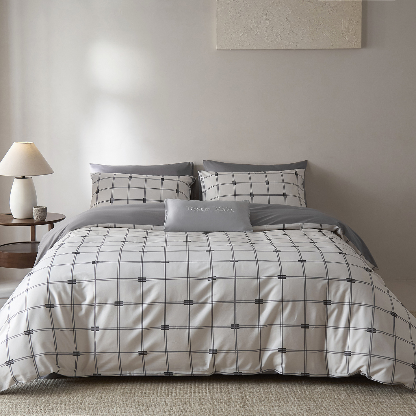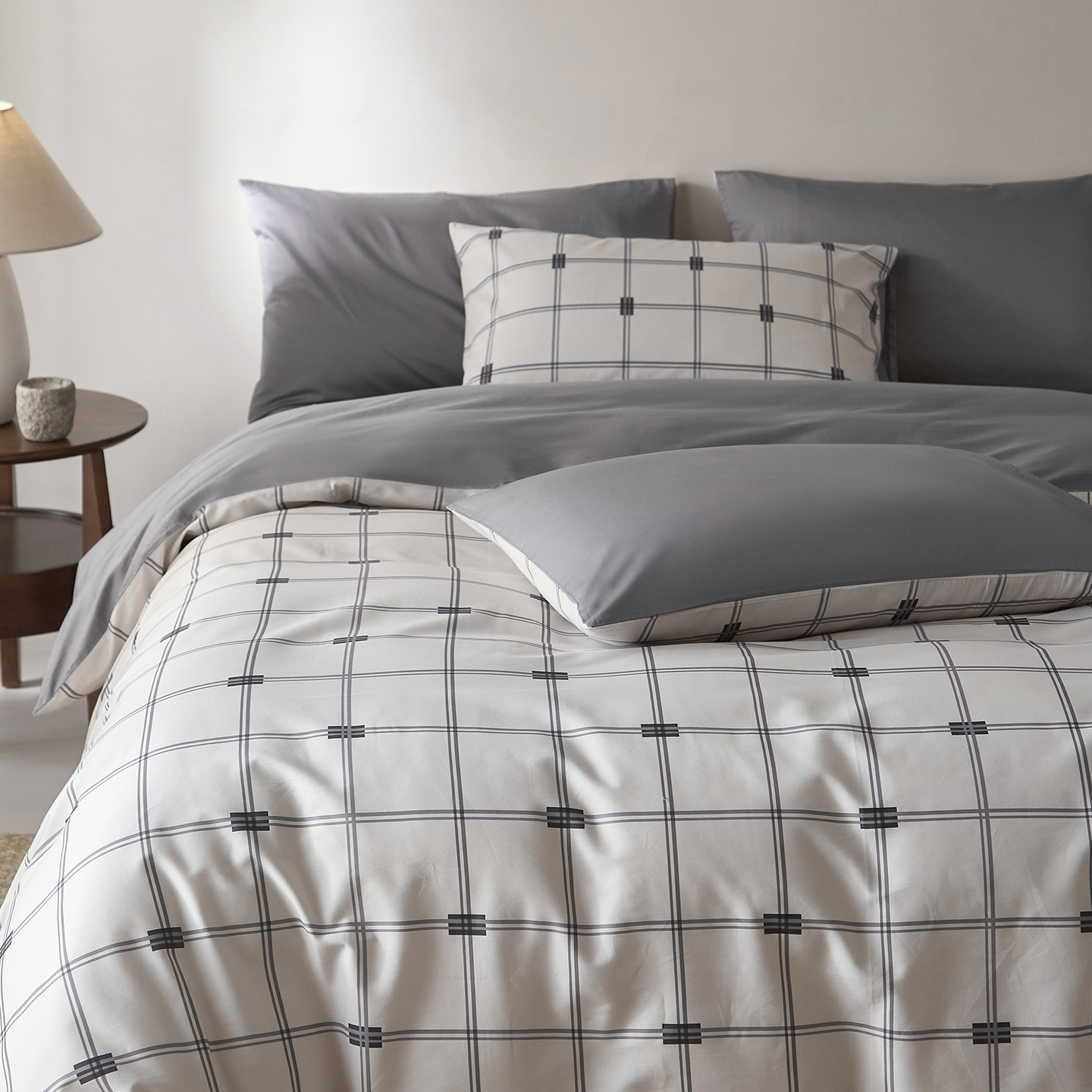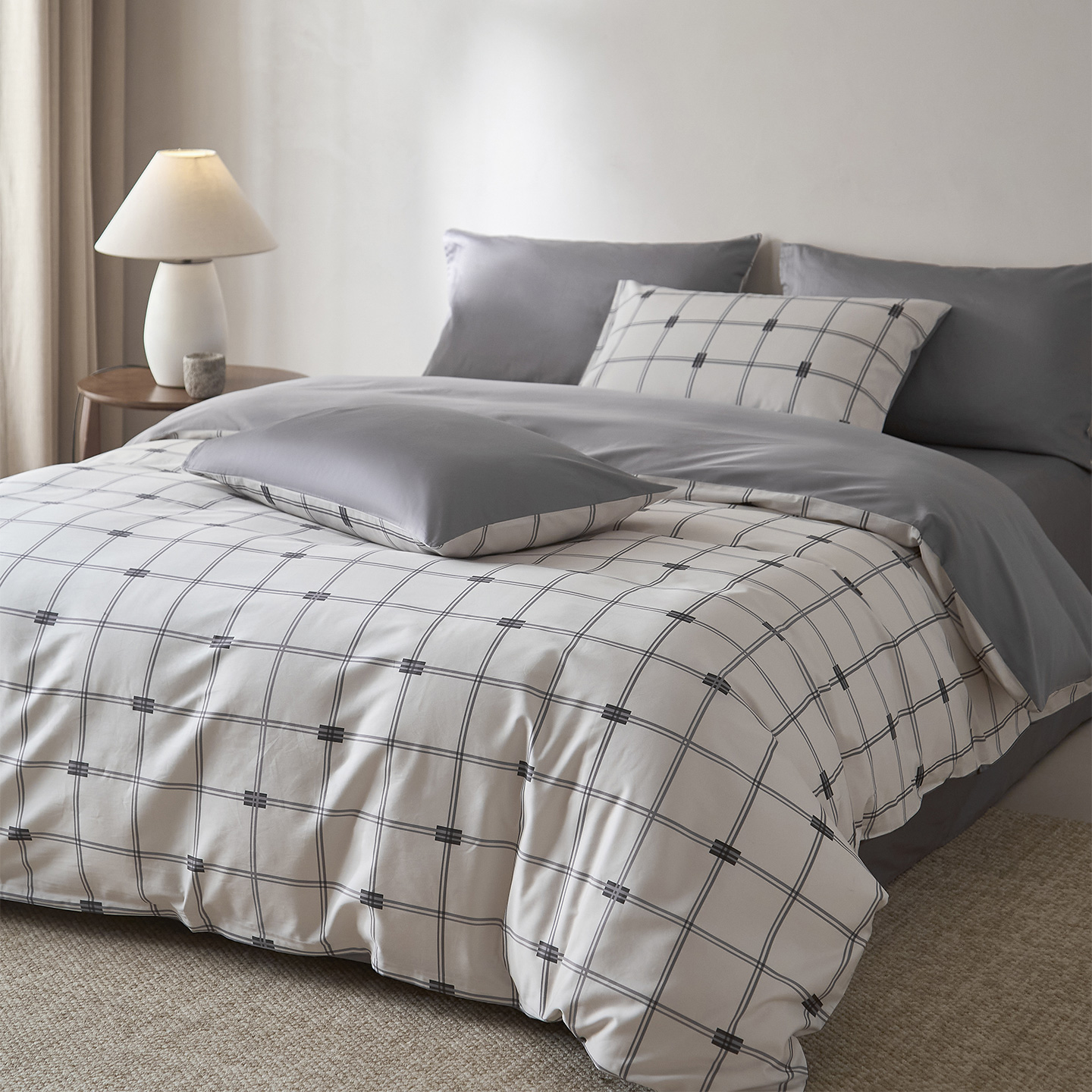 当前位置: 91家纺网 > 商品网购 > 床品套件 > 四件套 > 全棉普通四件套 > (总)ONE TWO ONE 121 2026新款专版数码印花100s长绒棉纯棉全棉床上用品四件套-罗曼格纹灰