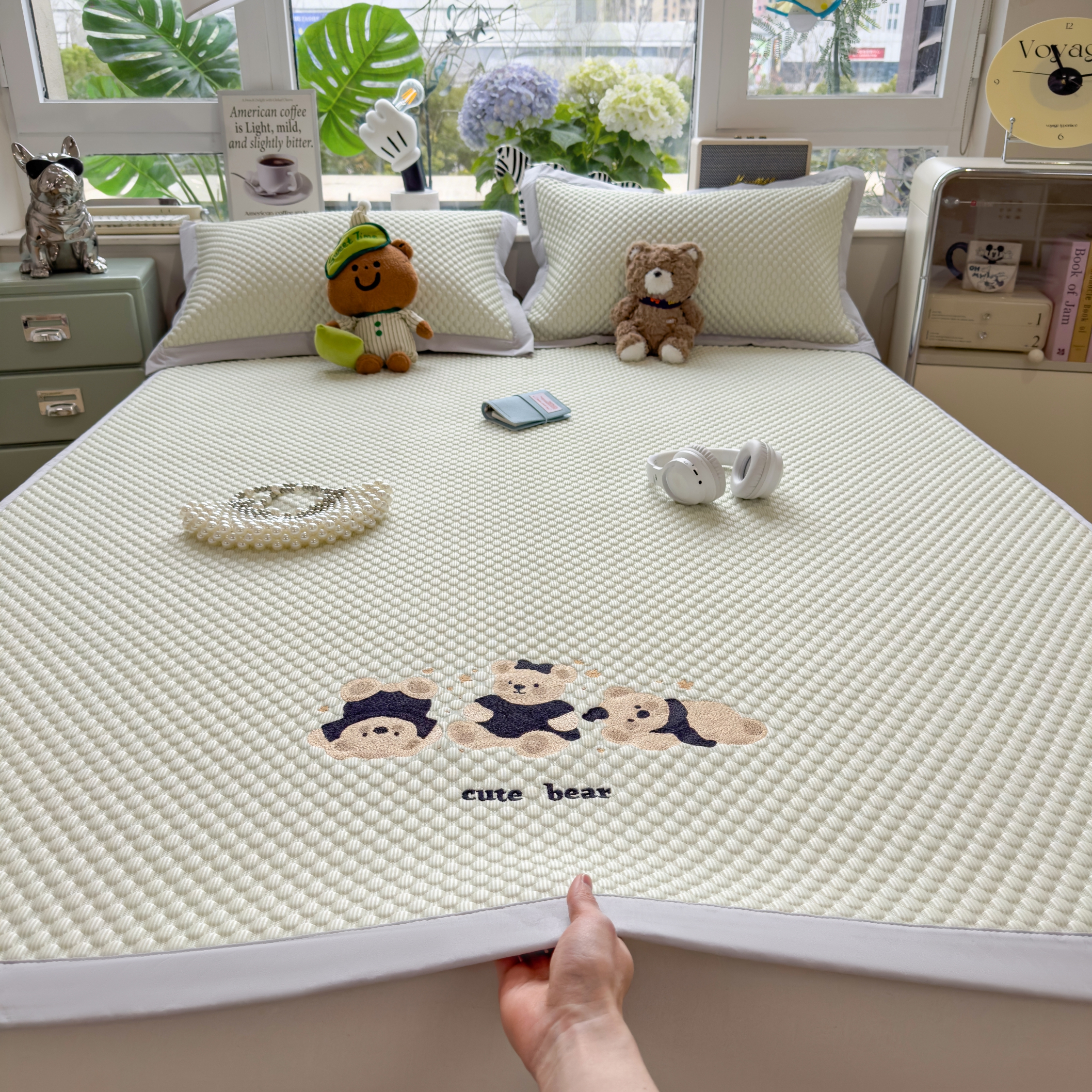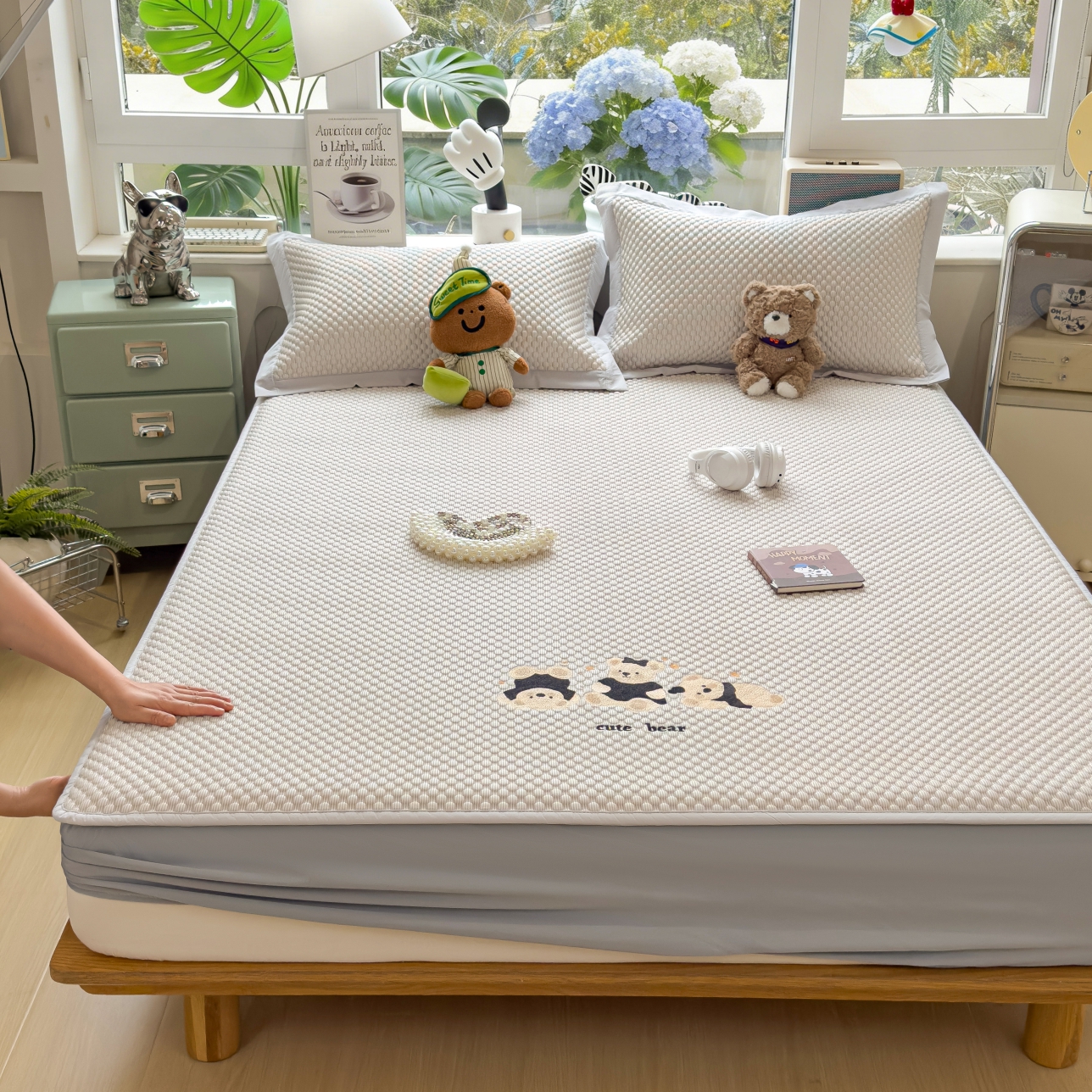 当前位置: 91家纺网 > 商品网购 > 床上用品 > 凉席 > 冰丝席 > 孩子王家纺 2026新款A类卡通3D冰豆豆凉席三件套凉感值过0.21夏天刺绣冰丝席可机洗儿童 冰川蓝-床笠款