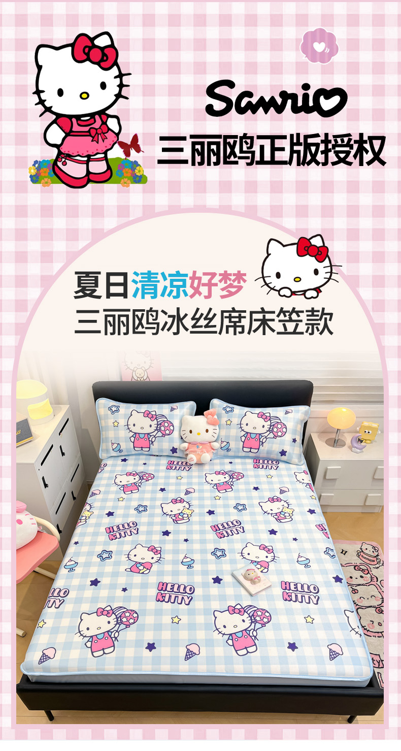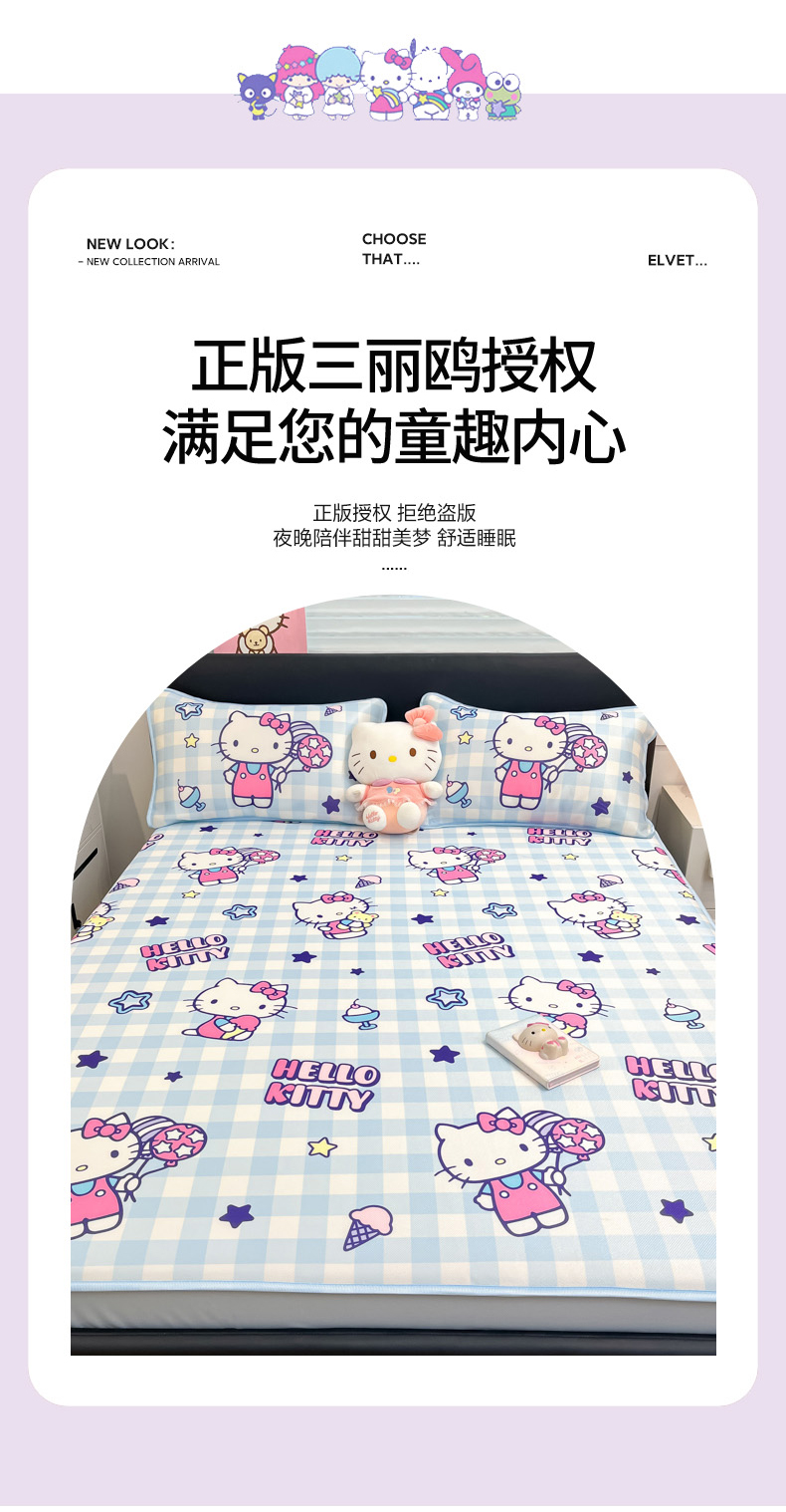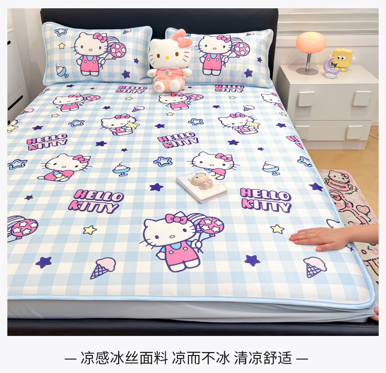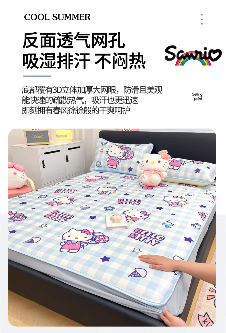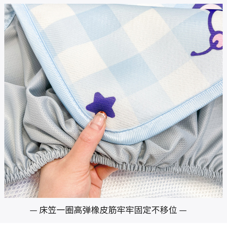当前位置: 91家纺网 > 商品网购 > 床上用品 > 凉席 > 凉席套件 > 暮思家居 2026新款三丽鸥正版授权数码印花A类可机洗1200D冰丝凉席三件套床笠款系列 床笠款-蓝格KT