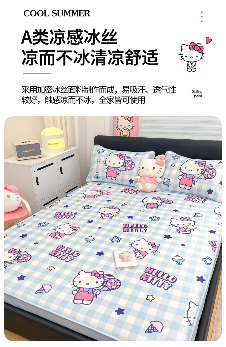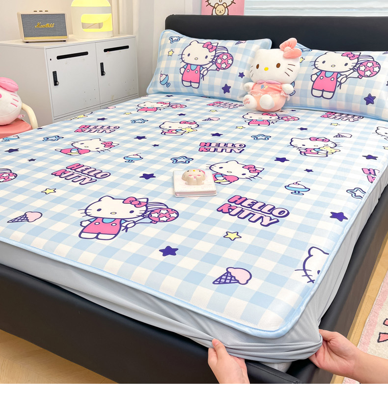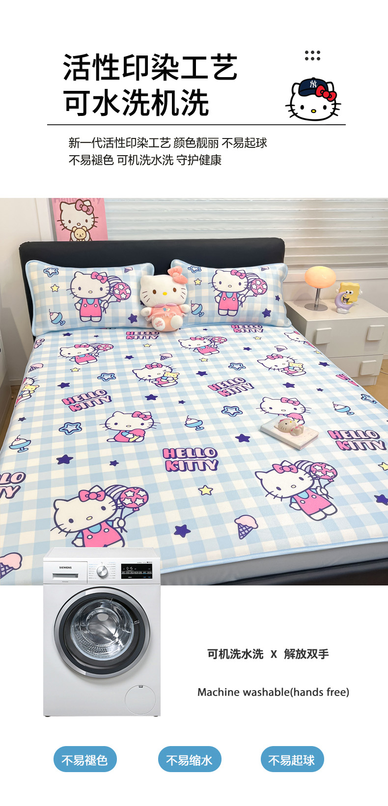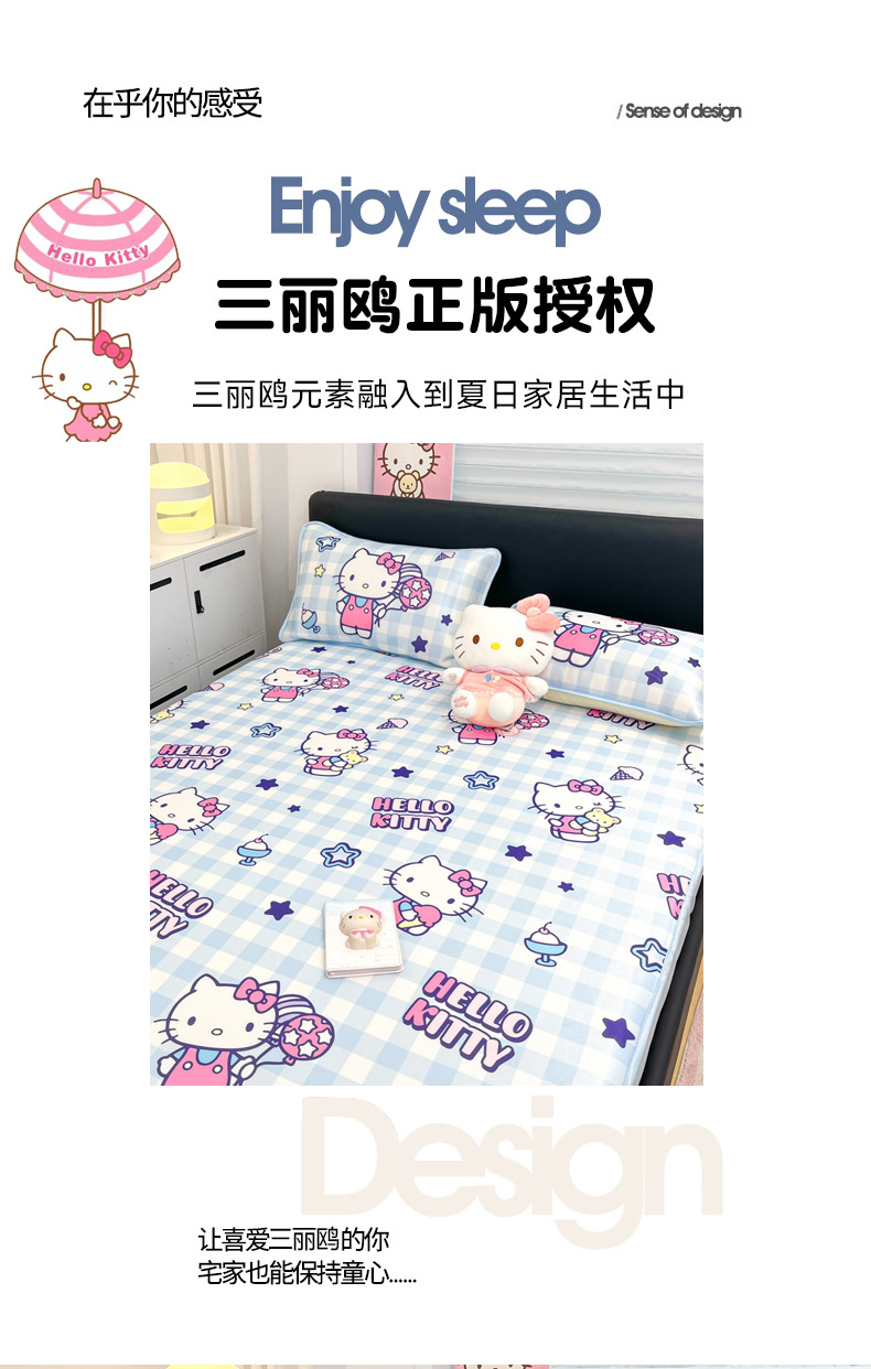 当前位置: 91家纺网 > 商品网购 > 床上用品 > 凉席 > 凉席套件 > 暮思家居 2026新款三丽鸥正版授权数码印花A类可机洗1200D冰丝凉席三件套床笠款系列 床笠款-蓝格KT