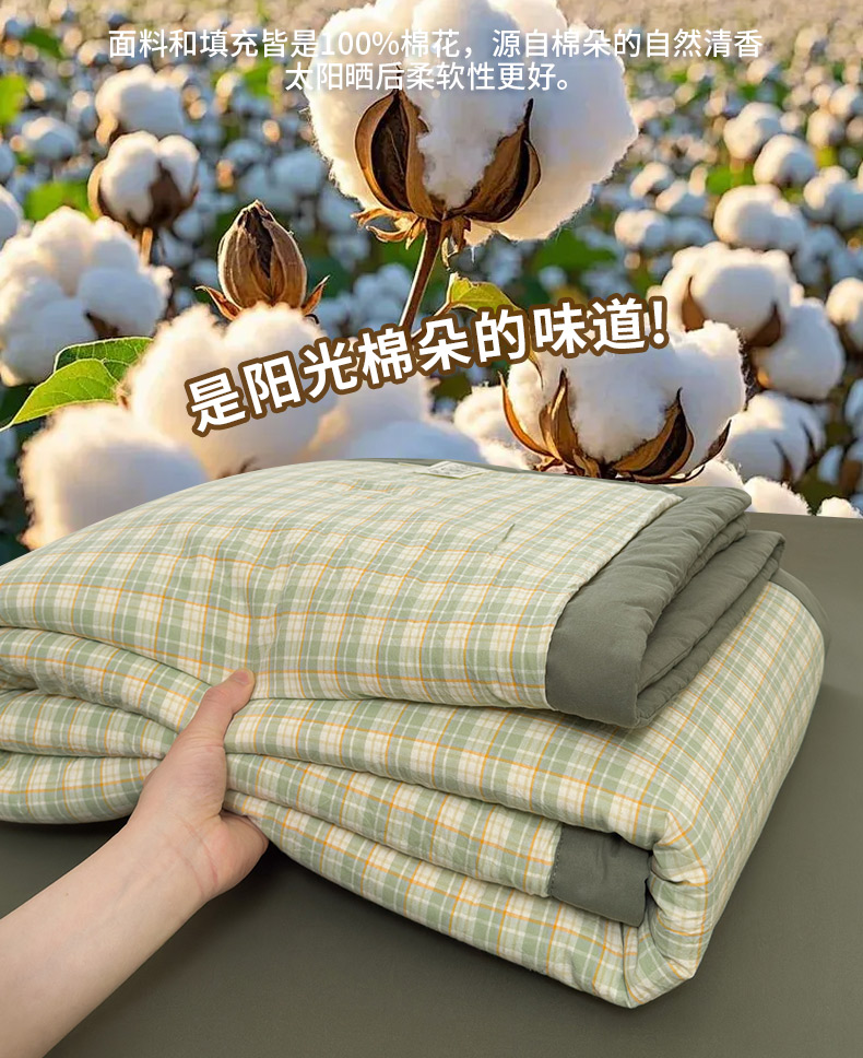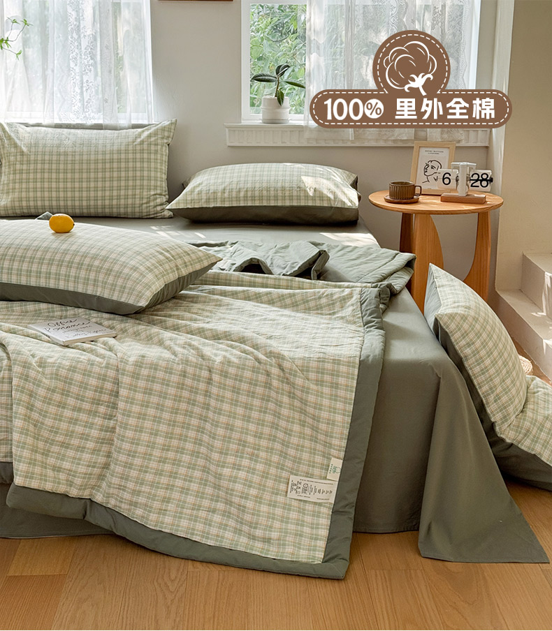 • 91家纺网 家纺一手货源 找家纺 雯雨家纺 2026新款A类全棉色织里外全棉夏被 朵拉绿