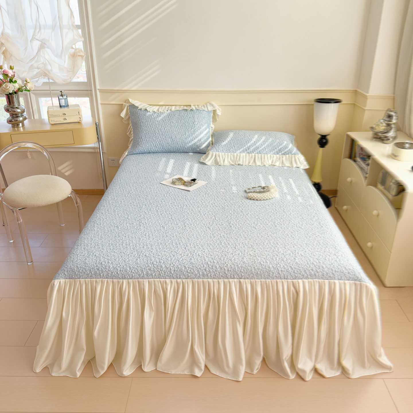 (总)孩子王家纺 2026新款夏季凉感公主风冰豆豆花边凉席床裙款凉感值过0.21三件套可机洗冰丝空,豆豆物语-芭蕾粉,豆豆物语-流连紫,豆豆物语-奶白,豆豆物语-奶咖,豆豆物语-天空蓝,豆豆物语-微微蓝,豆豆物语-飘飘-绿
