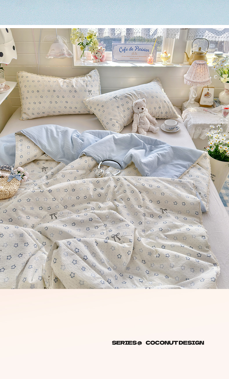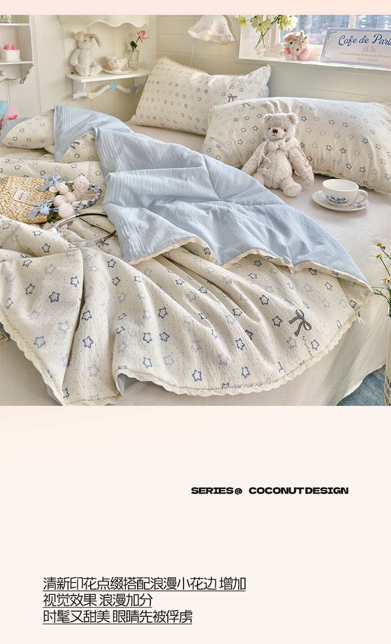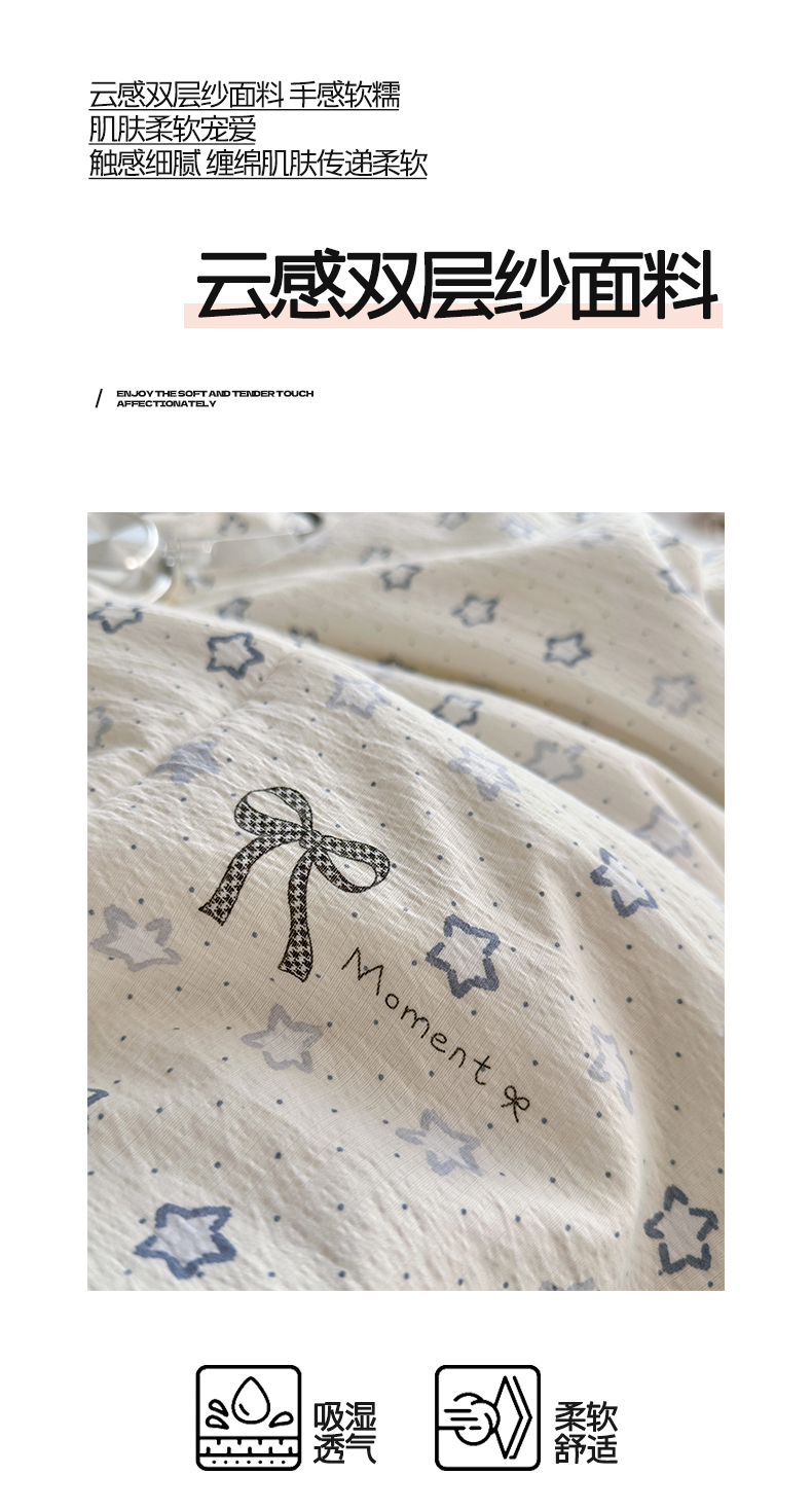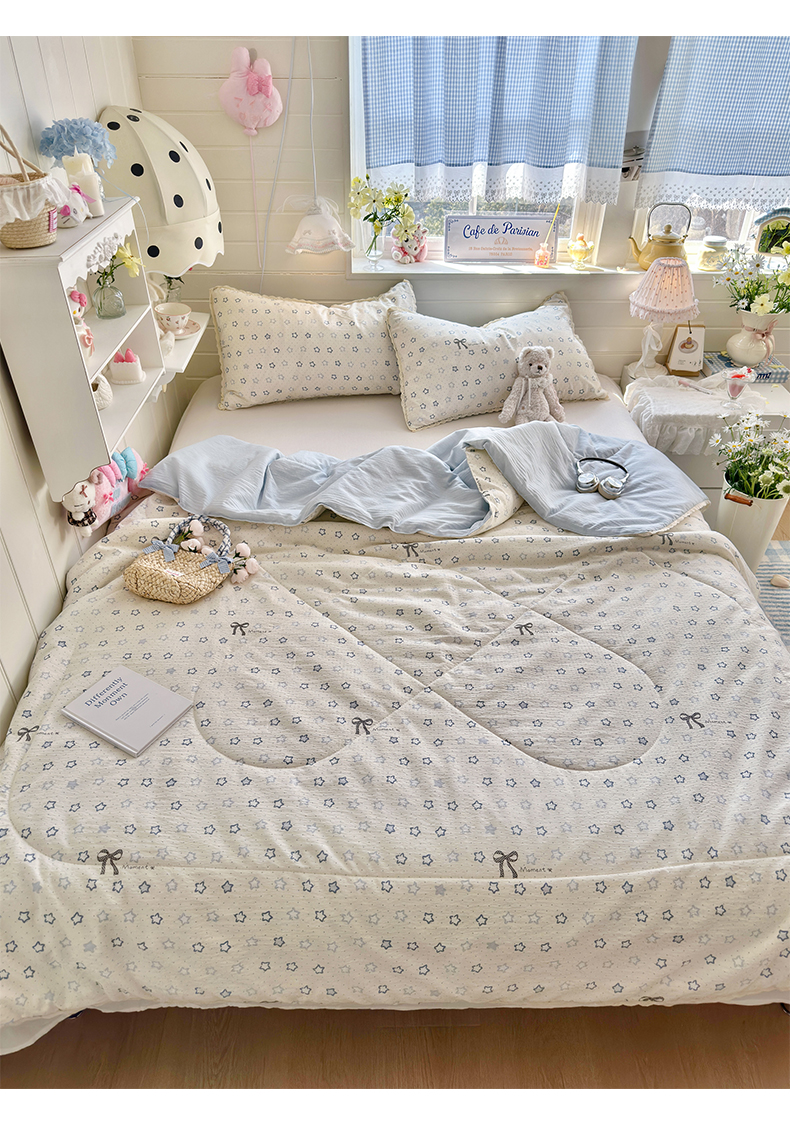 优承佳生活馆 2026新款云感双层纱抗菌夏被夏凉被空调被 相思蓝韵