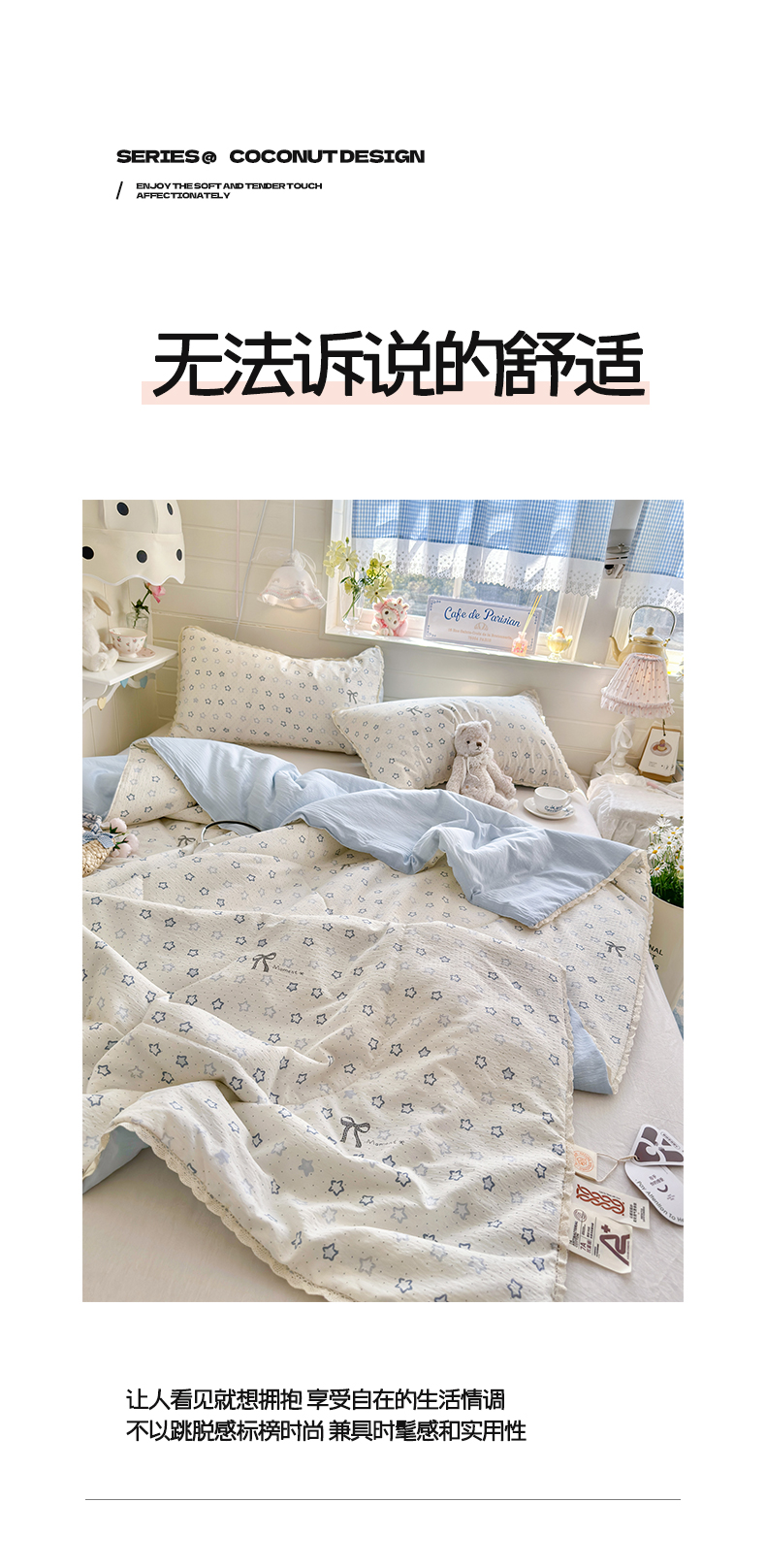 商品名称:优承佳生活馆 2026新款云感双层纱抗菌夏被夏凉被空调被 相思蓝韵