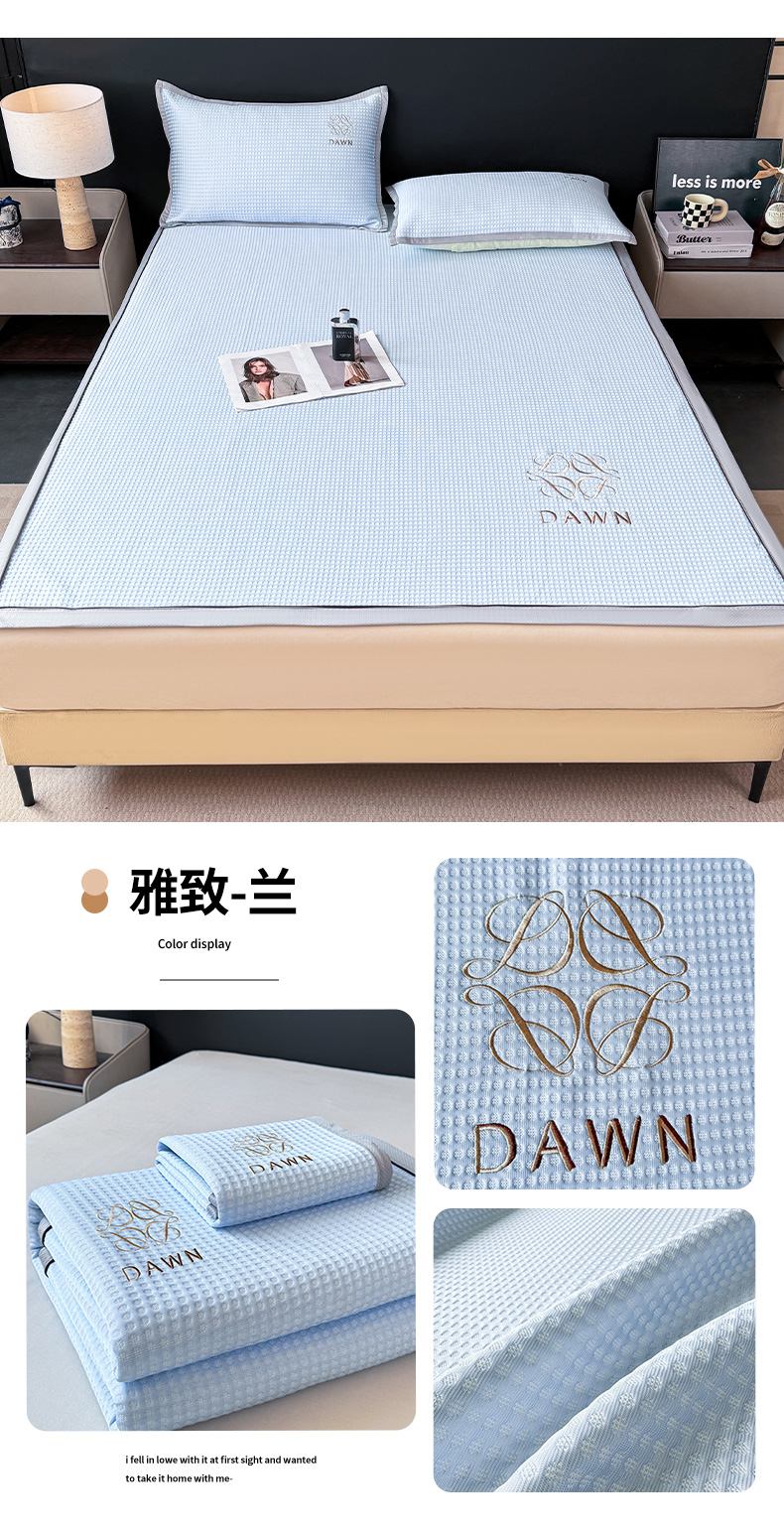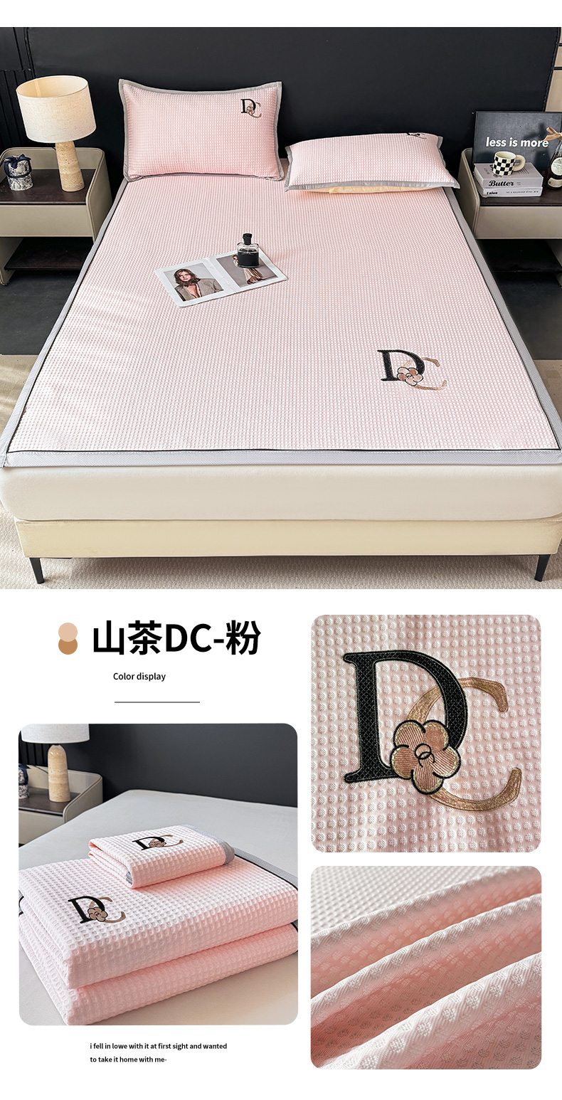 • 91家纺网 家纺一手货源 找家纺 (总)眠势力 2026新款冰豆豆凉席刺绣款凉席子冰感豆豆床单软凉席三件套可机洗,山茶DC-粉,山茶DC-灰,山茶DC-兰,山茶DC-绿,山茶DC-米,雅致-粉,雅致-灰,雅致-兰,雅致-绿,雅致-米