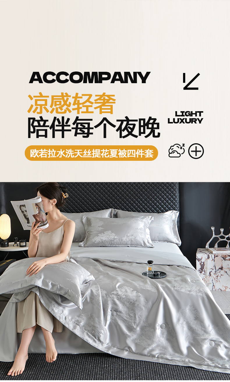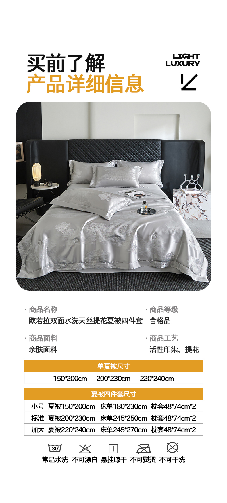 当前位置: 91家纺网 > 商品网购 > 床品套件 > 四件套 > 夏被四件套 > 置顶家纺 2026新款双面水洗天丝提花夏被四件套-欧若拉 欧若拉-山灰