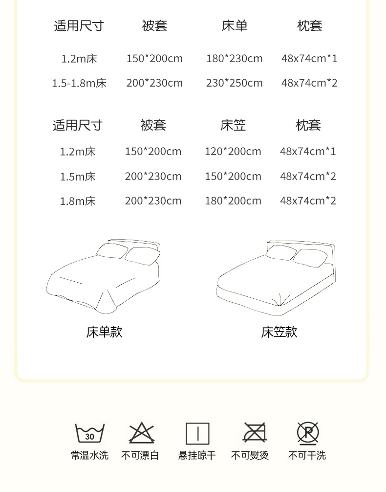【床笠款】1.2三件套-被套150x200 | ¥105.00 |
