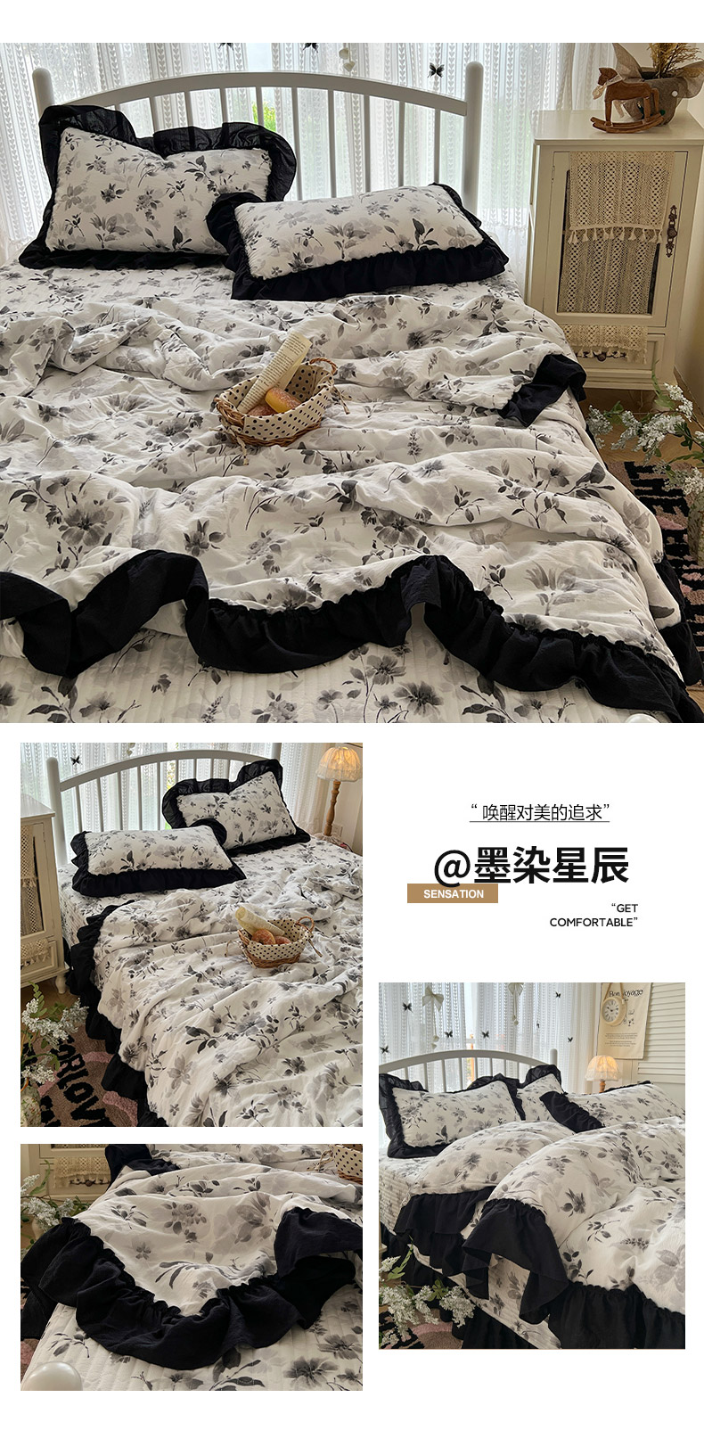 当前位置: 91家纺网 > 商品网购 > 床品套件 > 四件套 > 夏被四件套 > 金梦拉家纺 2026新款皱皱纱泡泡纱法式赫本系列床盖大花边四件套夏被四件套 字母星河