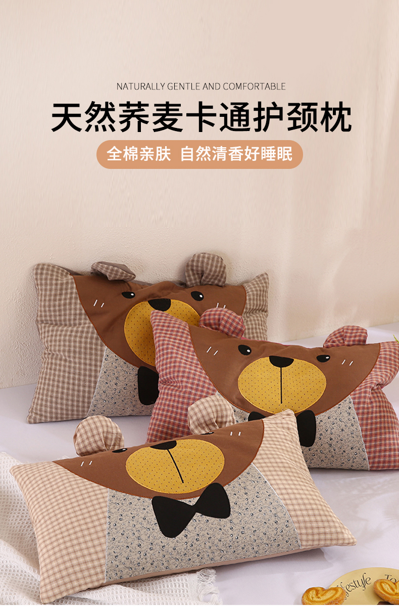 商品名称:蔻眠 萌熊-全棉刺绣卡通荞麦护颈枕头儿童学生荞麦枕芯 萌熊-咖格