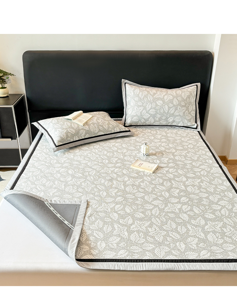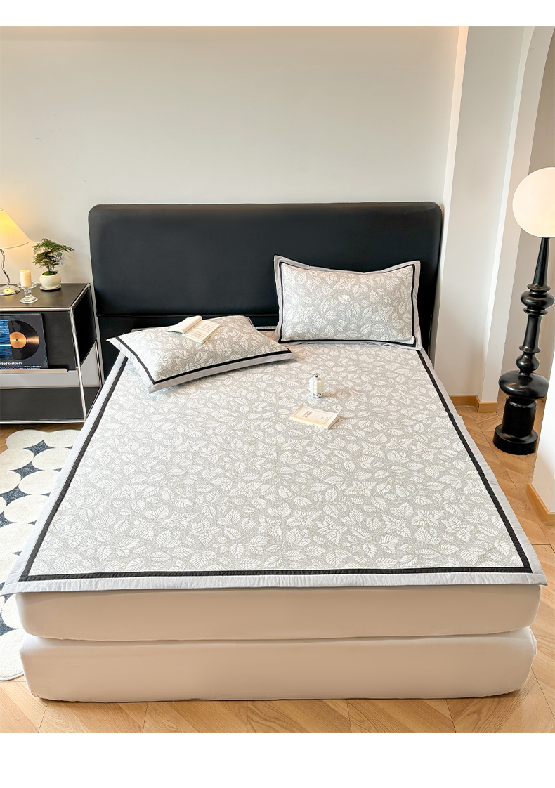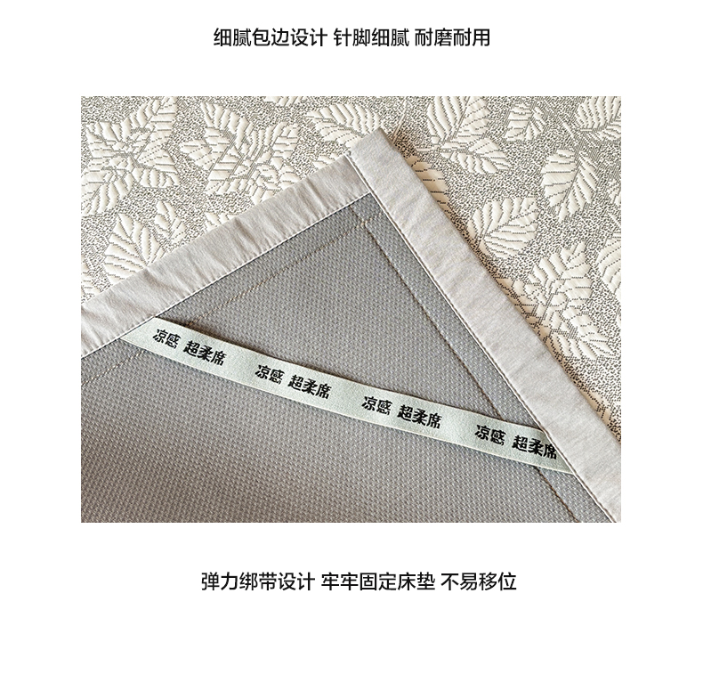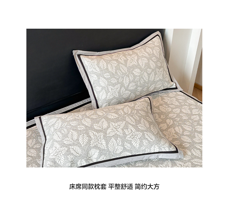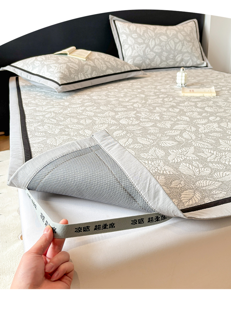 商品名称:雅居纺家纺 2026新款A类加厚三明治底黑边PE凉感席 叶韵-灰