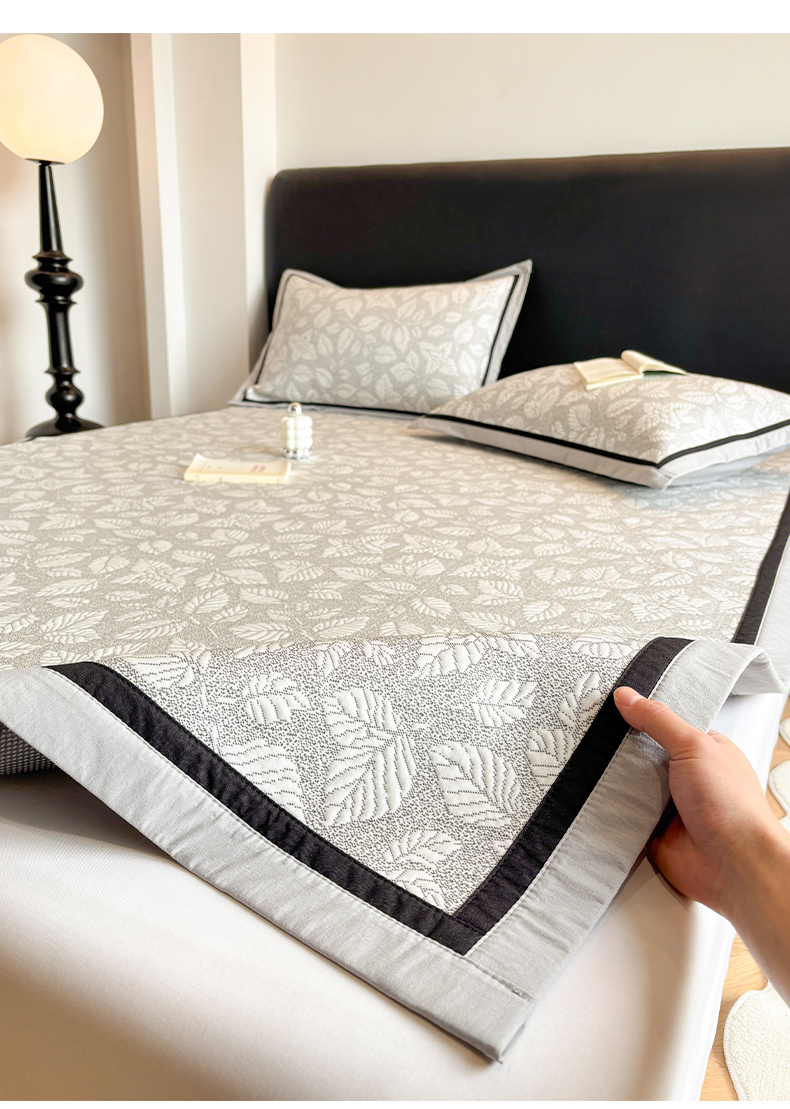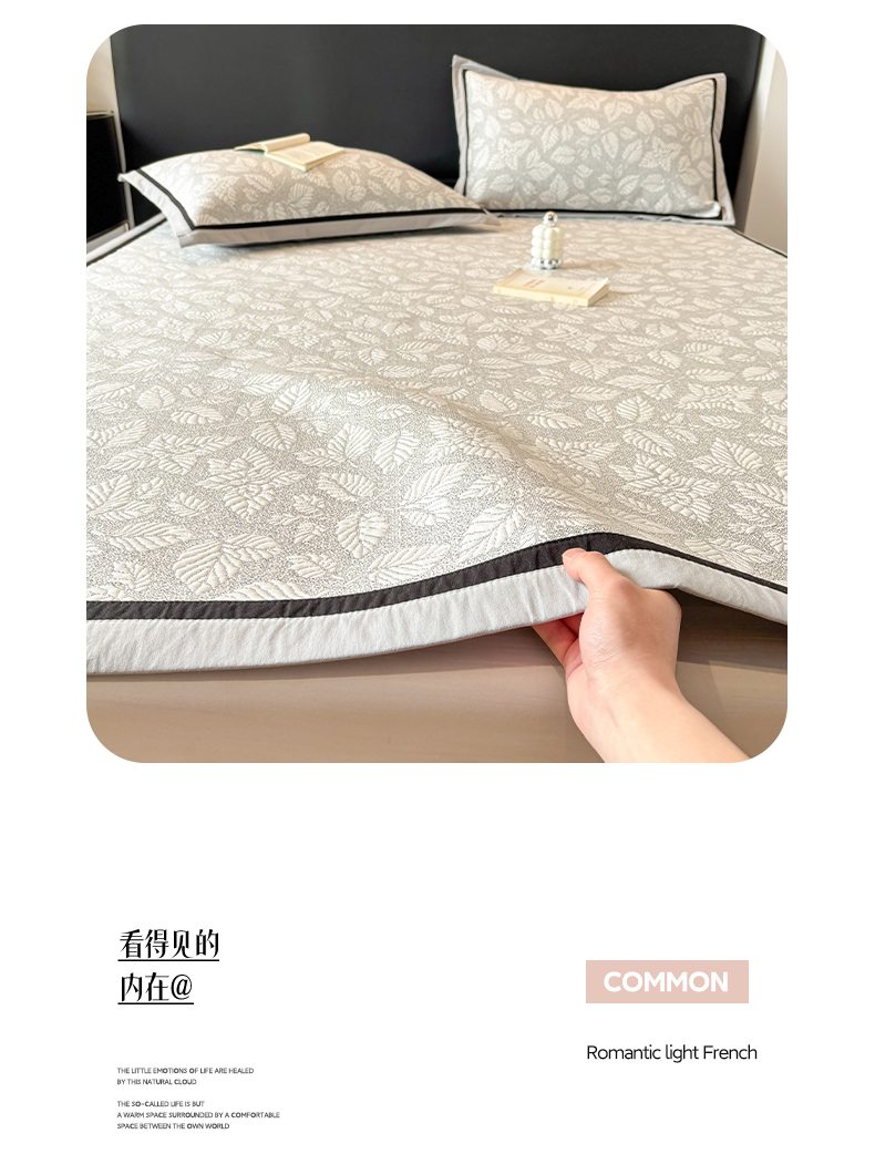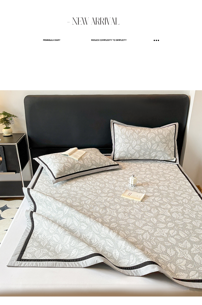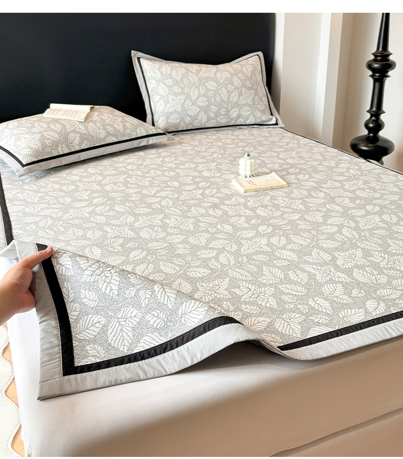 商品名称:雅居纺家纺 2026新款A类加厚三明治底黑边PE凉感席 叶韵-灰