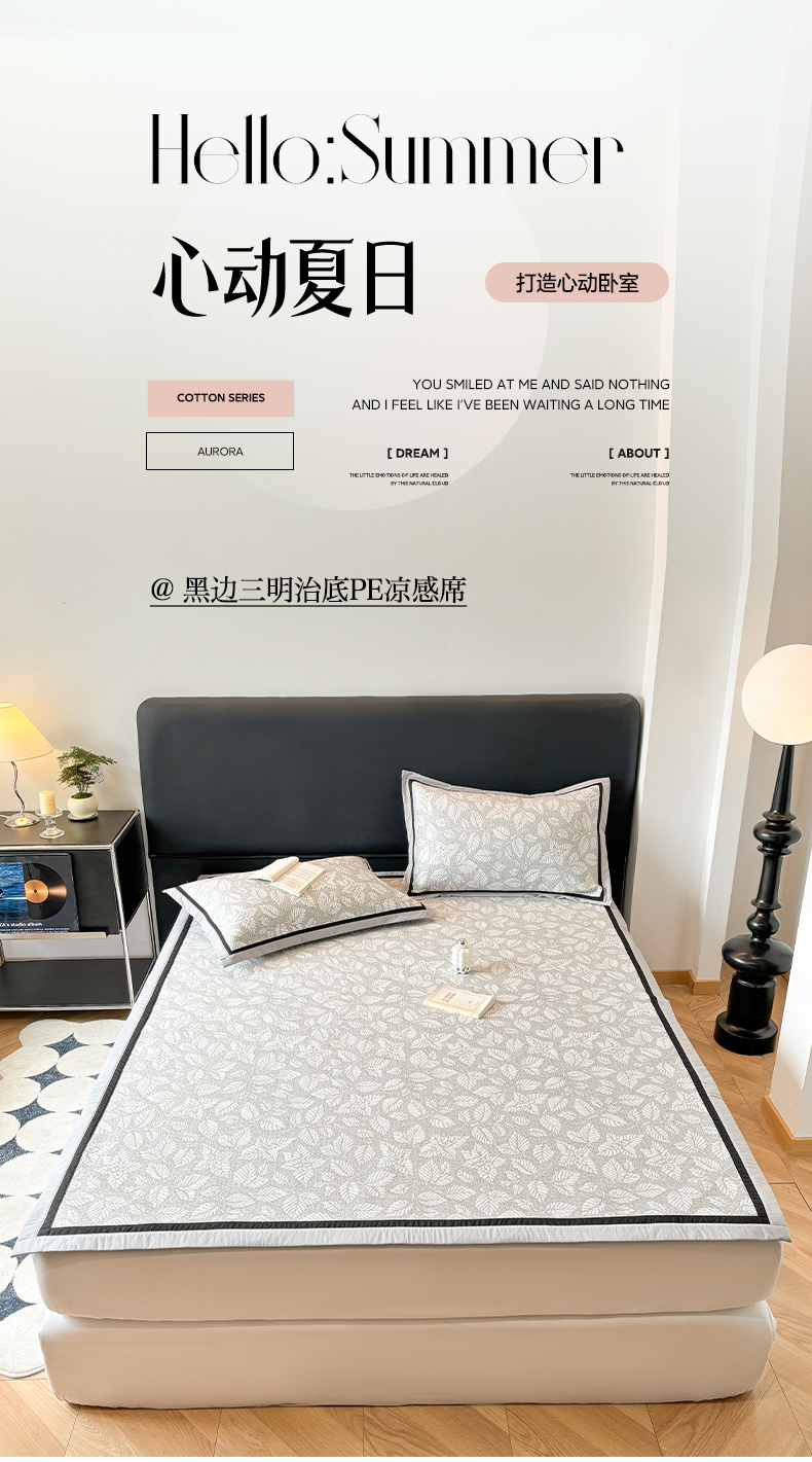 (总)雅居纺家纺 2026新款A类加厚三明治底黑边PE凉感席,枫叶-粉,枫叶-灰,枫叶-卡其,枫叶-蓝,梦影-粉,梦影-灰,梦影-绿,叶韵-灰,叶韵-卡其,圆舞-粉