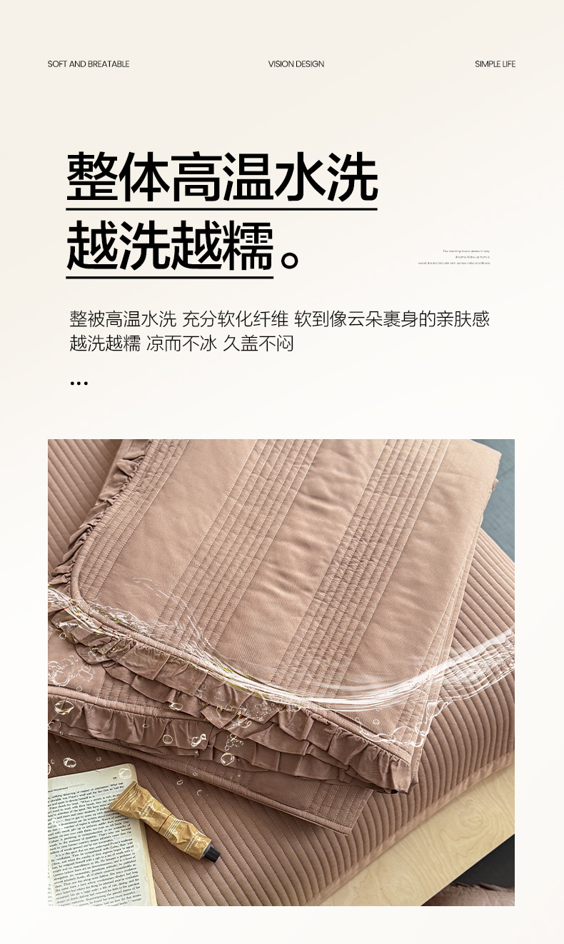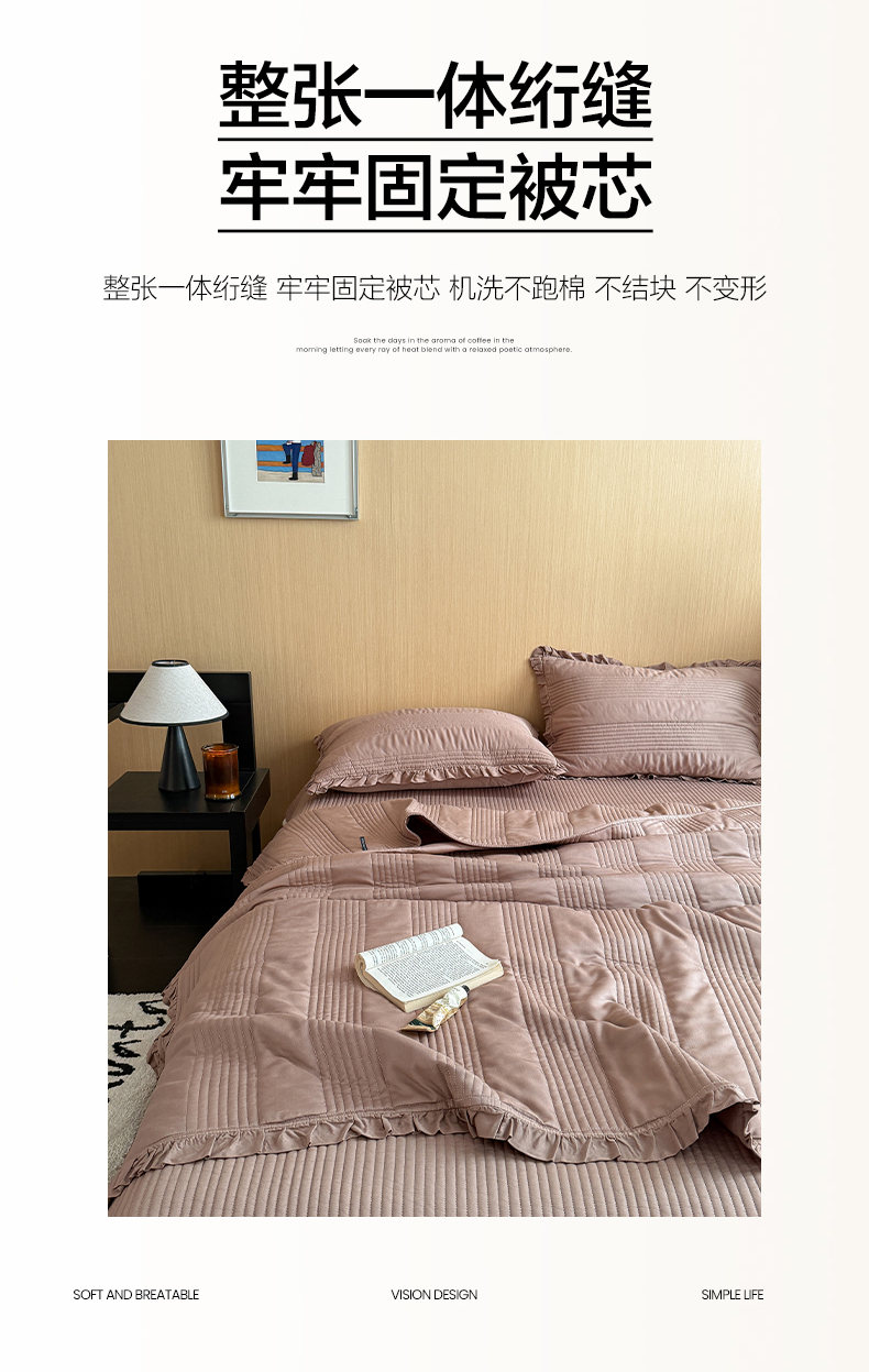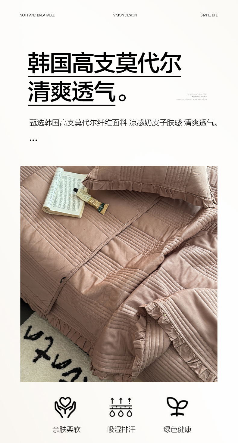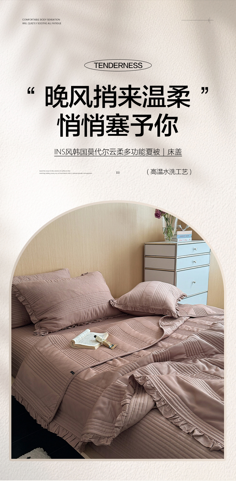 (总)漫调家纺 2026新款韩国莫代尔夏被床盖系列-花边款,海盐蓝,可可暖棕,奶杏,柔粉,雾灰