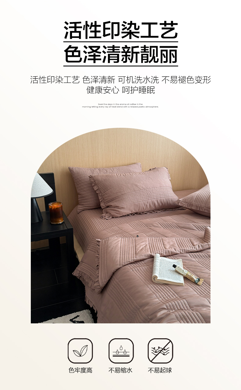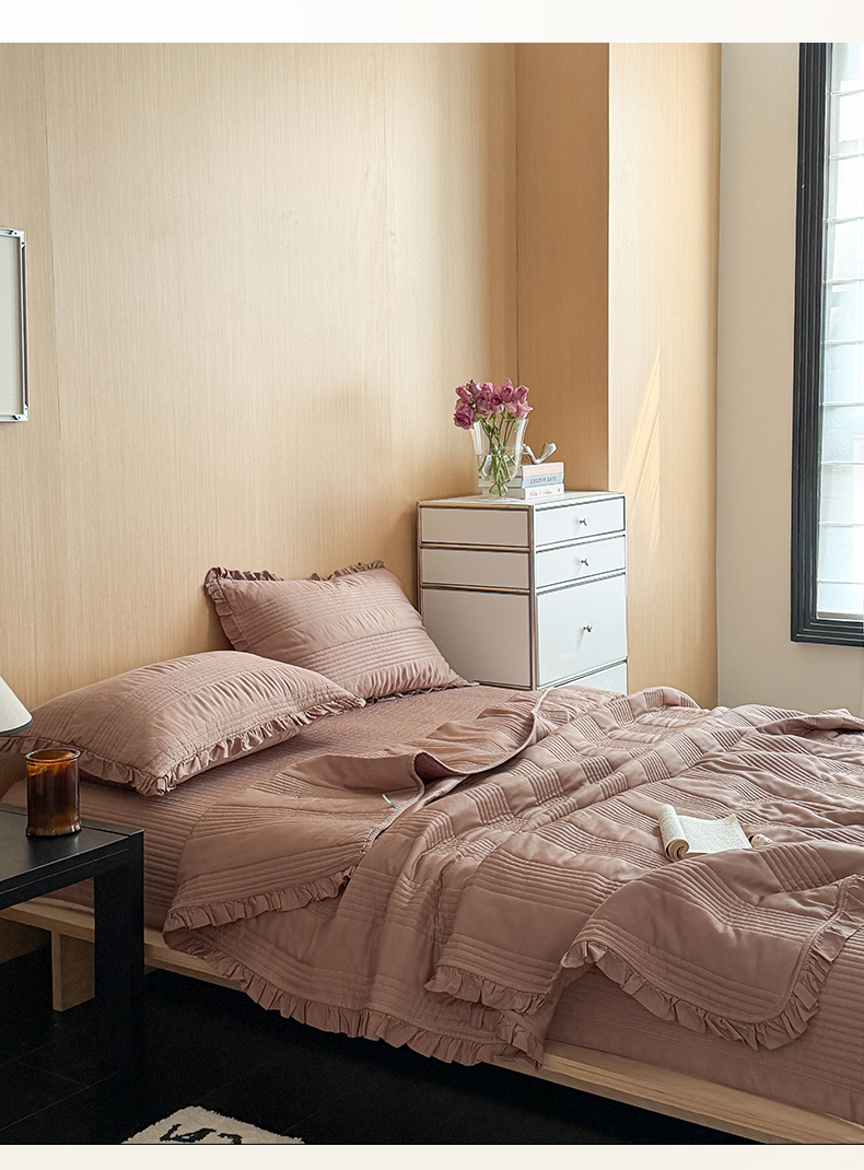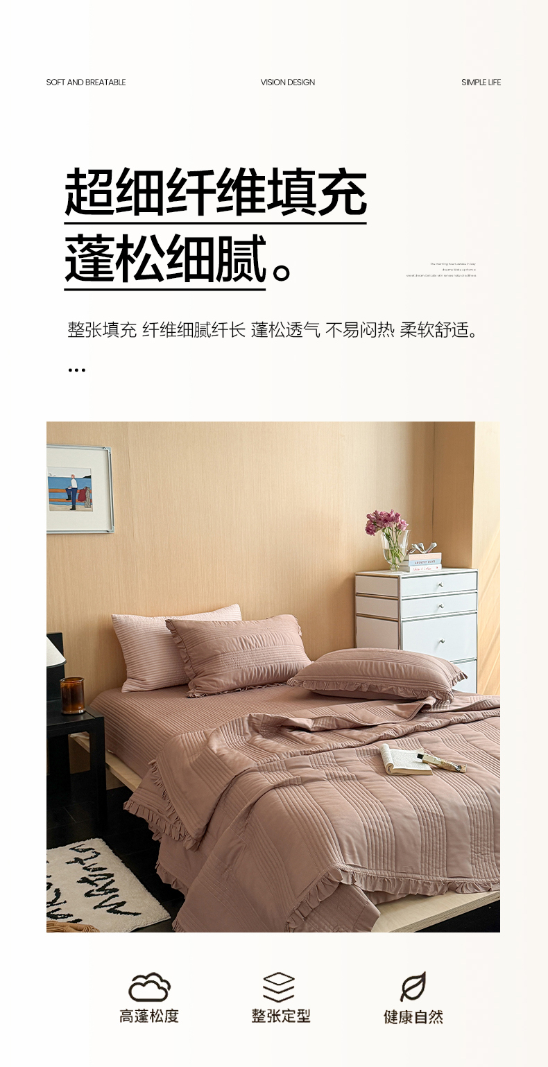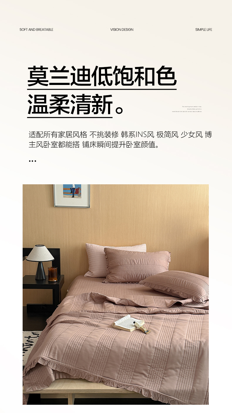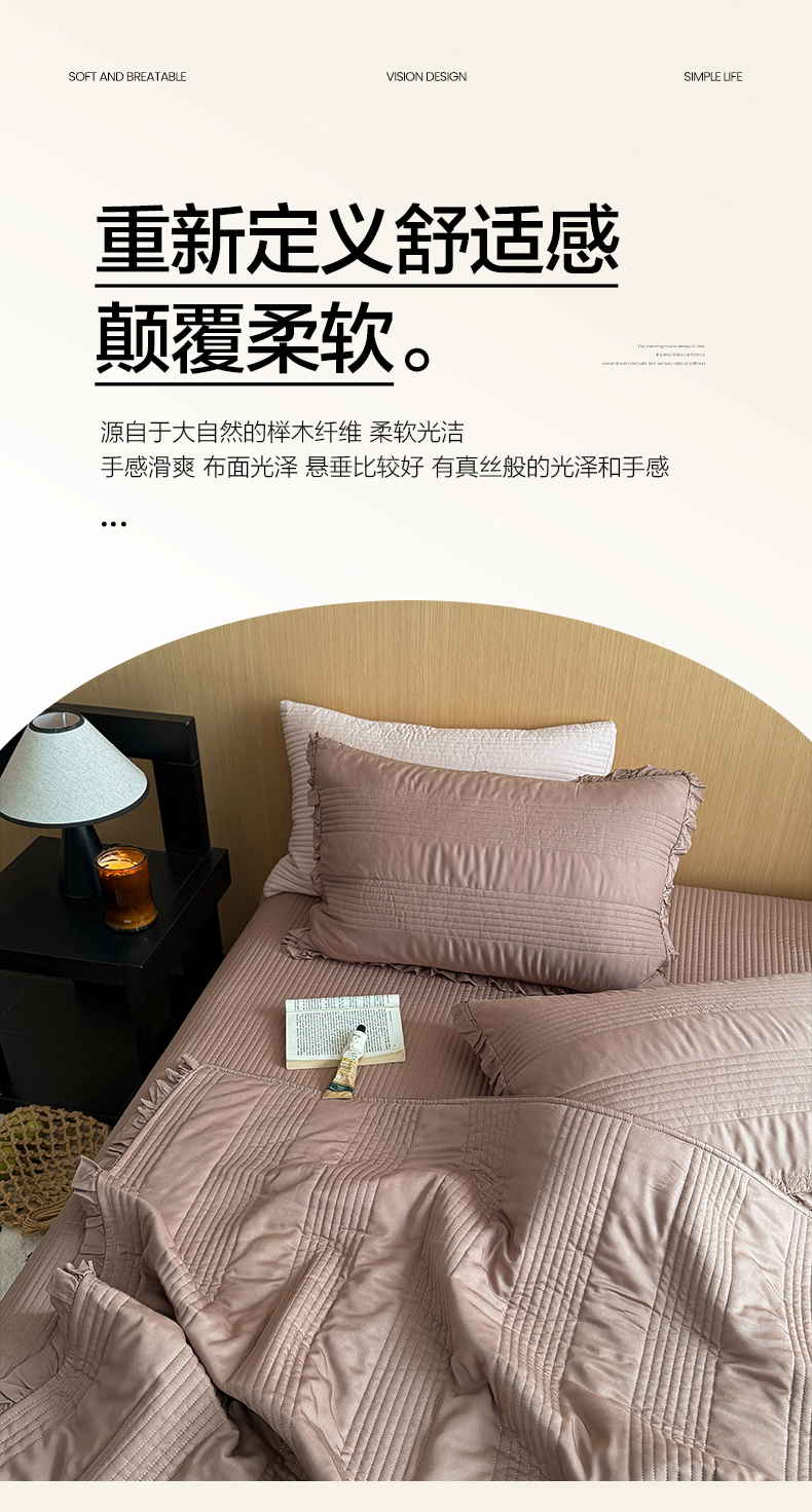 (总)漫调家纺 2026新款韩国莫代尔夏被床盖系列-花边款,海盐蓝,可可暖棕,奶杏,柔粉,雾灰