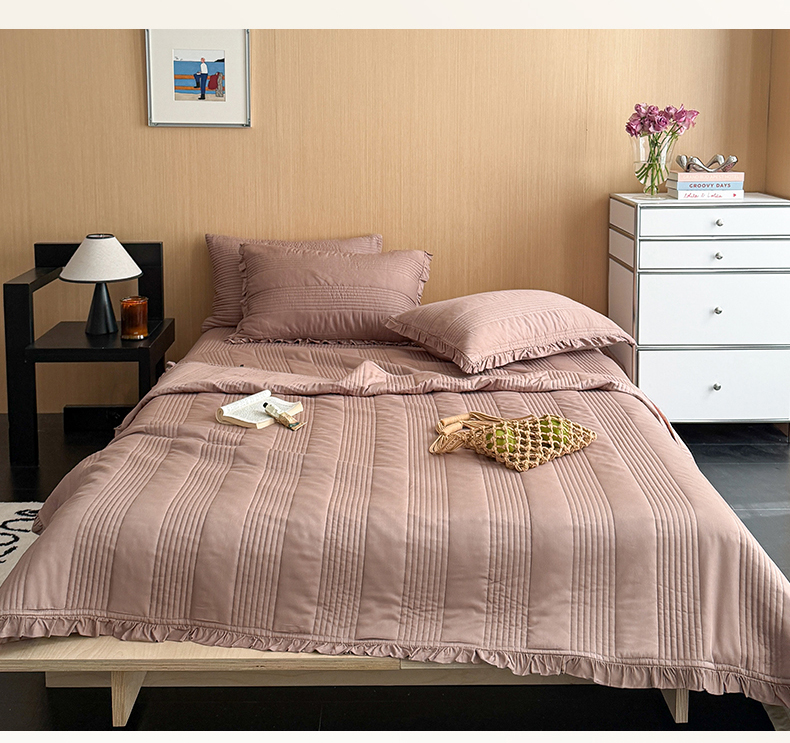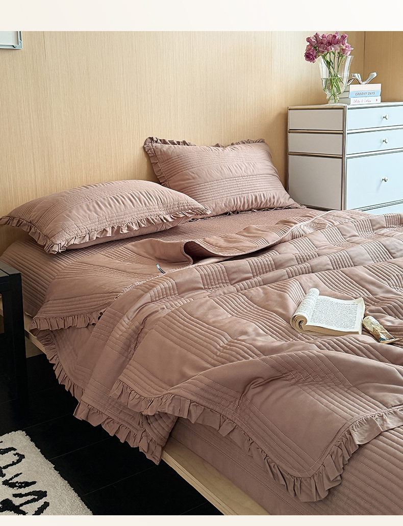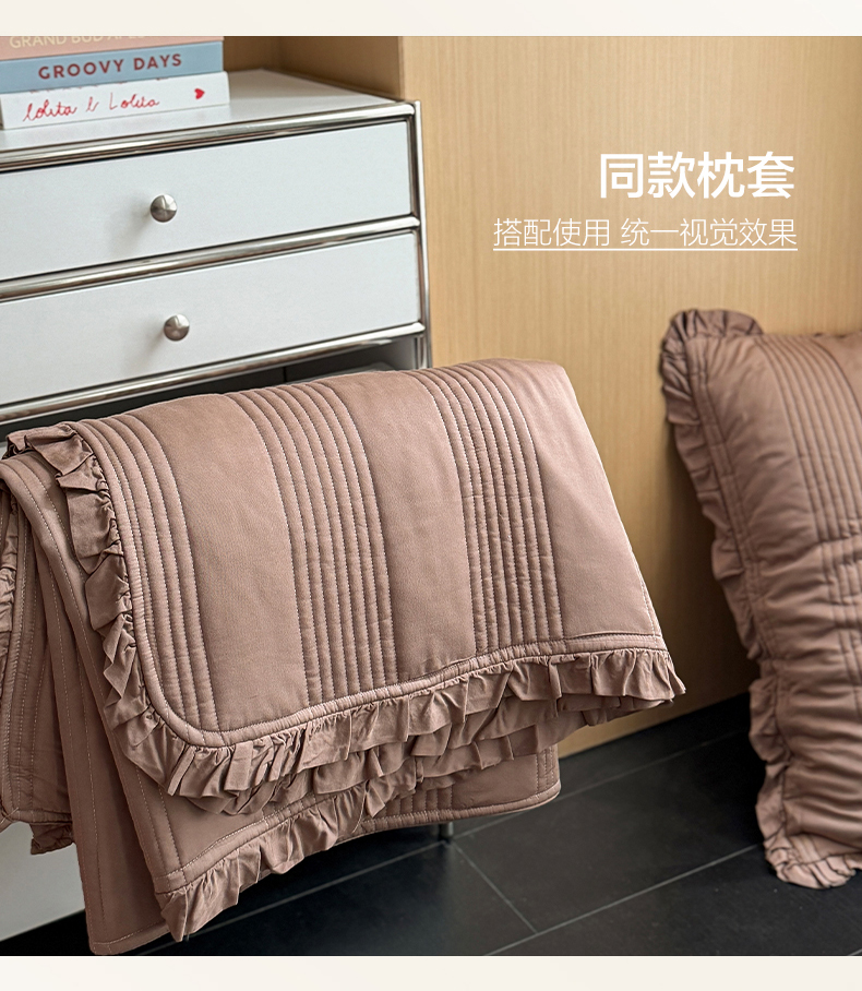 漫调家纺 2026新款韩国莫代尔夏被床盖系列-花边款 可可暖棕