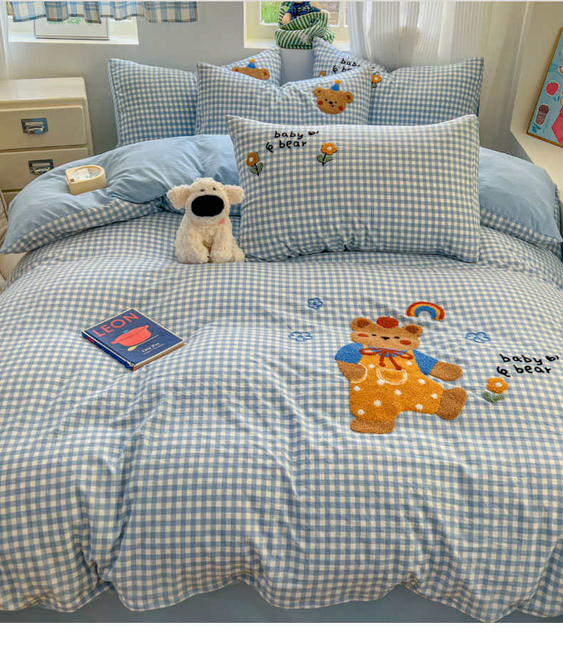 (总)一比一家纺 2026新款古法水洗仿棉云感纱A类四件套,知秋,白兰地,彩波波,草莓点点,格纹狗,嗨皮狗,赫莲娜,花千朵,花絮,酱果,蓝小格,莉莉安,梦幻灰,南瓜果果,葡萄,浅梦,森屿,疏影,甜心草莓,甜心喵,条纹狗,童趣,小黄花,小木马,小时光,小幸运,修修狗,薰衣草,灰樱桃,樱桃熊,鱼多多,组合图仅做展示不可下单,快乐时光