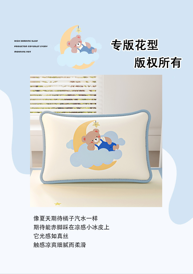 商品名称:家品罗兰 2026新款小冰皮卡通冰丝枕套 月亮熊