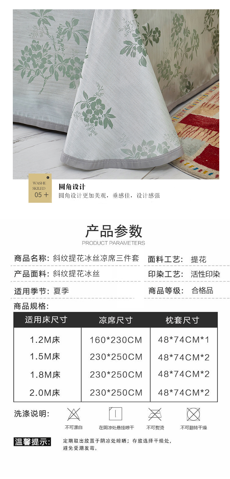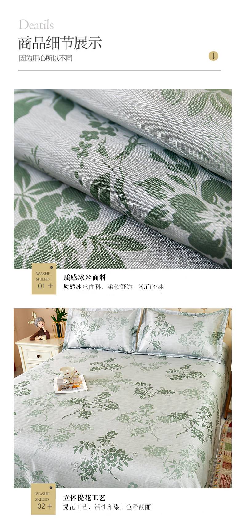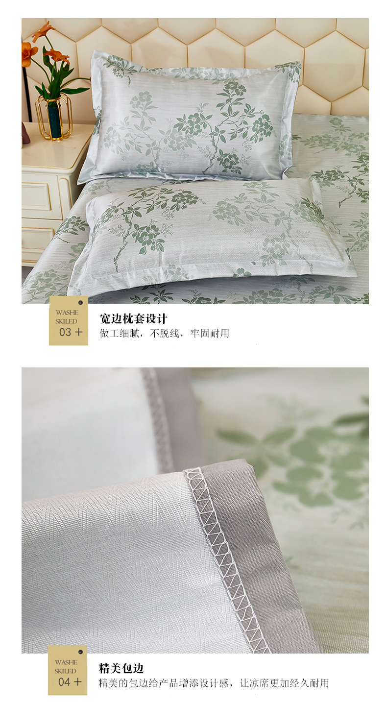 商品名称:星窝家纺 2026新款直播电商优选可机洗斜纹提花冰丝凉席三件套 清雅