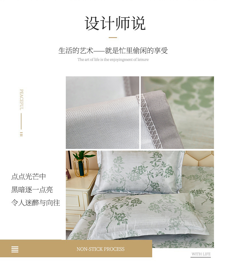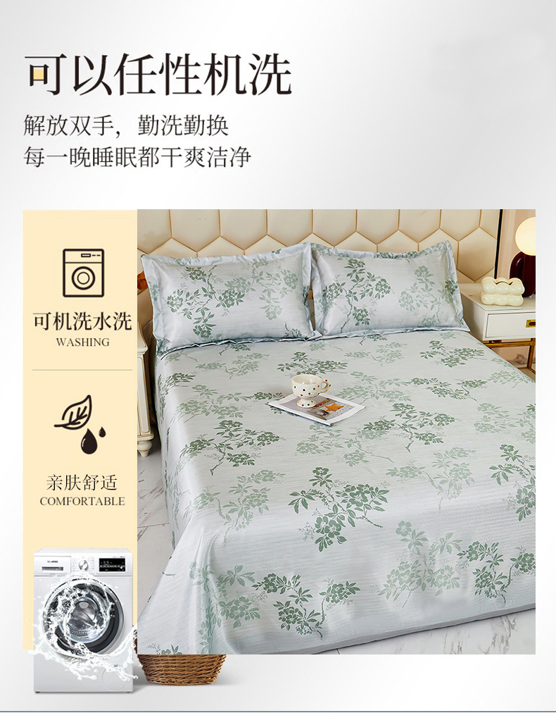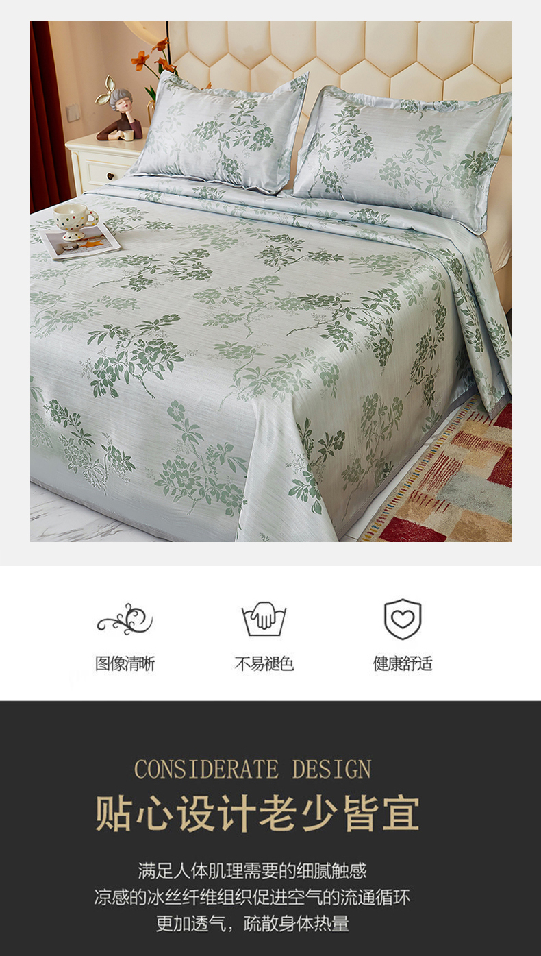 商品名称:星窝家纺 2026新款直播电商优选可机洗斜纹提花冰丝凉席三件套 清雅