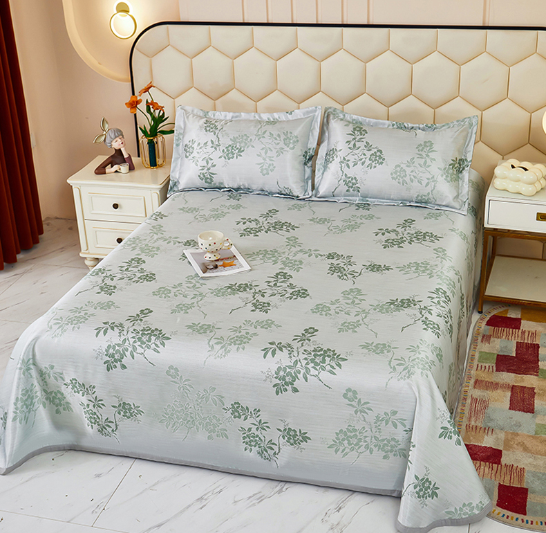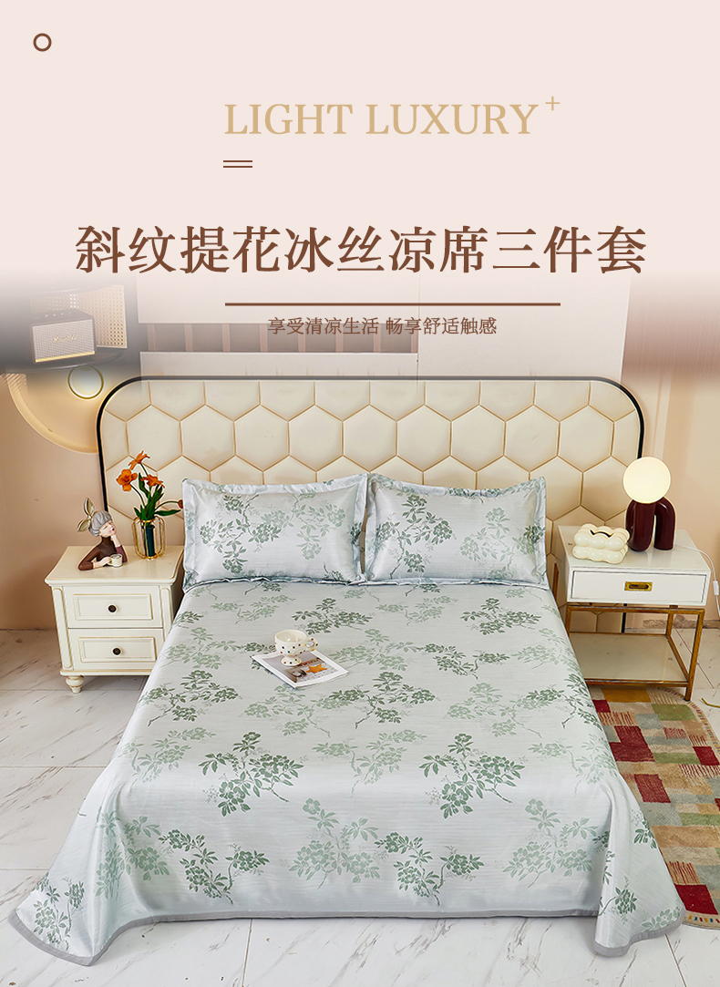星窝家纺 2026新款直播电商优选可机洗斜纹提花冰丝凉席三件套 清雅