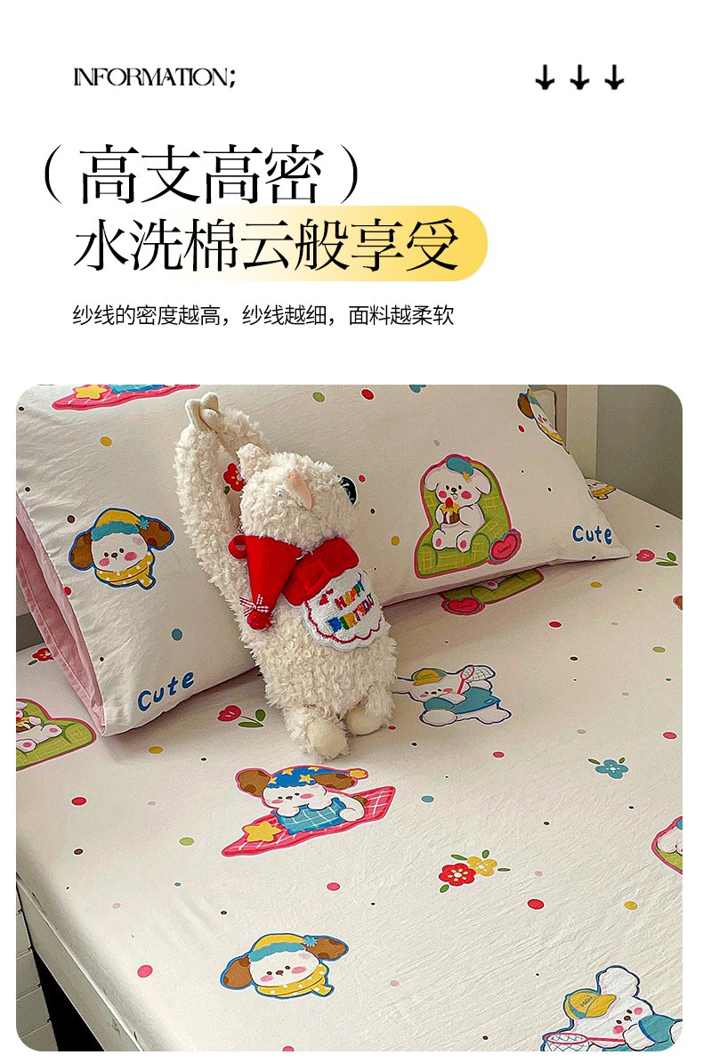 纽缦家纺 2026新款A类105g仿棉四件套古法水洗棉学生单床笠 幸运狗