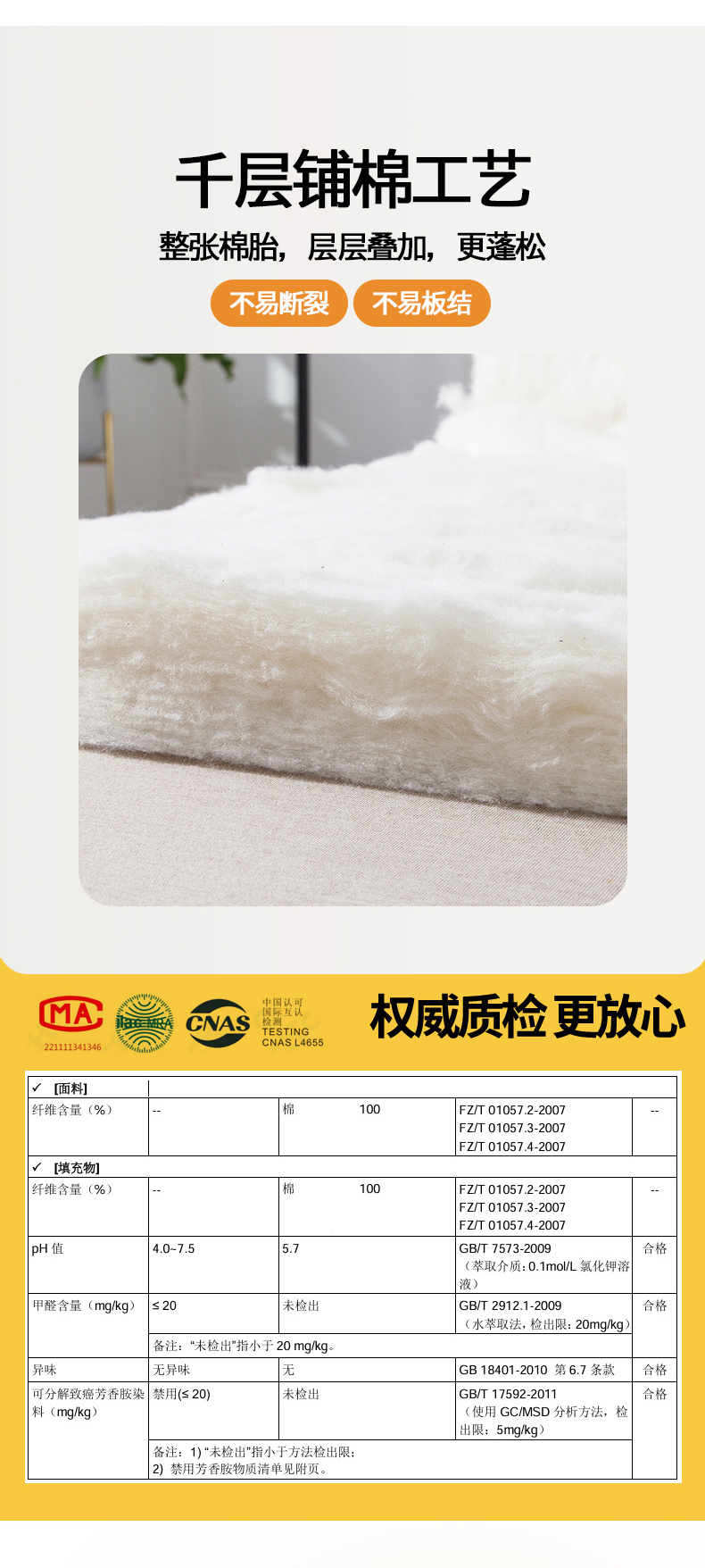 1、通州区市场监督局川姜分局提醒各电商,在纯棉产品中不要宣传100%纯棉,因绣花线花边等材料不一定纯棉。乳胶枕不要宣传纯天然,因其加工过程含化工物质。