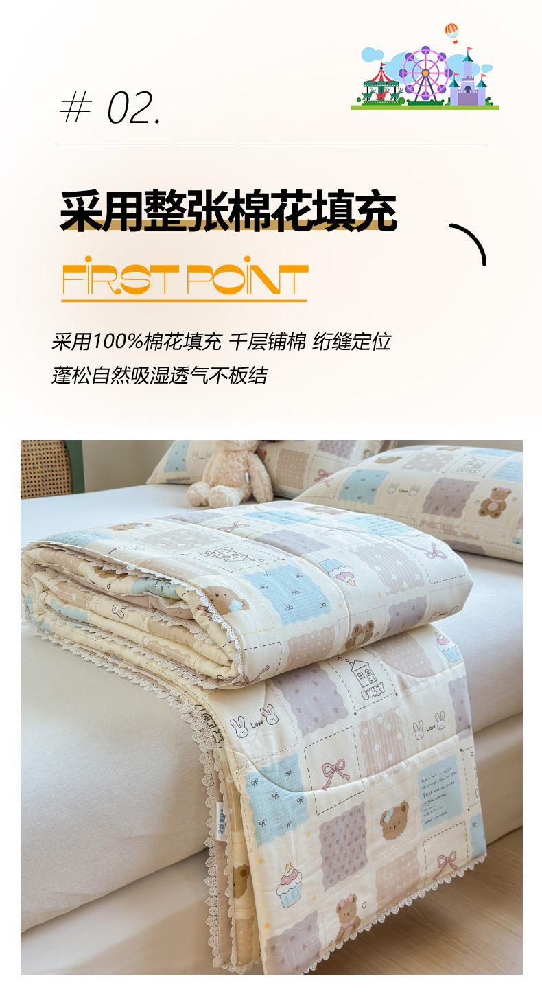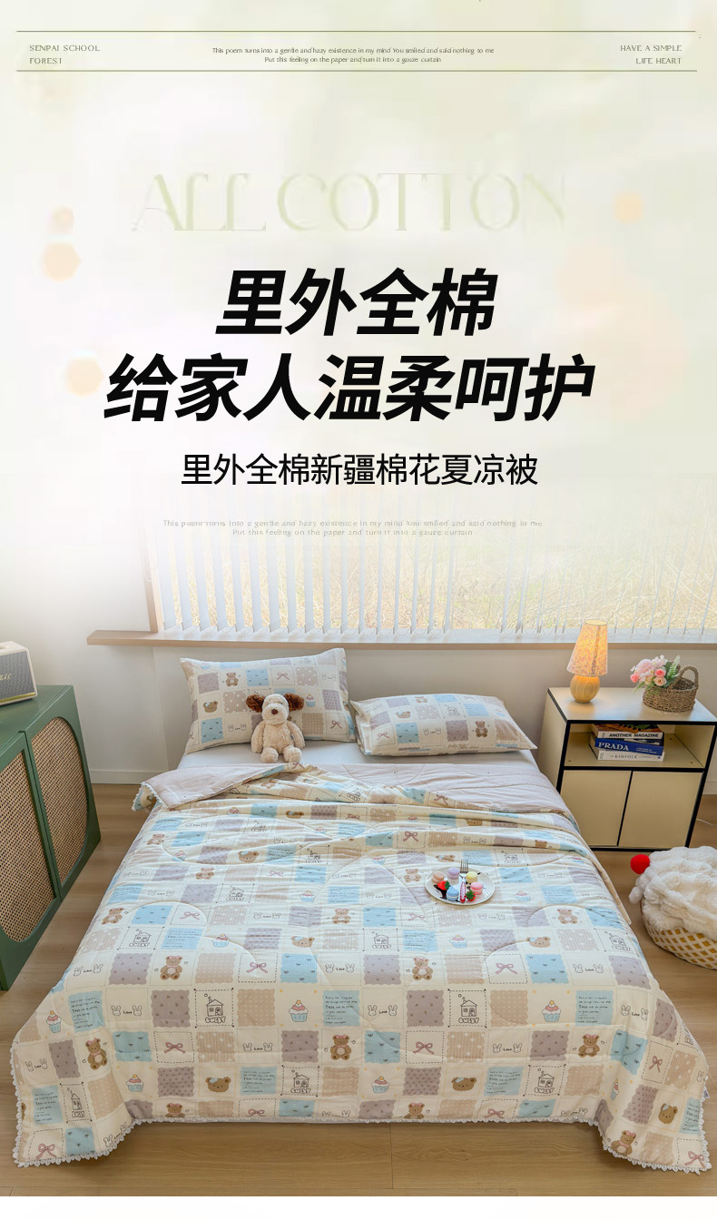(总)晨晨家纺 2026新款双面全棉花边款新疆棉花夏被