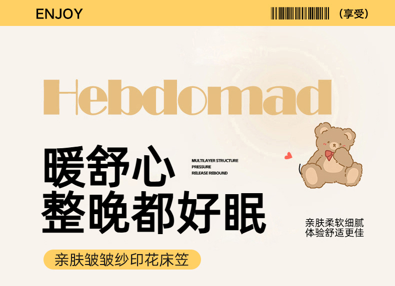 • 91家纺网 家纺一手货源 找家纺 蓝极人 2026新款泡泡纱印花床笠 CL草莓