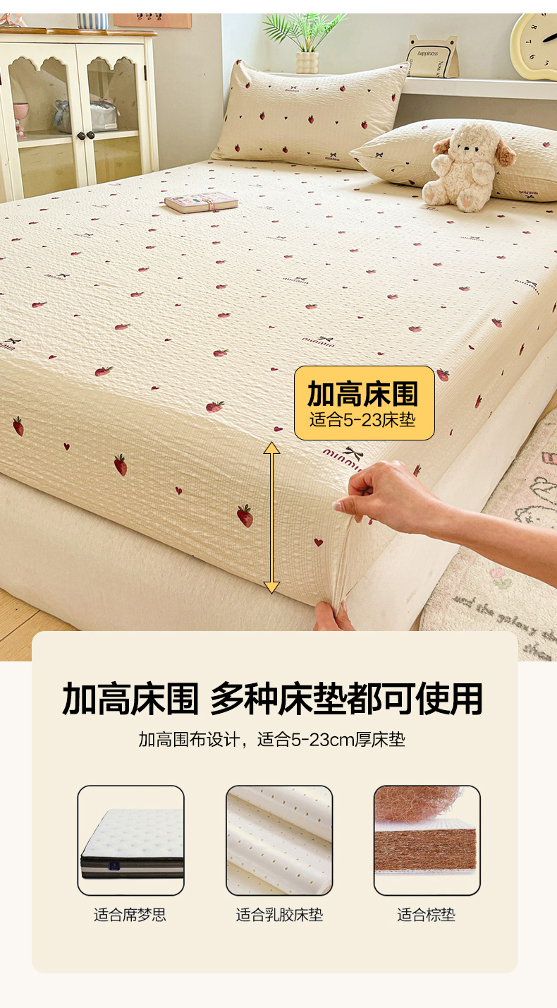 蓝极人 2026新款泡泡纱印花床笠 CL草莓
